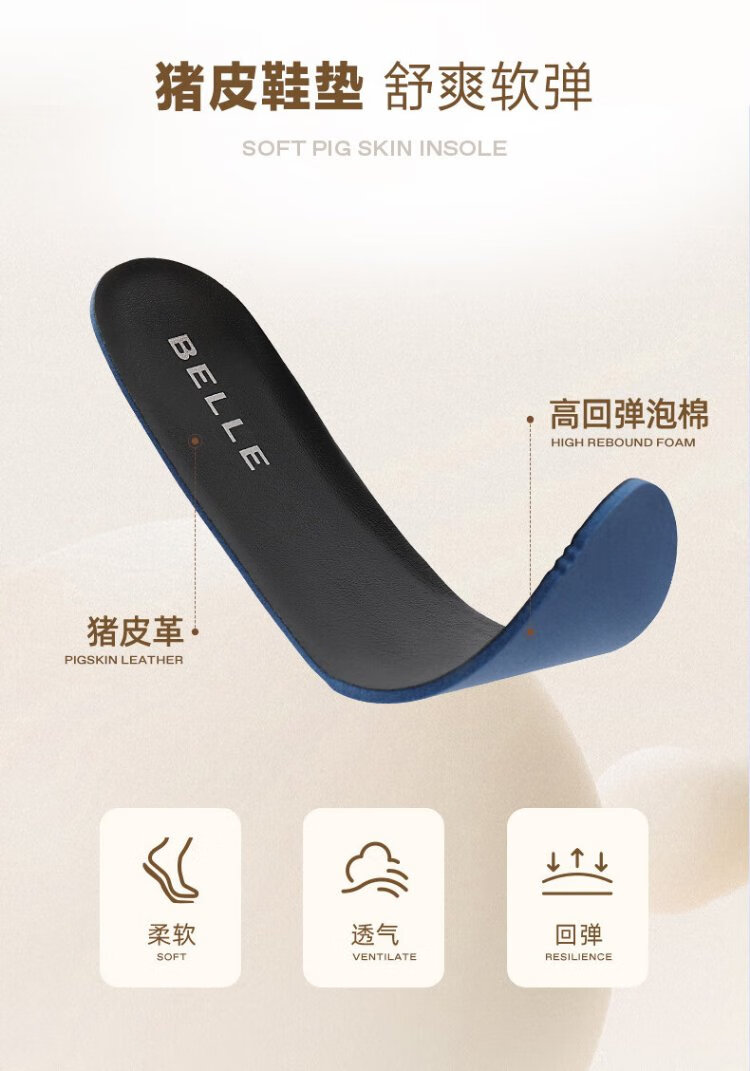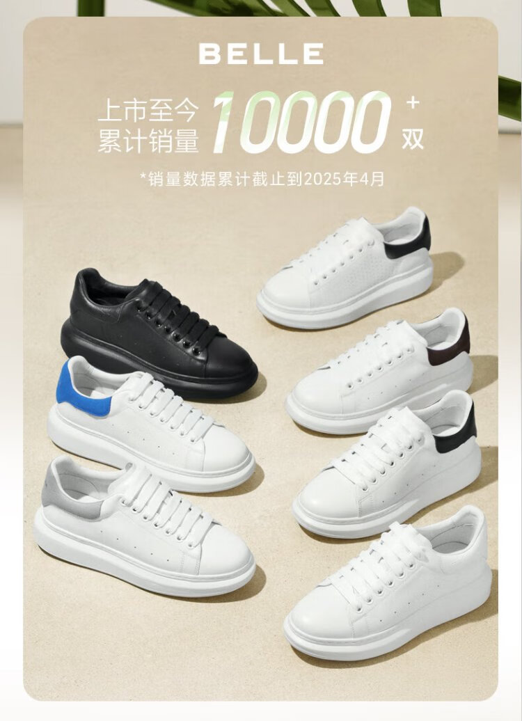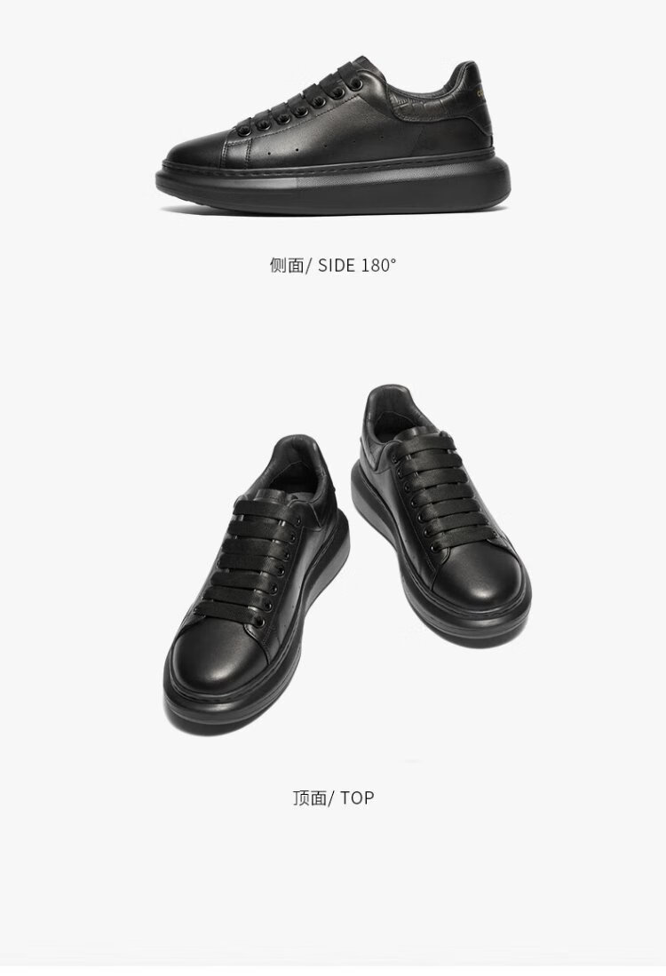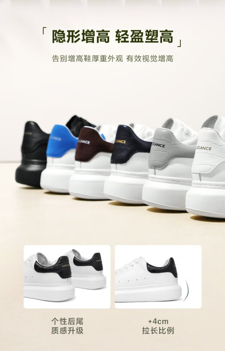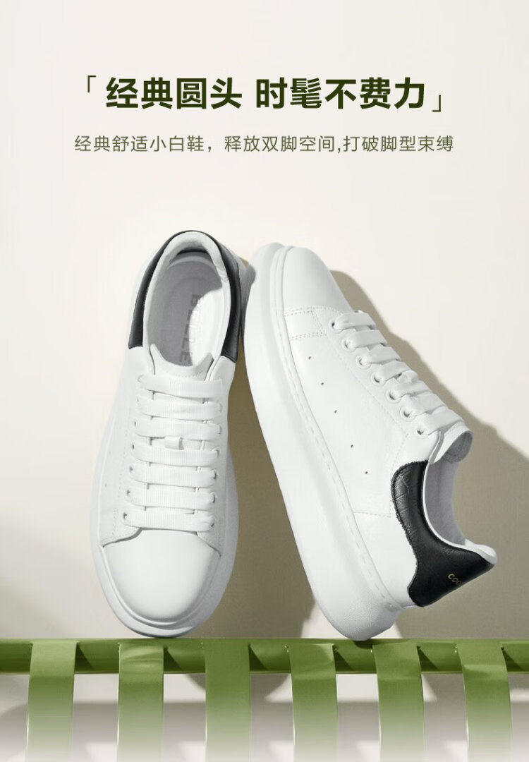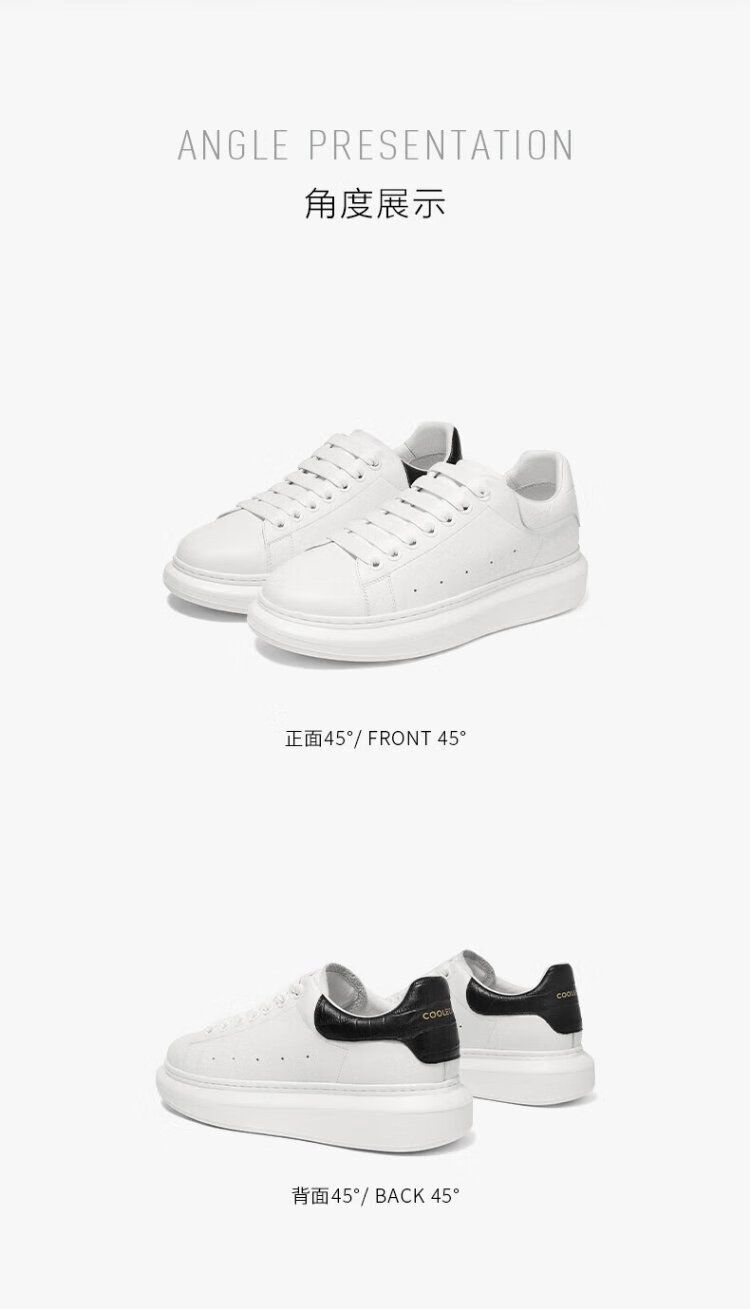 Belle Contrast Color White Shoes Men's Autumn Cowhide Comfortable Thick-soled Casual Sneakers A1160CM3 Black Tail 42