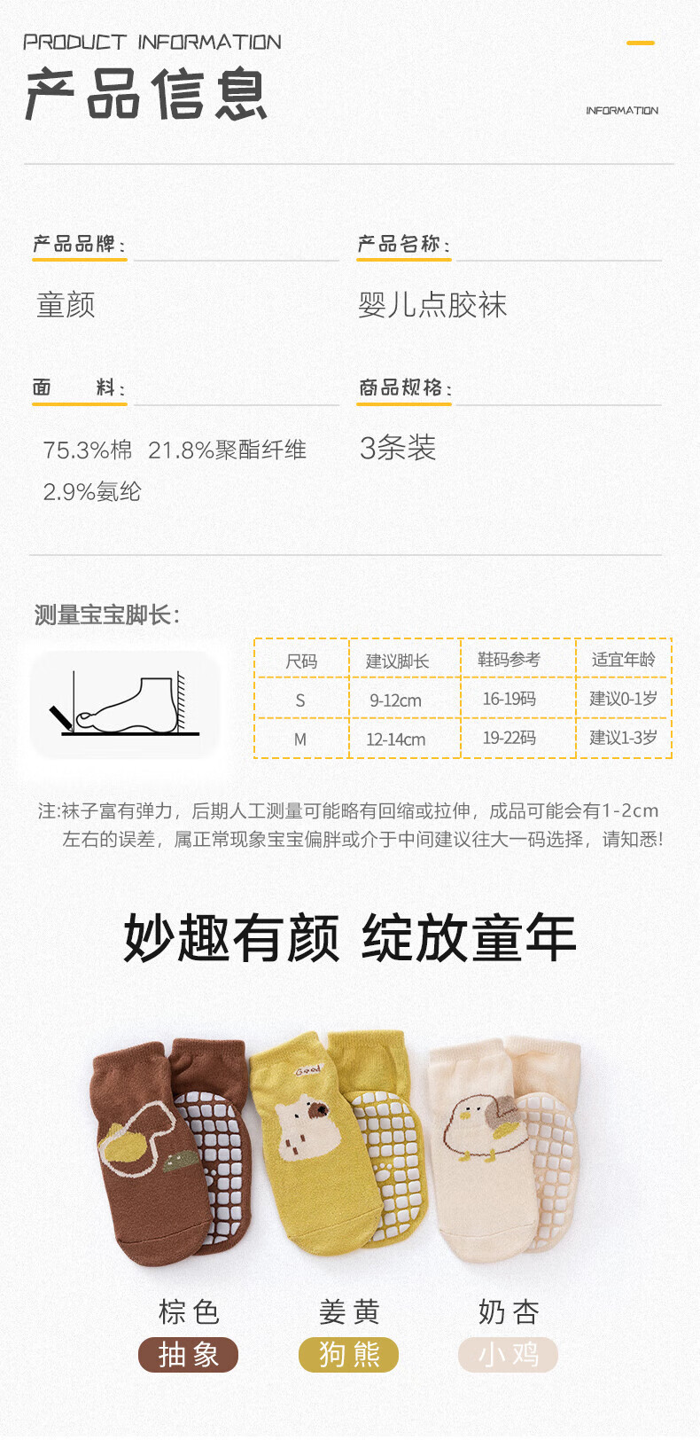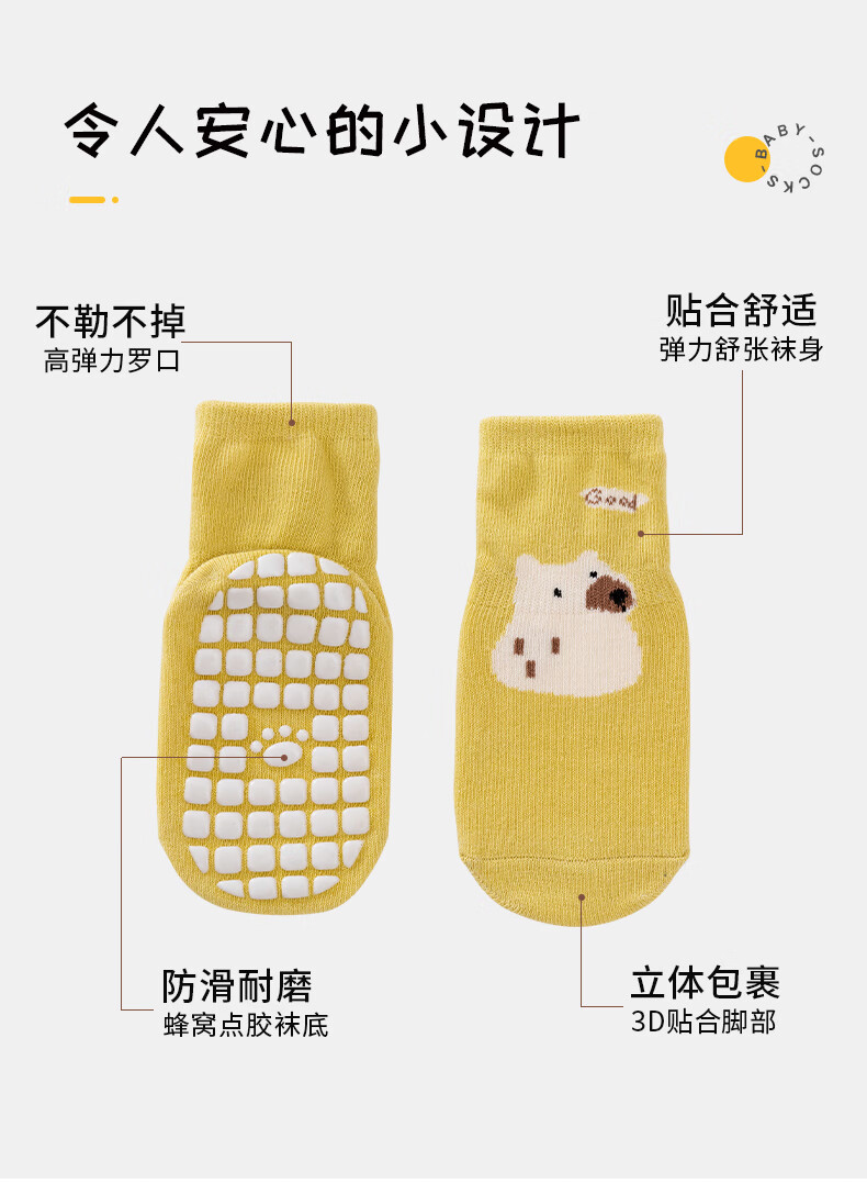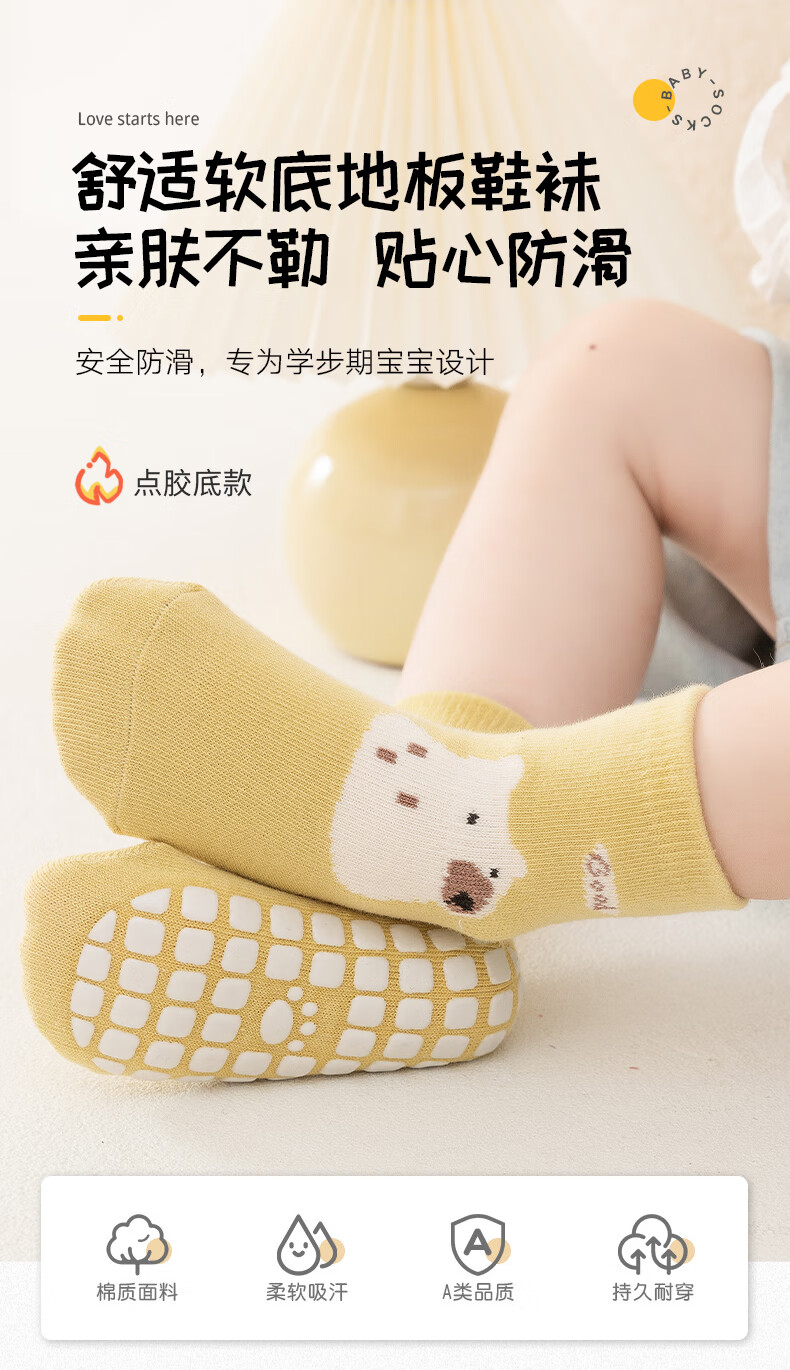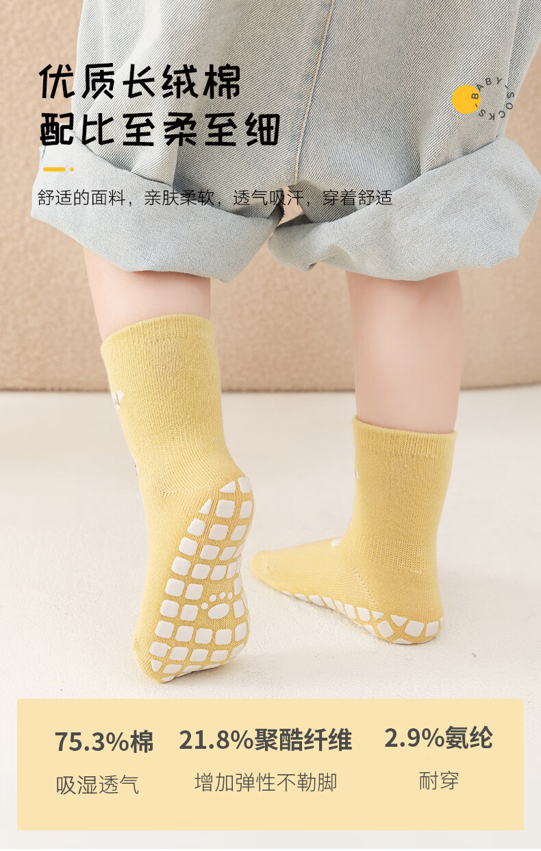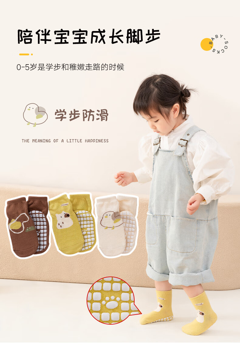 Childlike baby socks, baby floor socks, autumn and winter indoor non-slip and anti-cooling toddler socks for boys and girls, 3 pairs, 1-3 years old