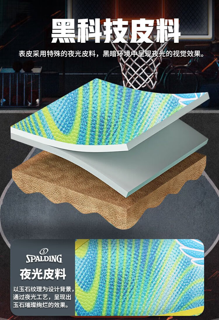 SPALDING cool street luminous No. 7 PU basketball 77-766Y
