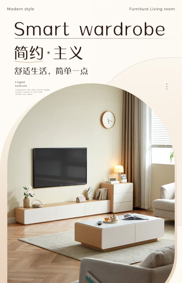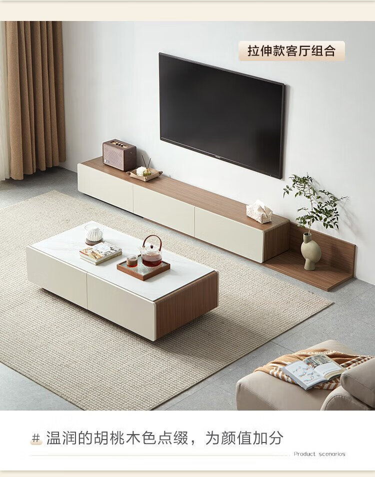 Lin's Home Modern Simple Retractable TV Cabinet Coffee Table Floor Living Room Lin's Wood Industry UV1M Walnut Color Coffee Table