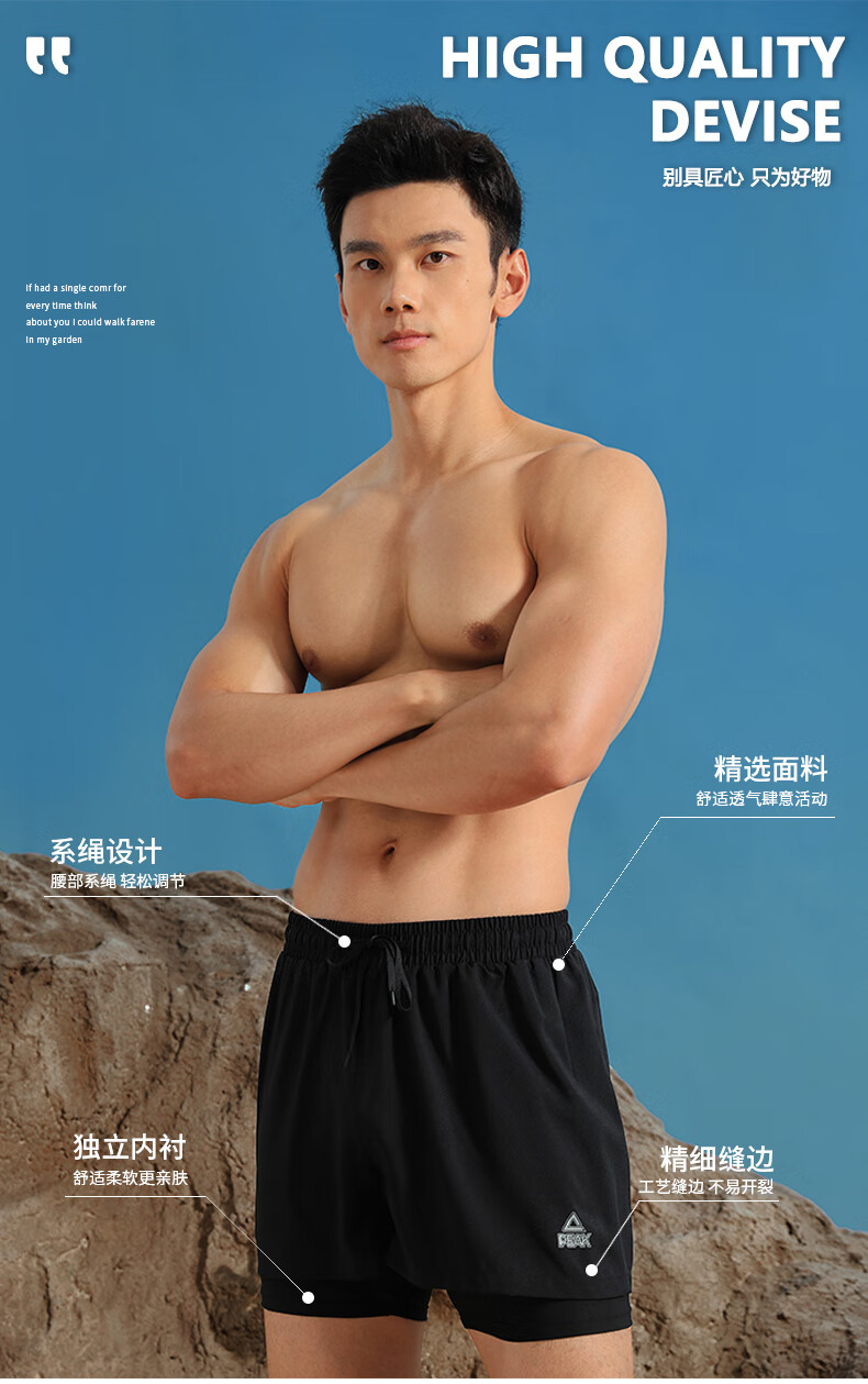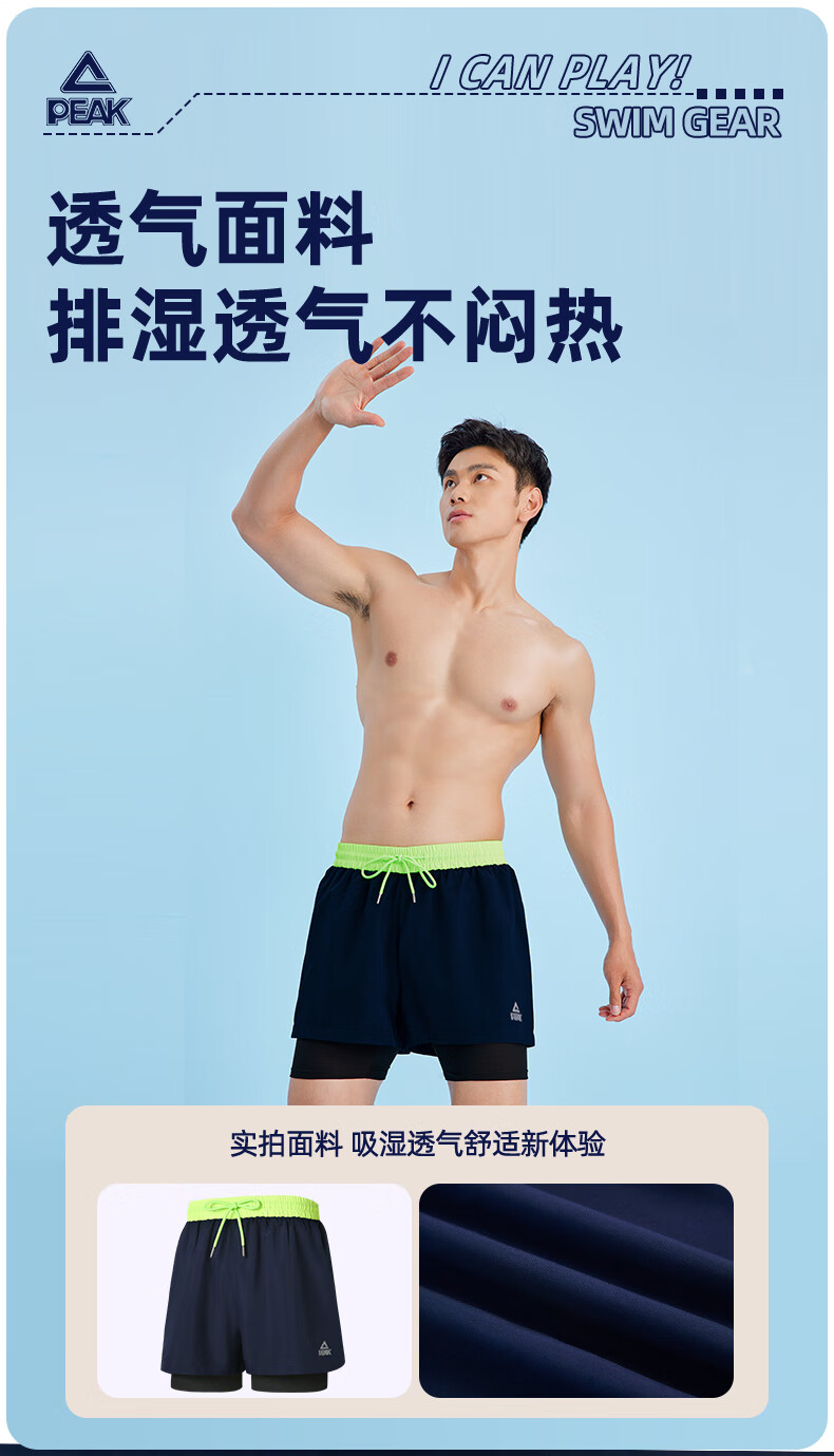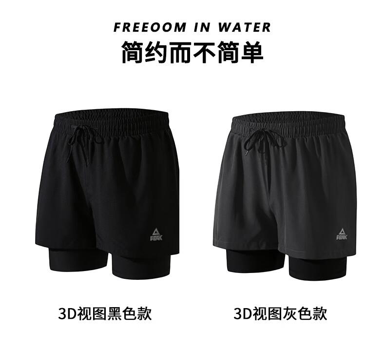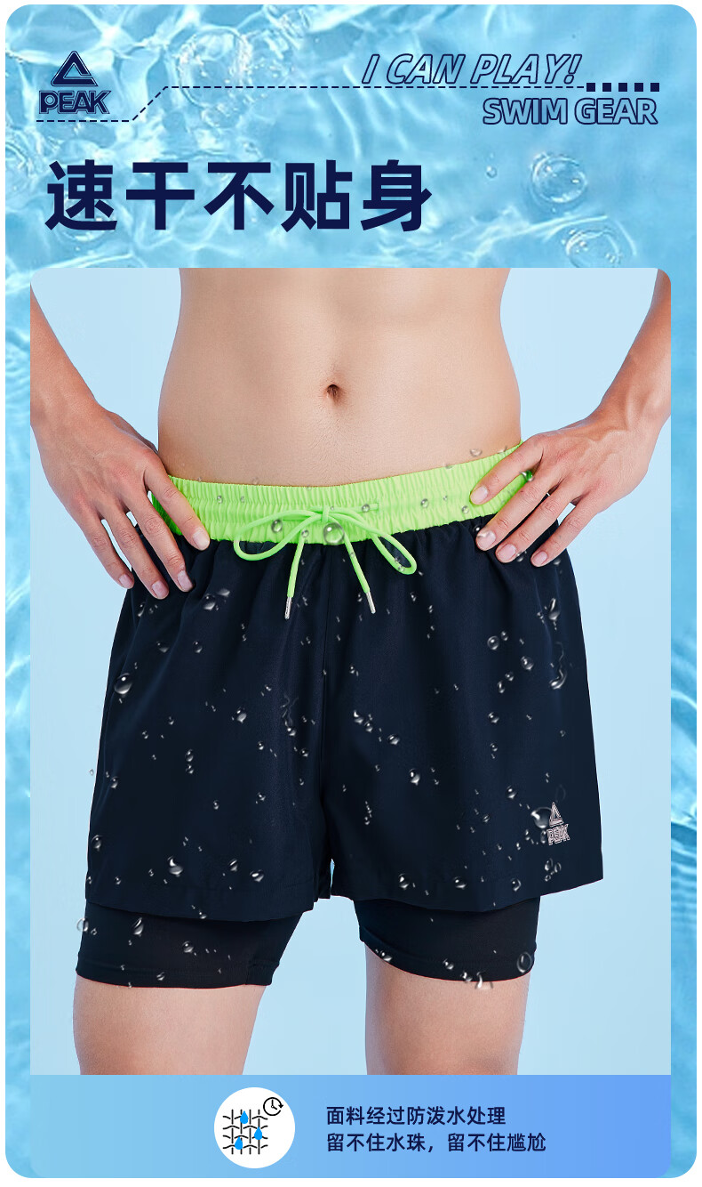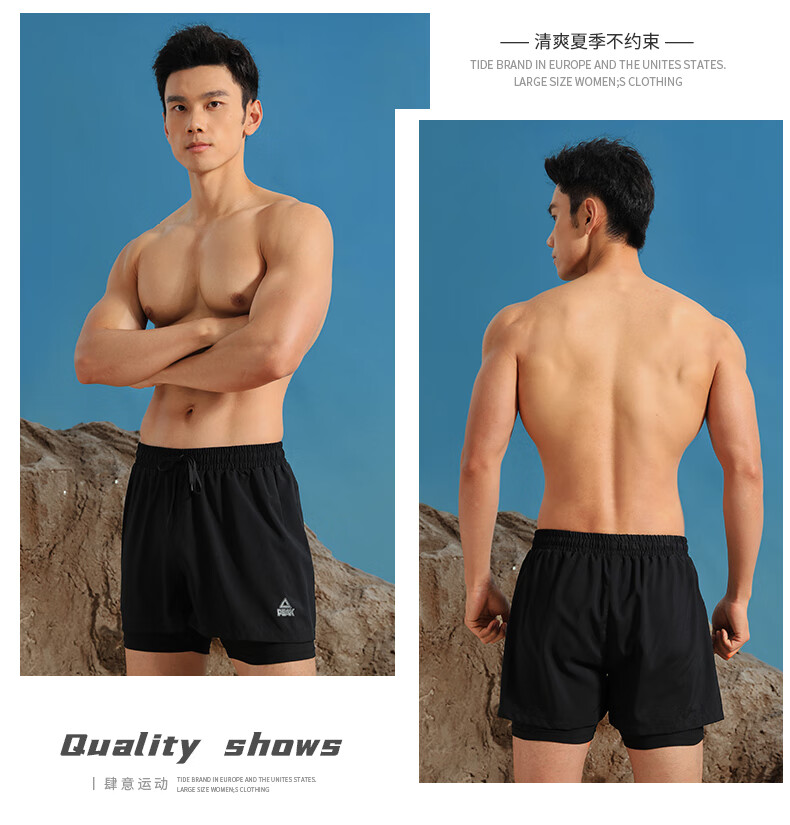 Peak swimming trunks men's swimsuit men's anti-embarrassment quick-drying boxer beach trunks double-layer hot spring seaside resort swimming trunks black L