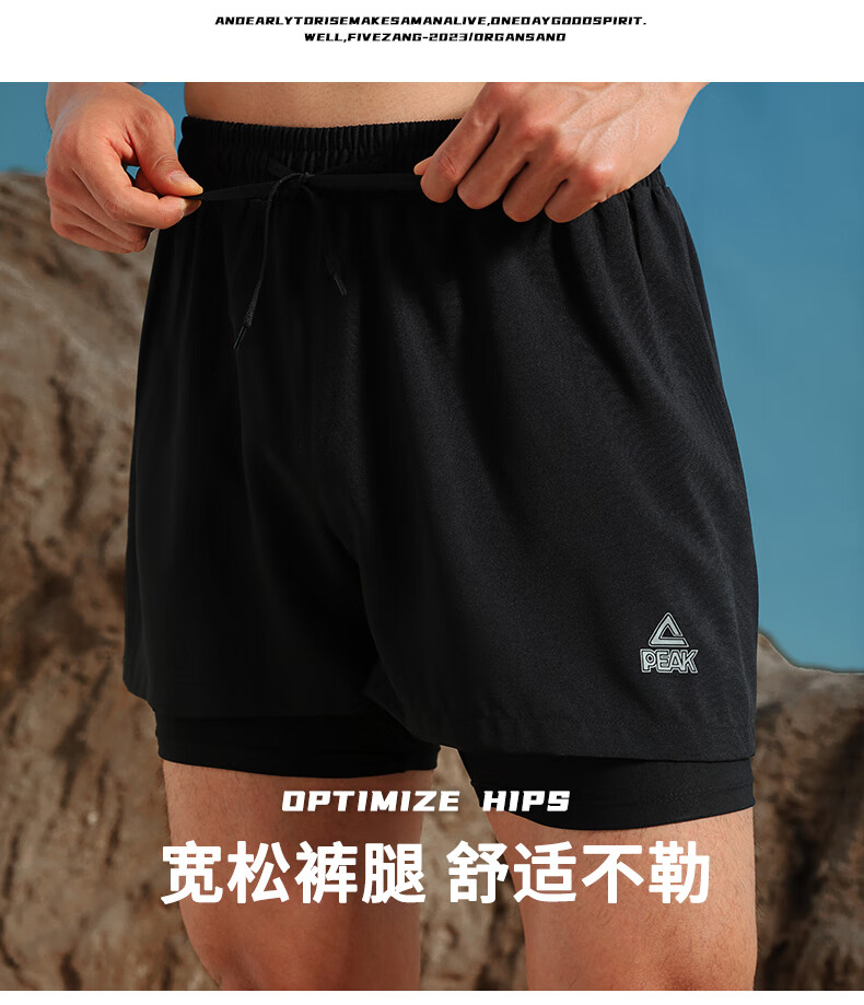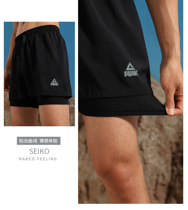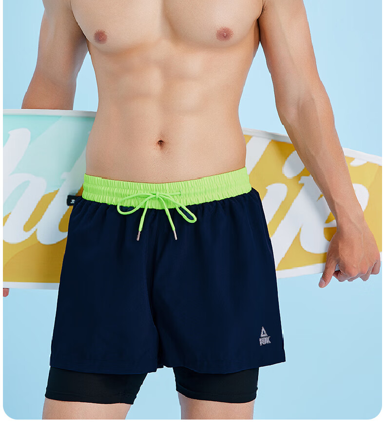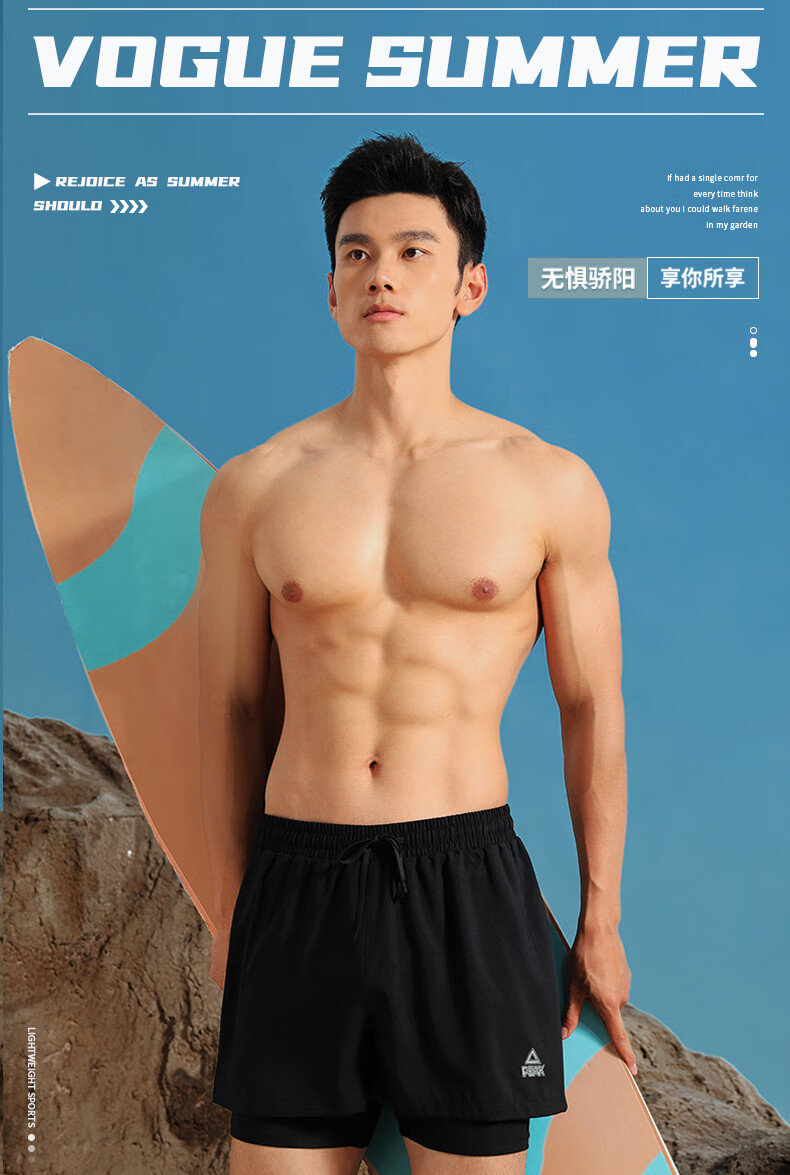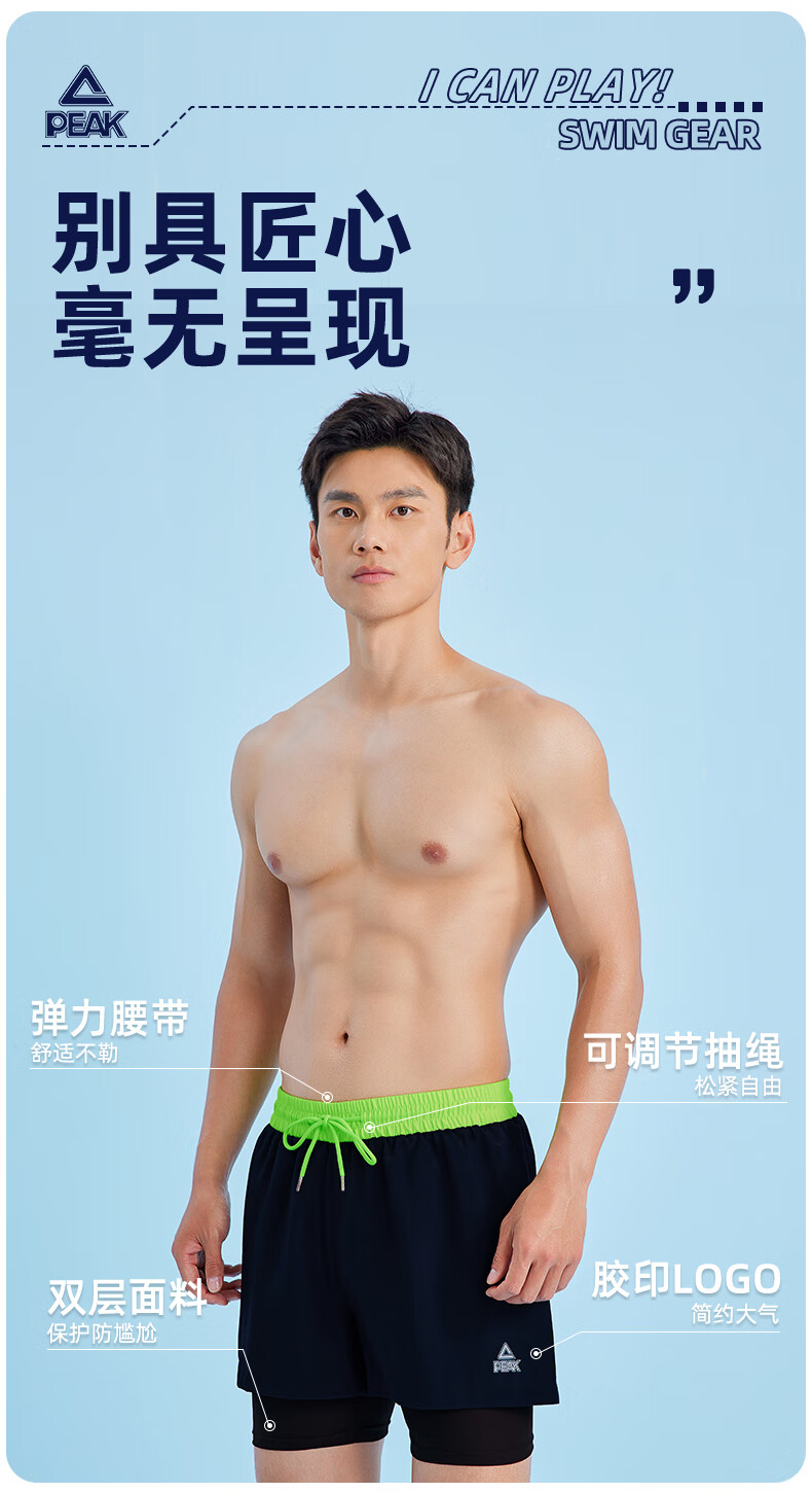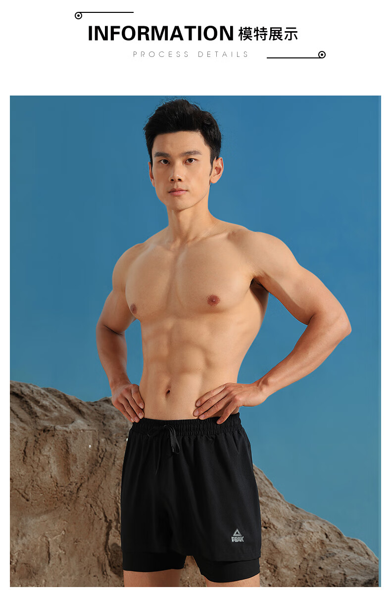 Peak swimming trunks men's swimsuit men's anti-embarrassment quick-drying boxer beach trunks double-layer hot spring seaside resort swimming trunks black L