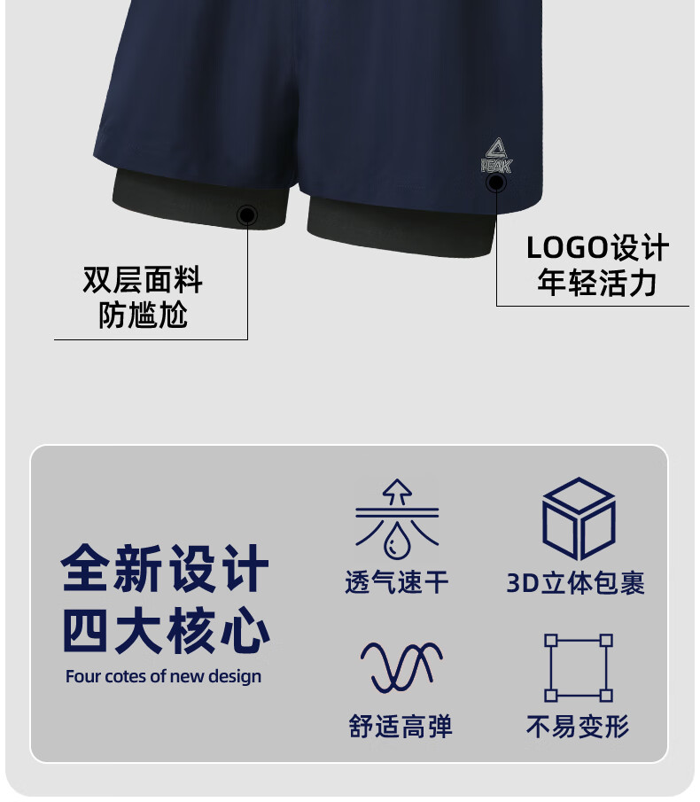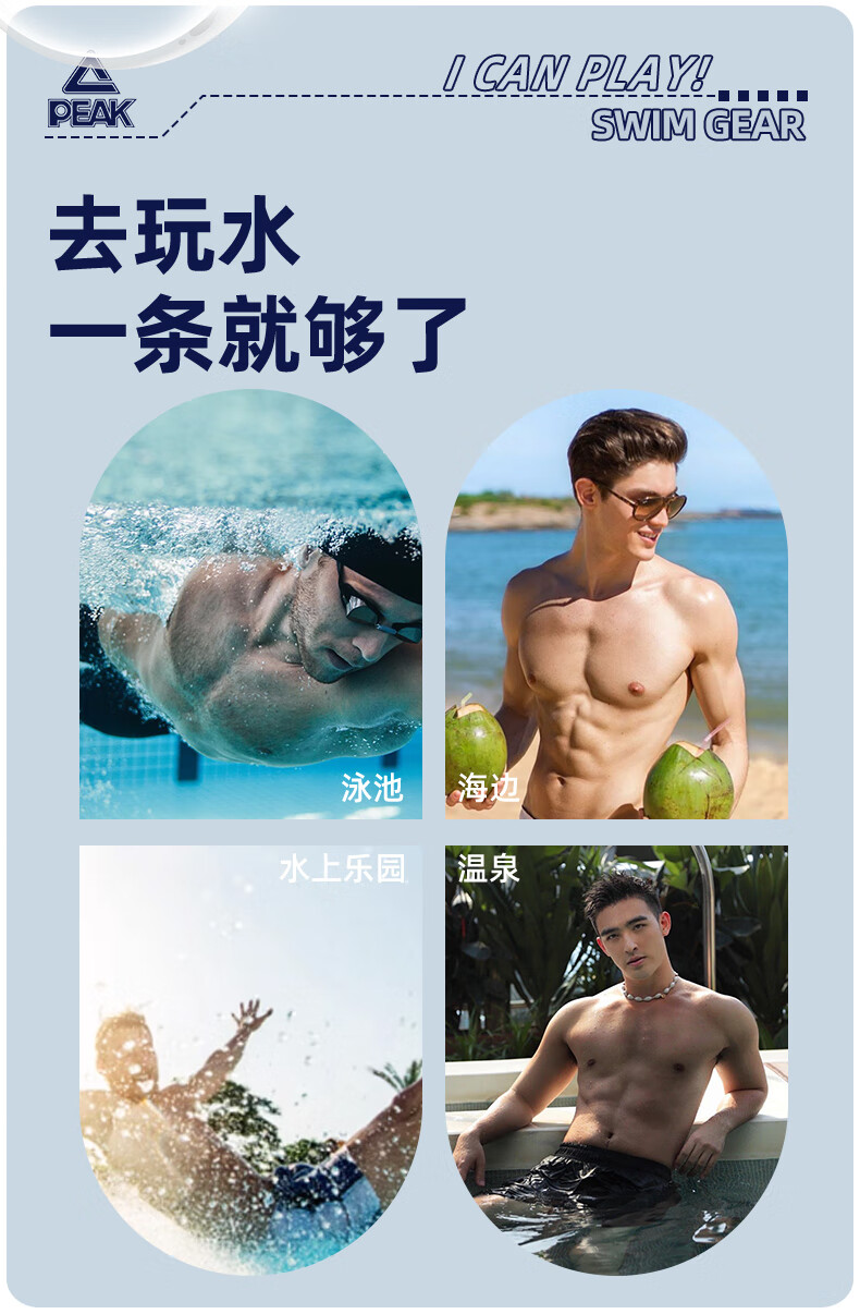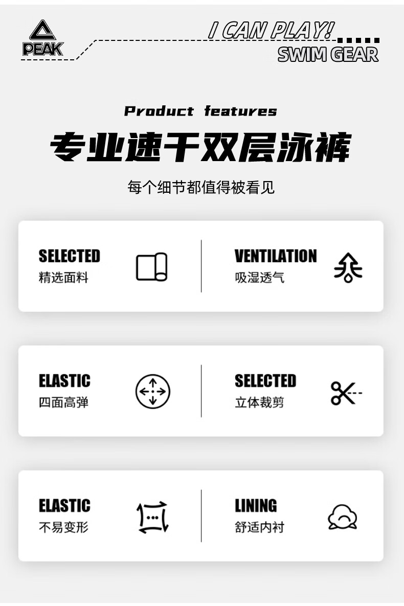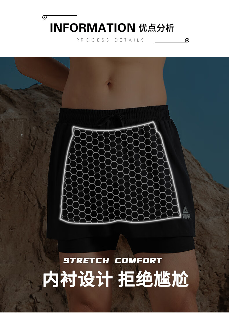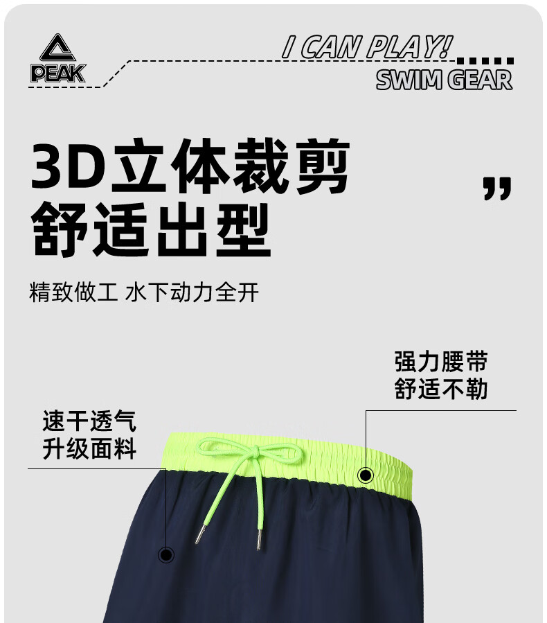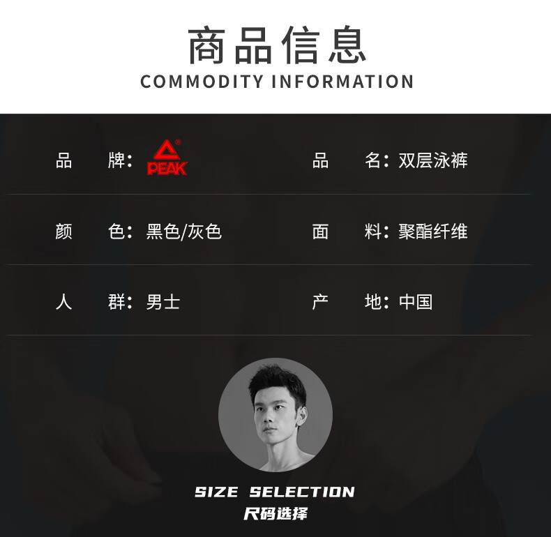 Peak swimming trunks men's swimsuit men's anti-embarrassment quick-drying boxer beach trunks double-layer hot spring seaside resort swimming trunks black L