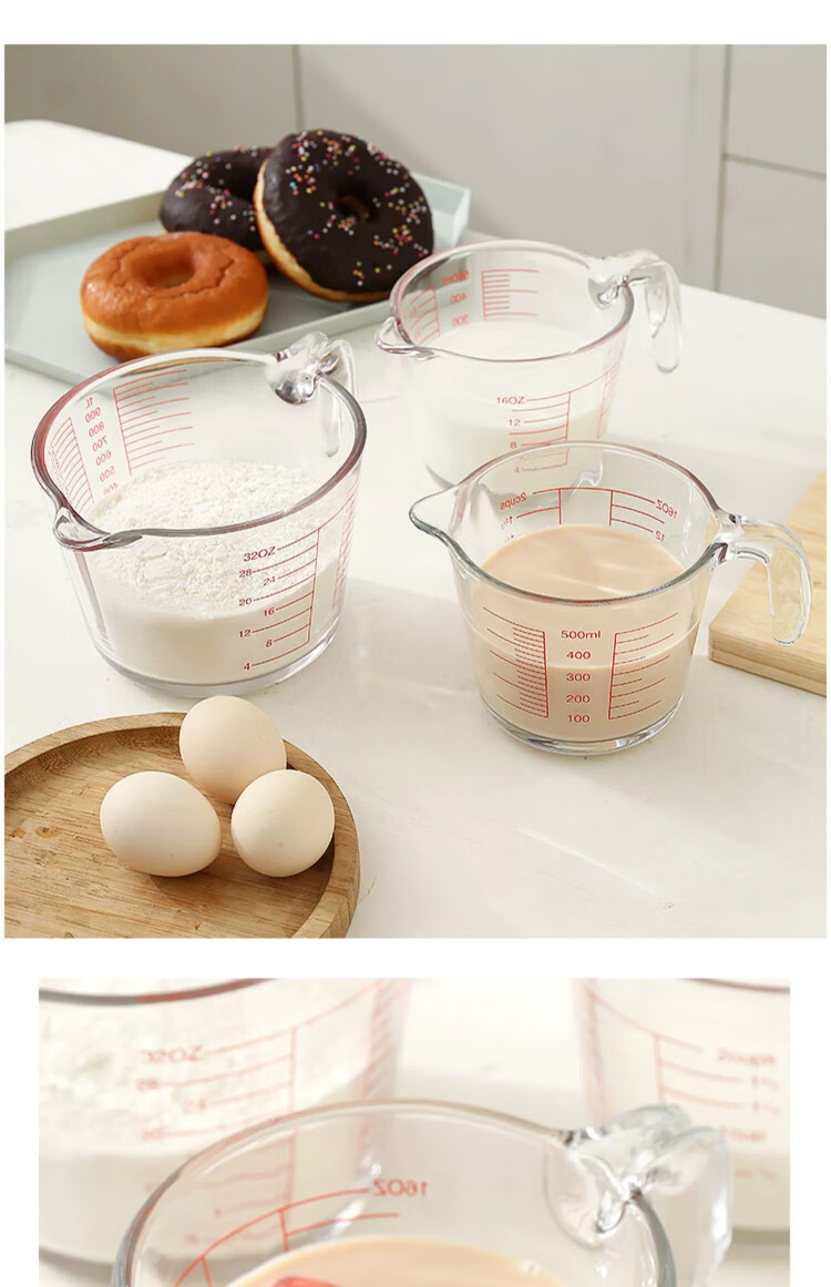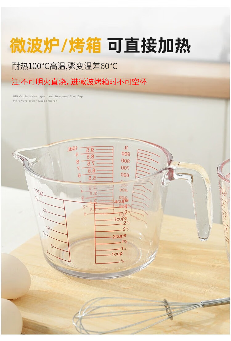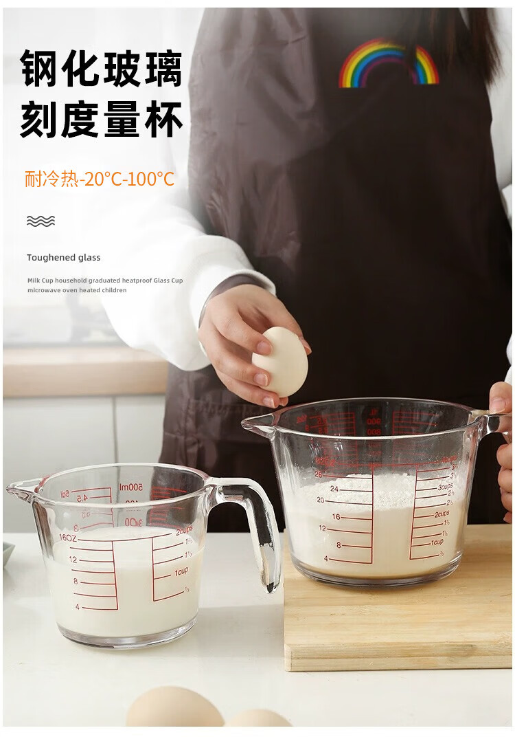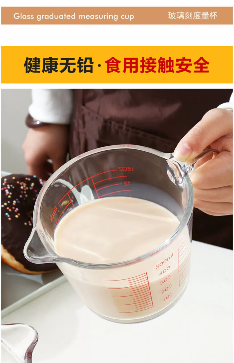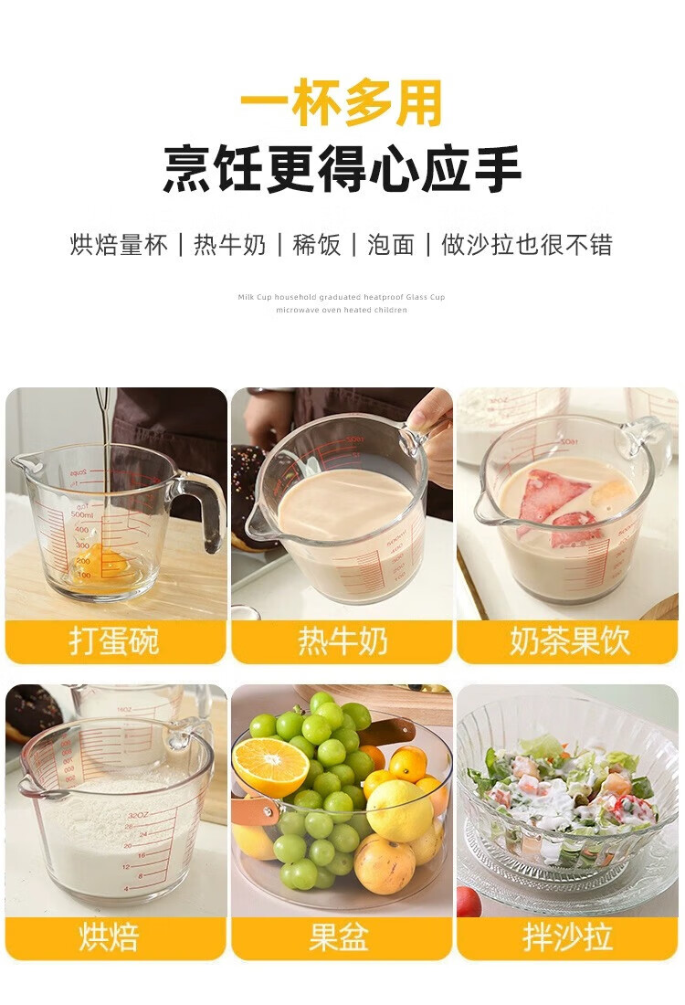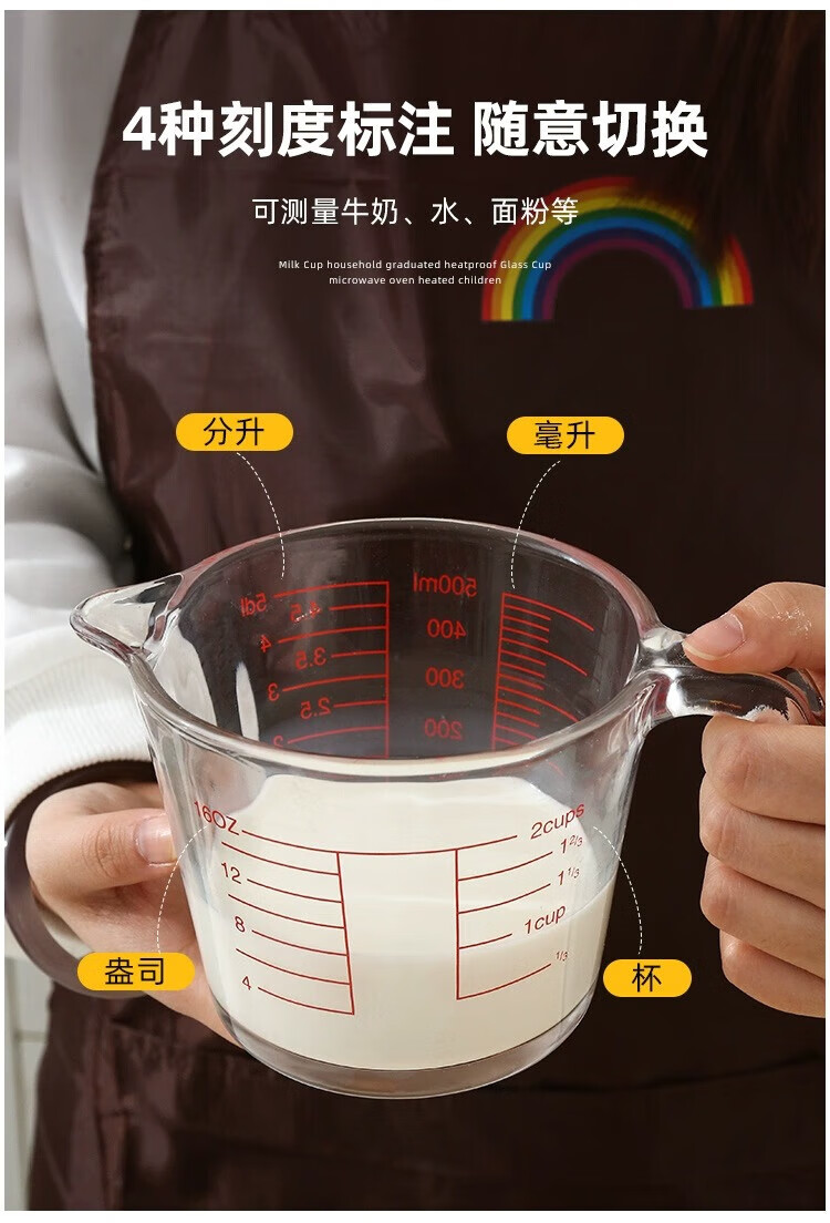 YOUAO glass measuring cup, graduated milk cup, household high temperature resistant ml large capacity cup 500ml