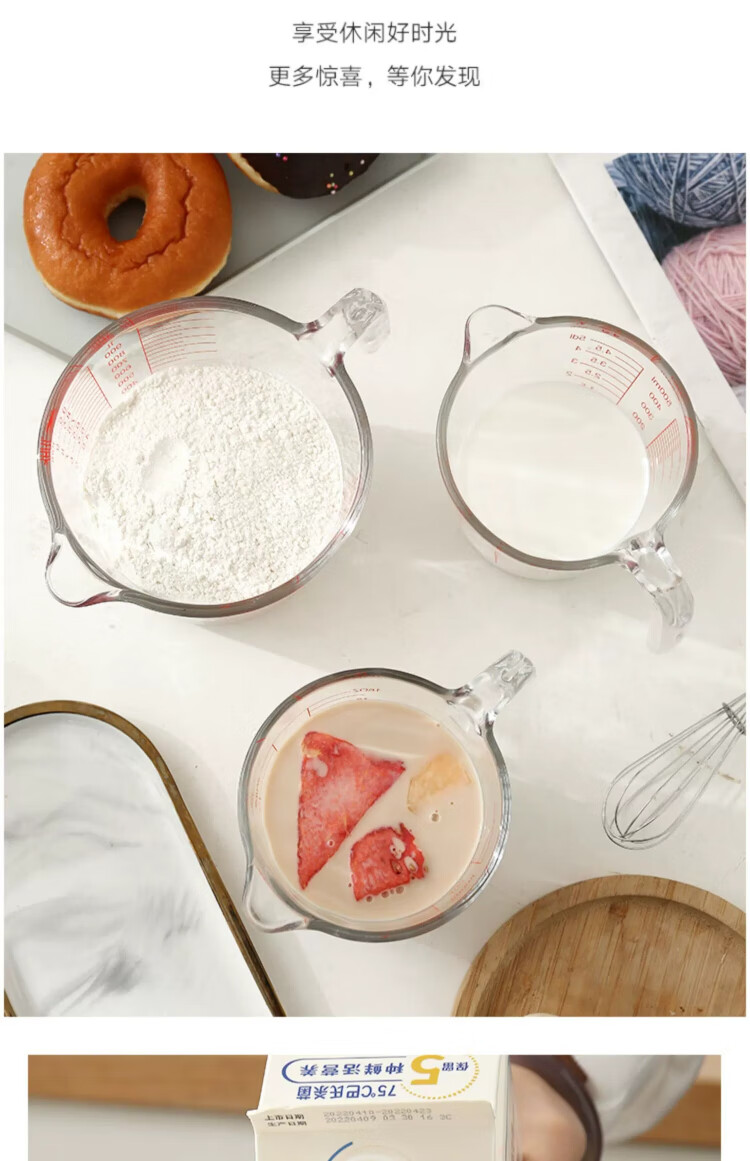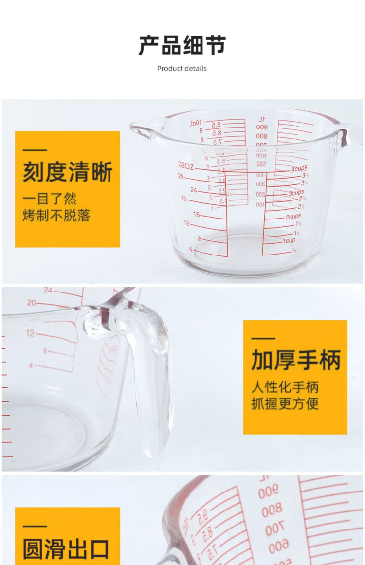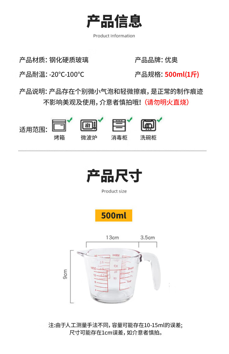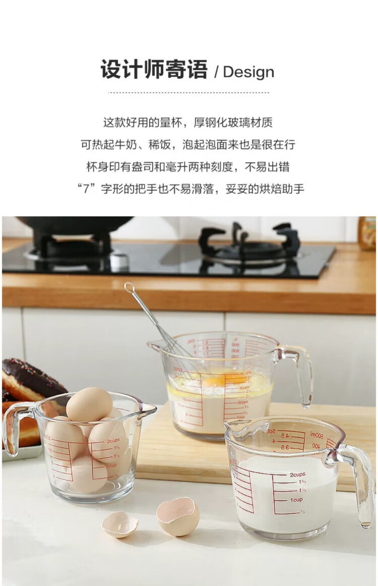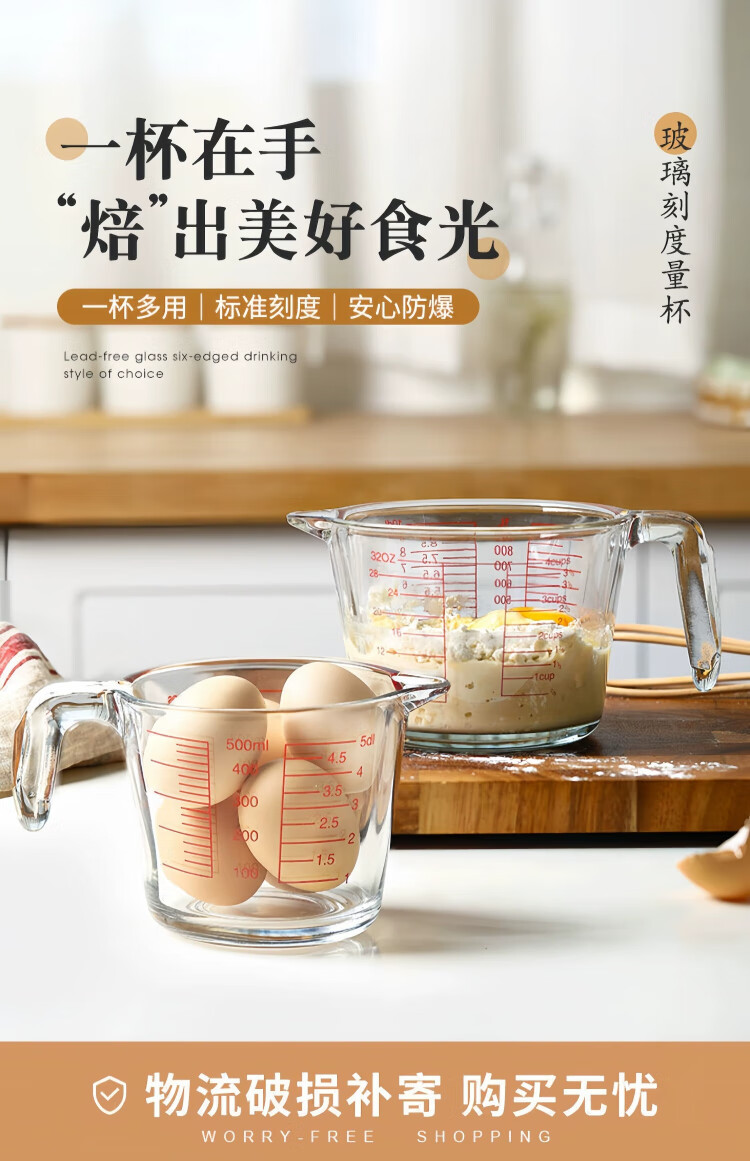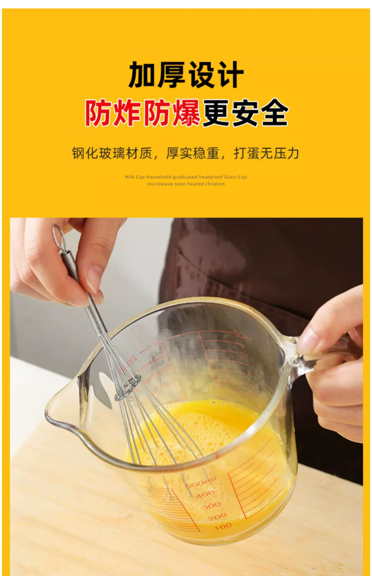 YOUAO glass measuring cup, graduated milk cup, household high temperature resistant ml large capacity cup 500ml