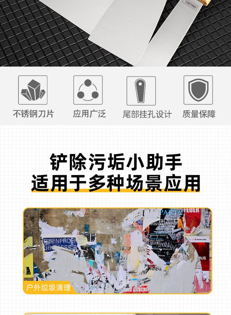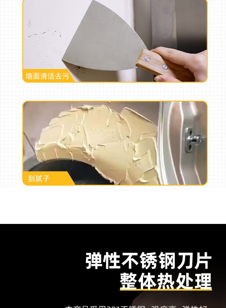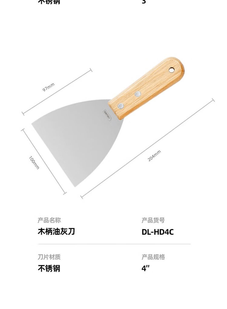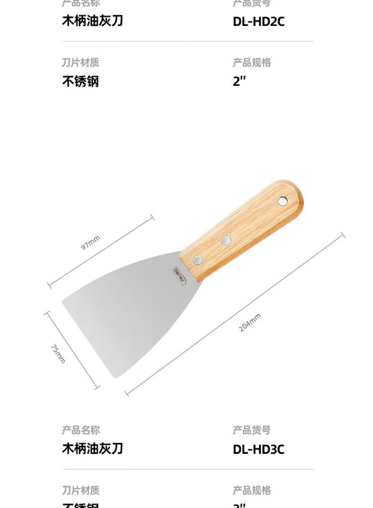 Deli wooden handle stainless steel putty knife putty knife putty knife dust shovel cleaning scraper wall scraper scraper knife