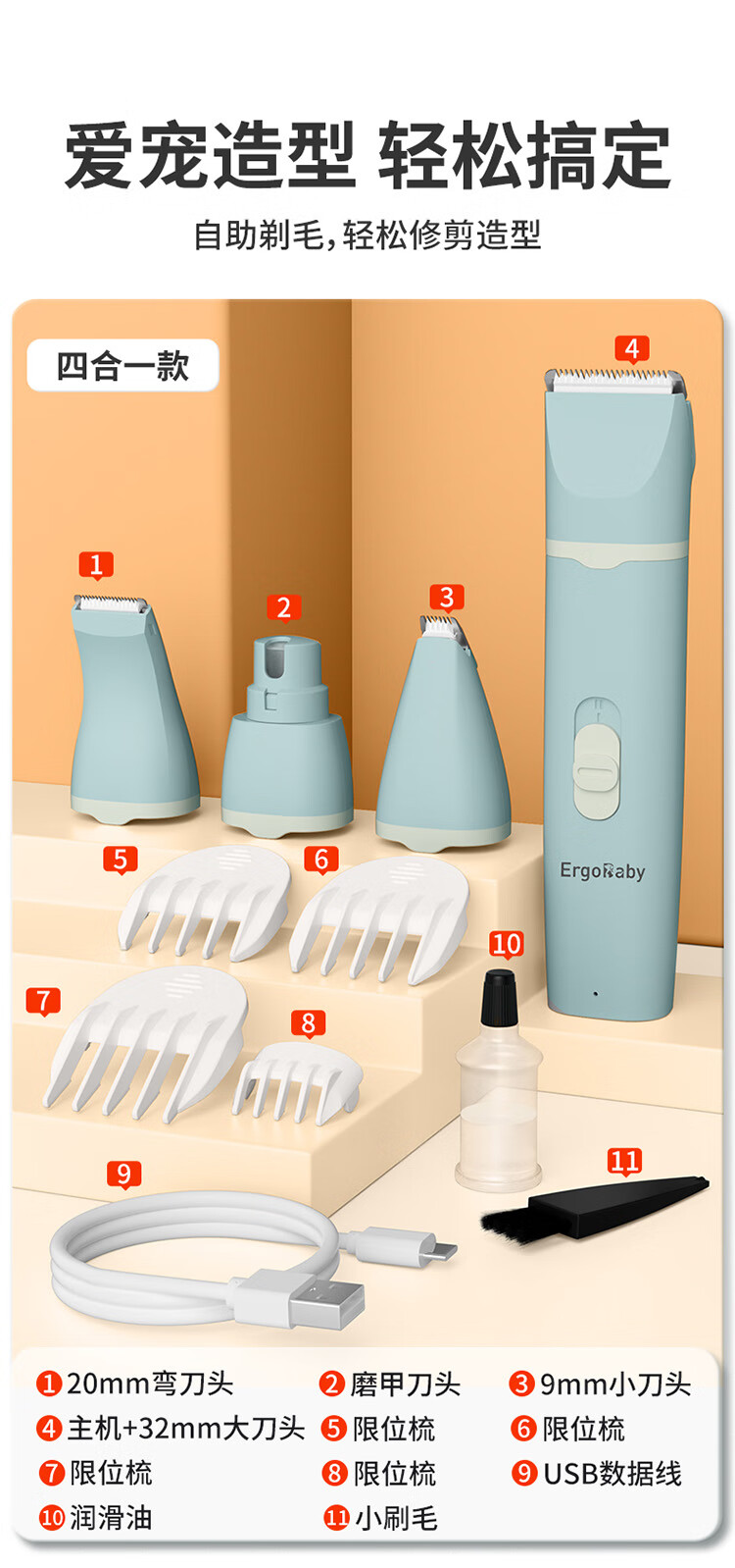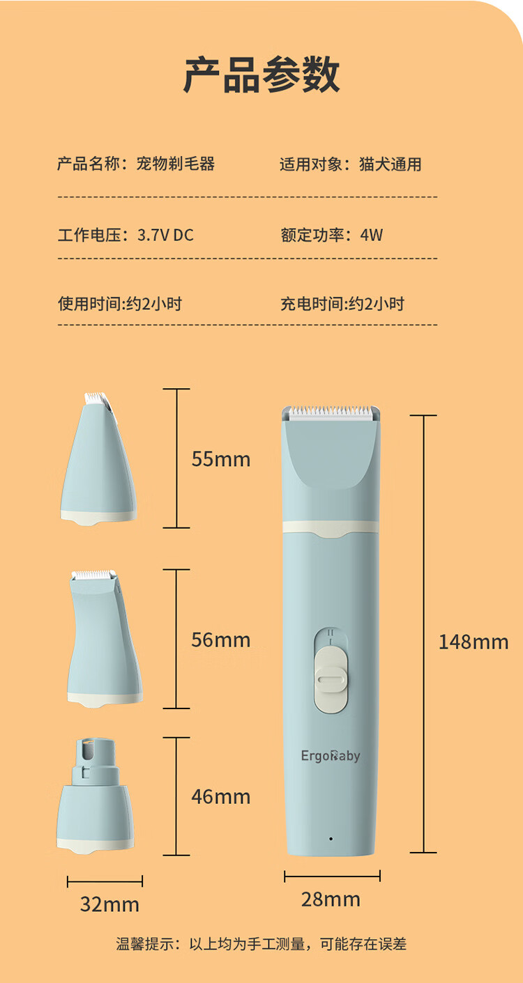 ERGOBABY pet dog shaver cat shaving foot hair trimmer dog clipper hair clipper two-in-one rechargeable model