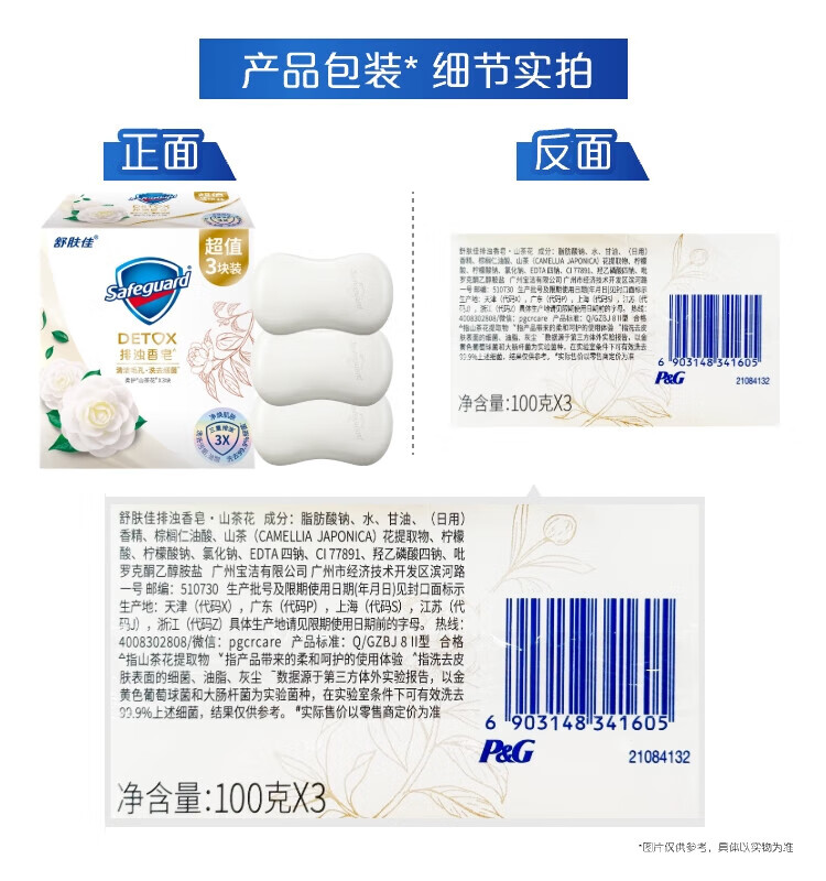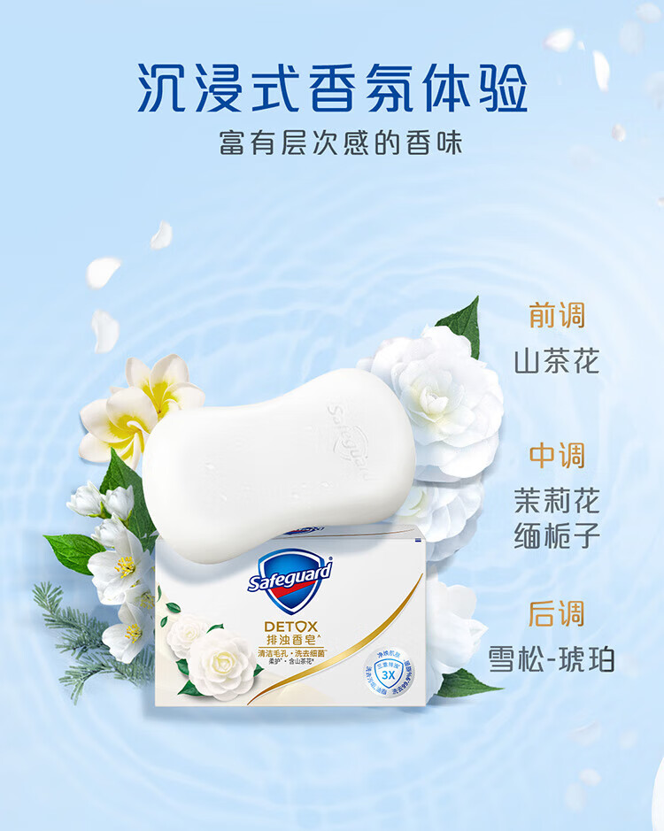 Safeguard turbidity removing soap camellia 100g*3 soap bath face wash hand cleansing for men and women