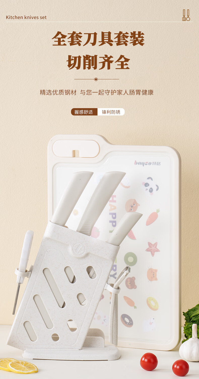 BAYCO Knife Kitchen Knife Set Cutting Board Household Baby Food Complementary Tools Full Set Fruit Cutting Knife TZ19313