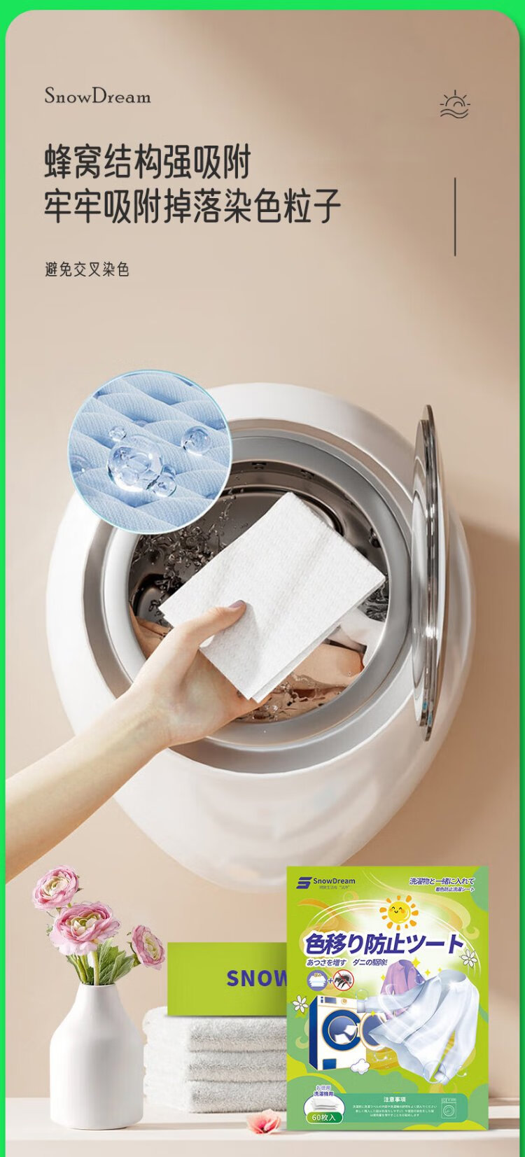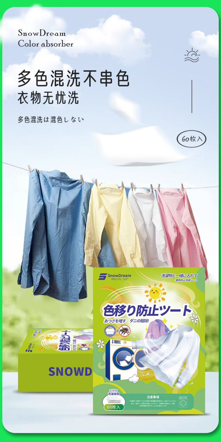 SnowDream anti-color cross-color laundry tablets 60 pieces color absorbing sheets anti-staining paper washing machine bubble paper color master piece clothing anti-staining towel