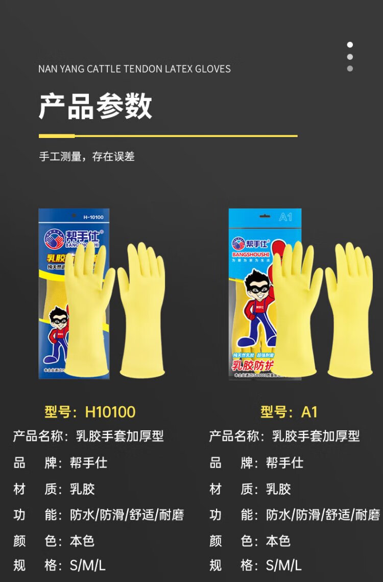 Bangshoushi thickened beef tendon latex gloves 10 pairs, rubber leather waterproof and wear-resistant, washing dishes, clothes, cleaning, kitchen hygiene, labor protection, medium size