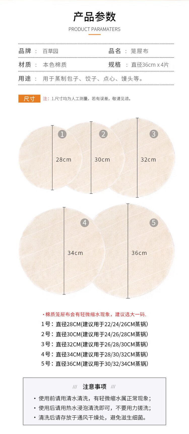 Baicaoyuan cage cloth cotton steamed buns steamer cloth household old coarse cloth steamer cloth (diameter 40cm, 6 pieces)