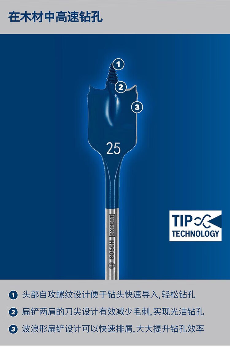 Bosch (BOSCH) woodworking flat drill three-point drill 7-piece set 16/18/20/22/25/32mm + 152mm extension rod
