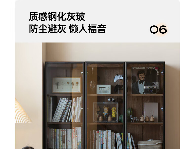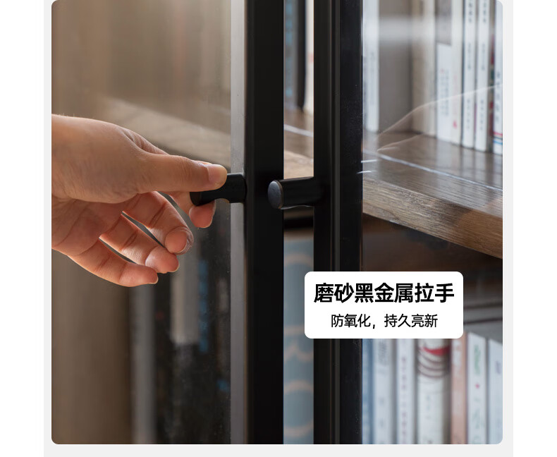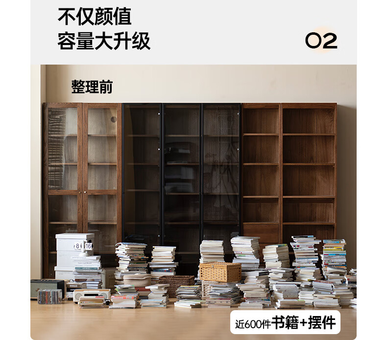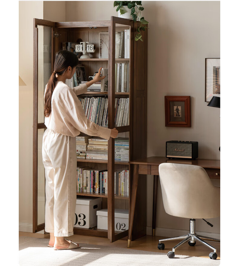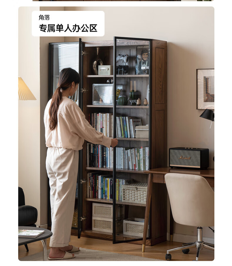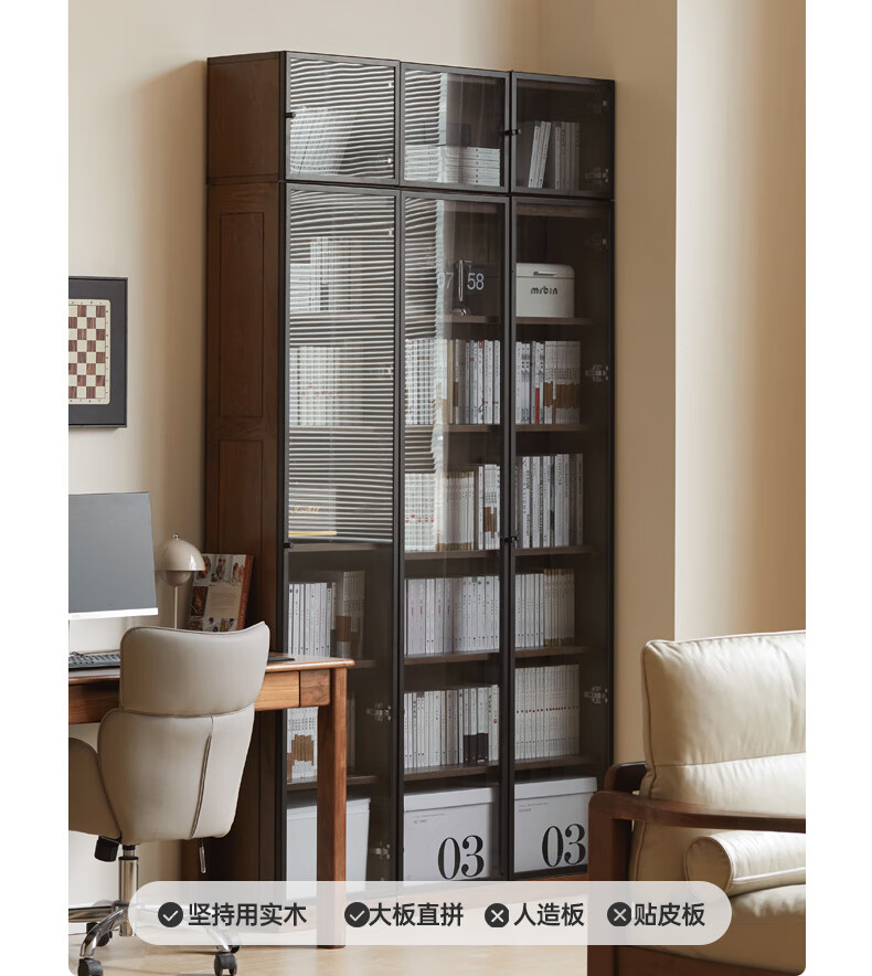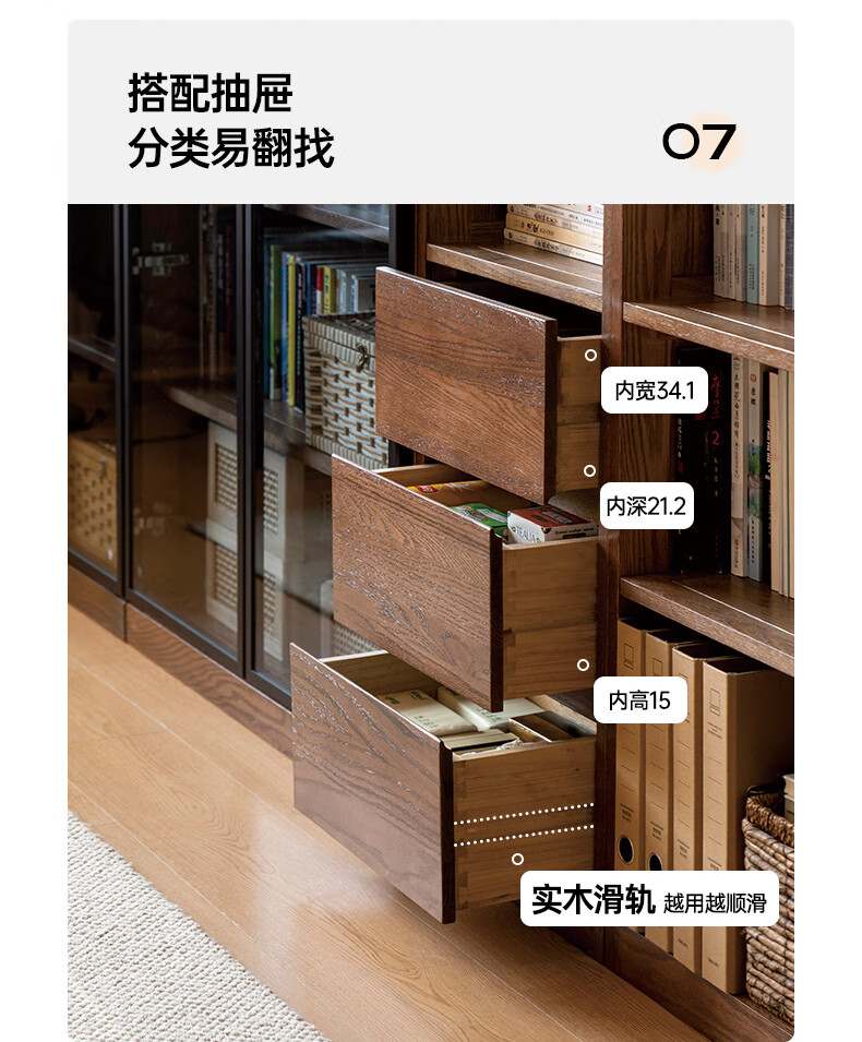 Genji Muyu solid wood bookcase simple modern study furniture oak storage cabinet living room with glass door three drawers semi-open cabinet