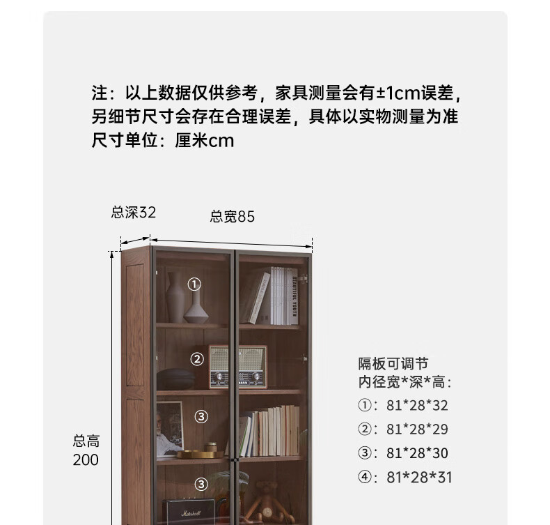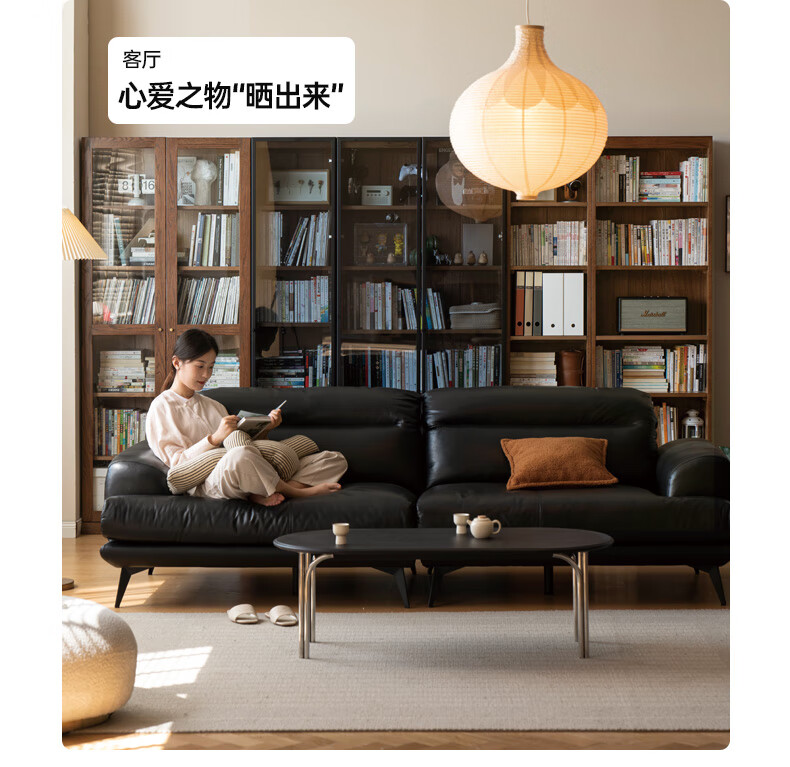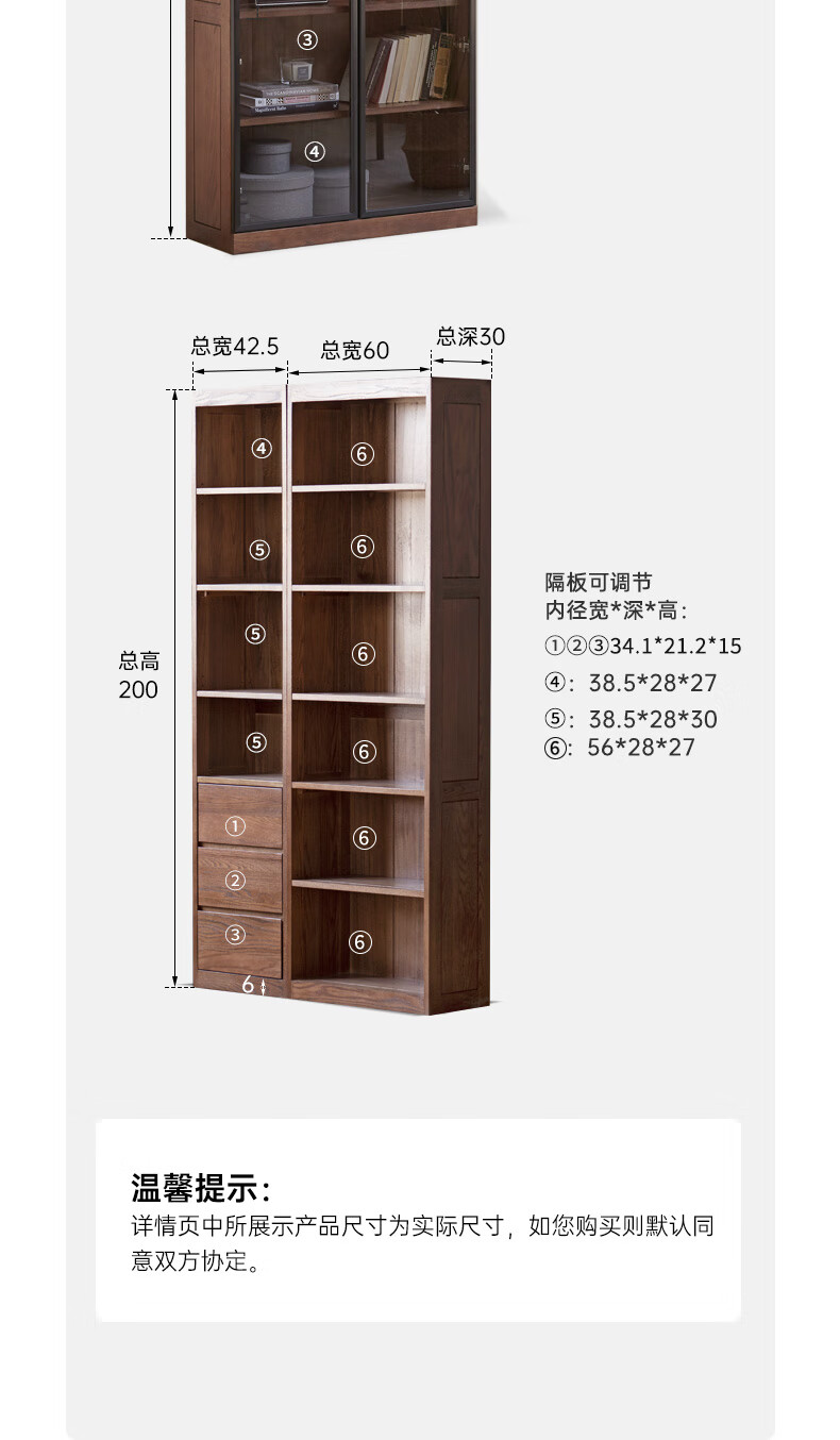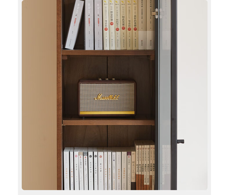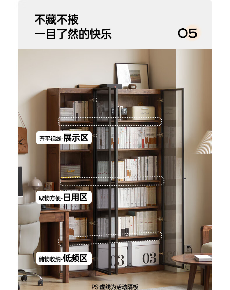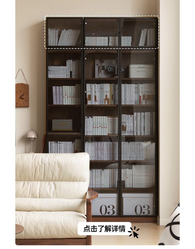 Genji Muyu solid wood bookcase simple modern study furniture oak storage cabinet living room with glass door three drawers semi-open cabinet
