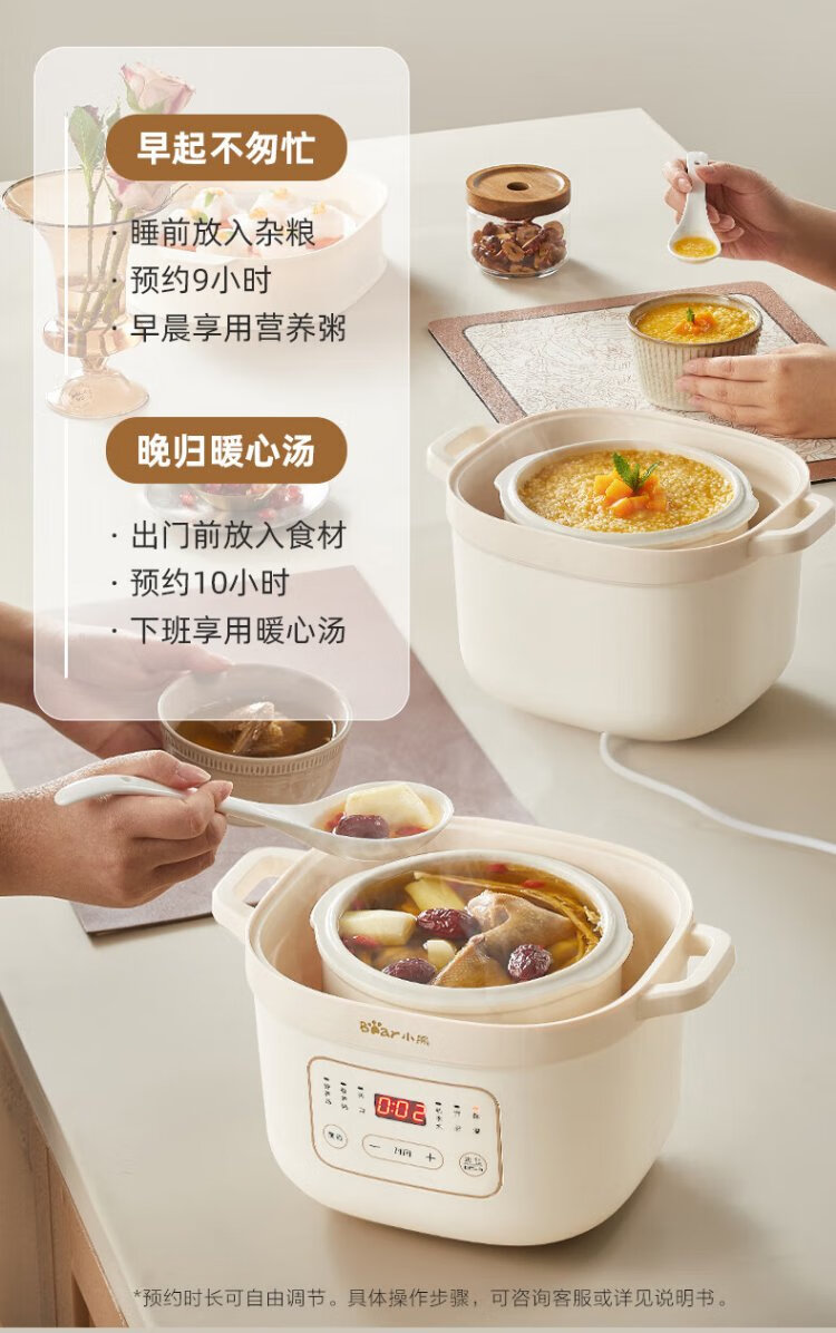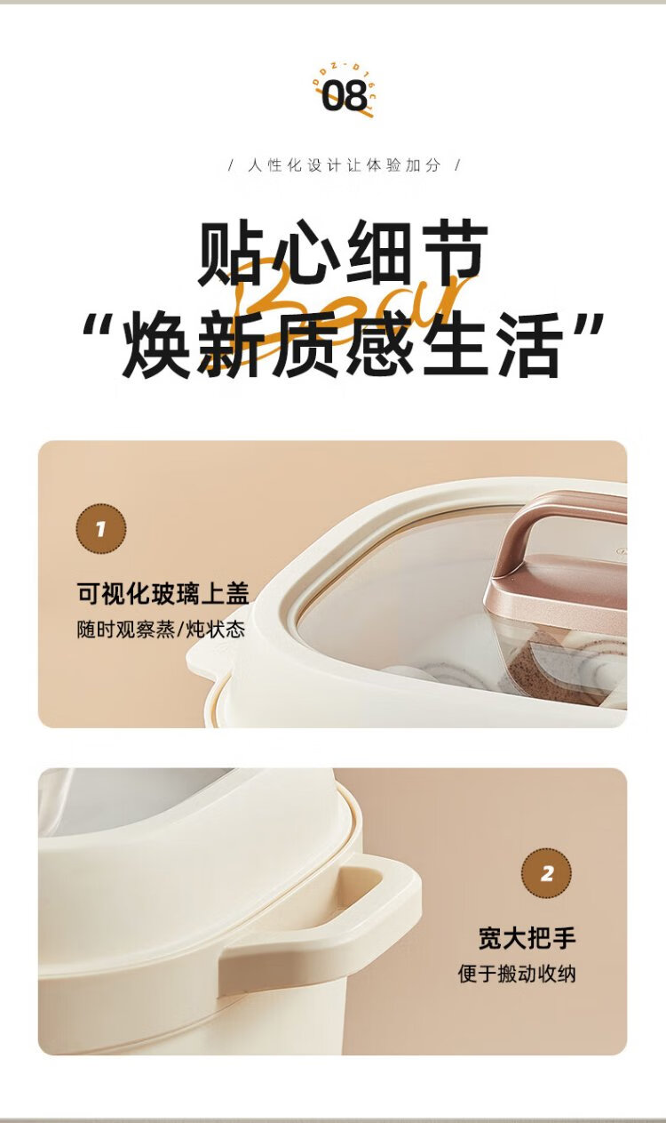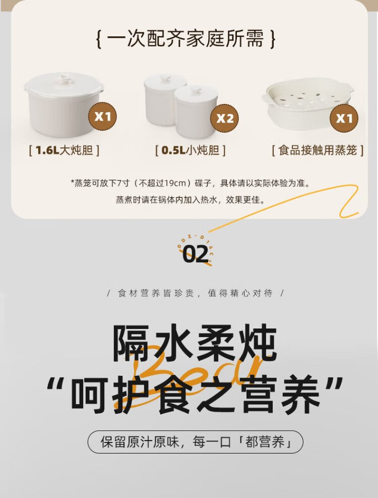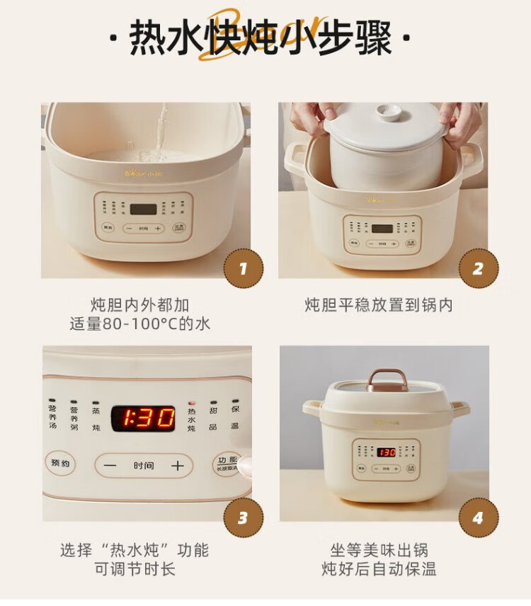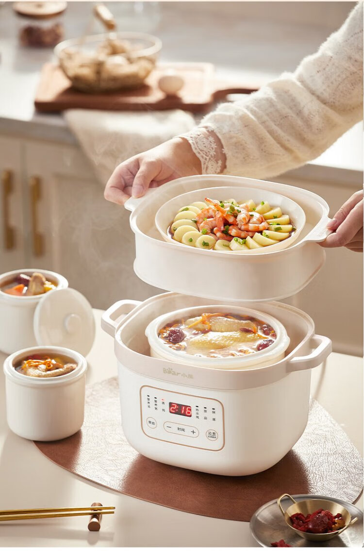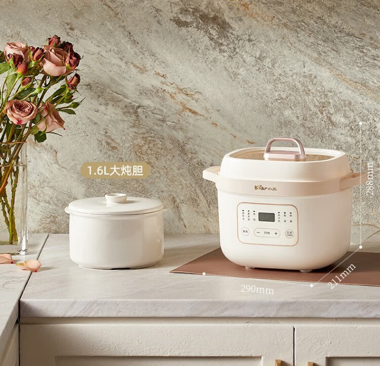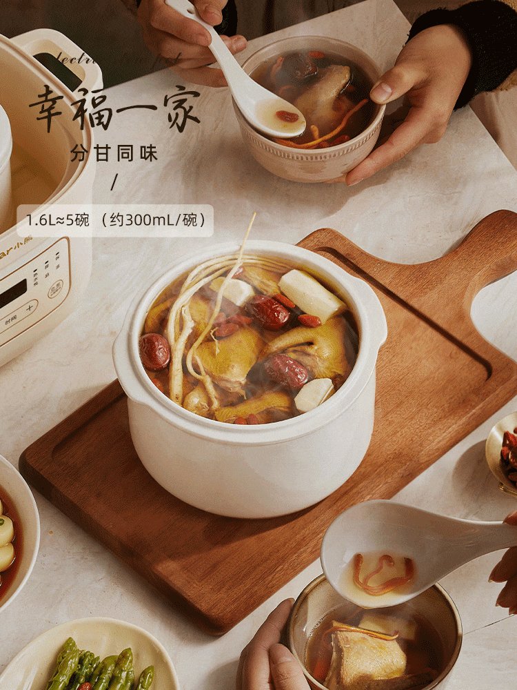 Bear electric stew pot, electric stew pot, water-proof stew pot, soup pot, soup pot, steamer, baby food pot, porridge pot, bird's nest stew pot, water-proof stew pot for 2-3 people DDZ-D16C1 1.6L