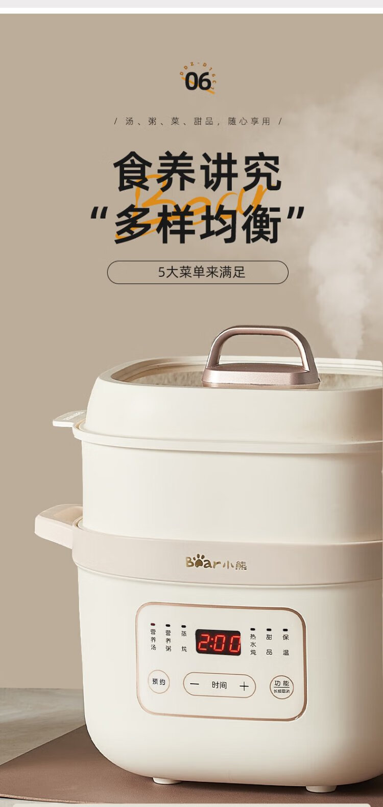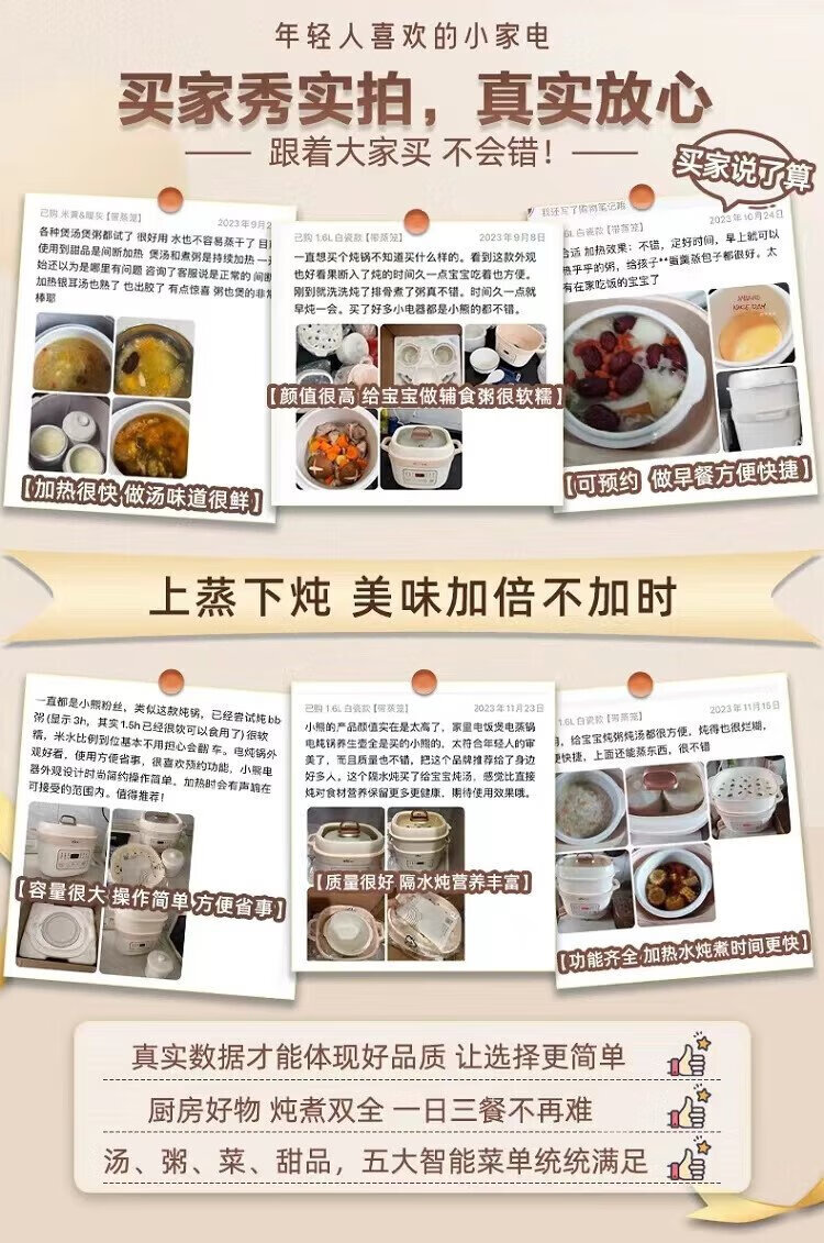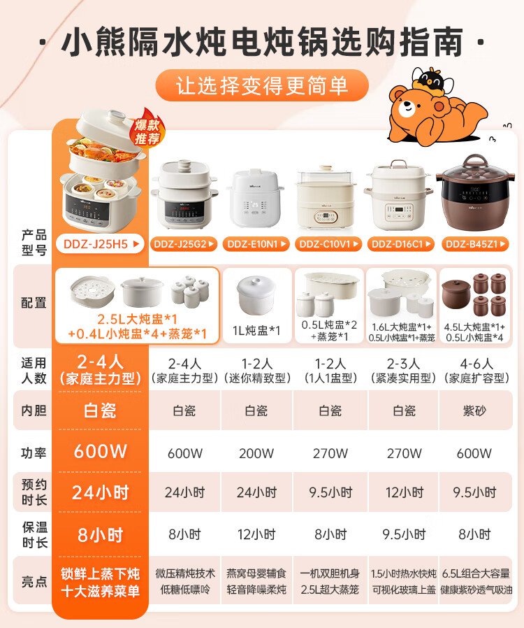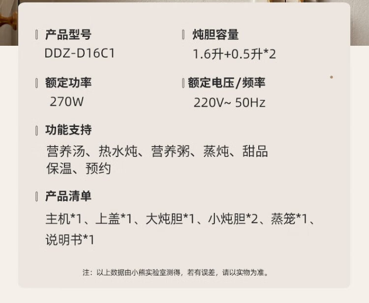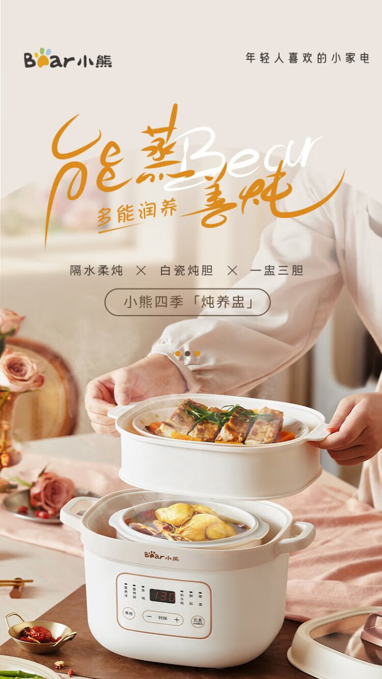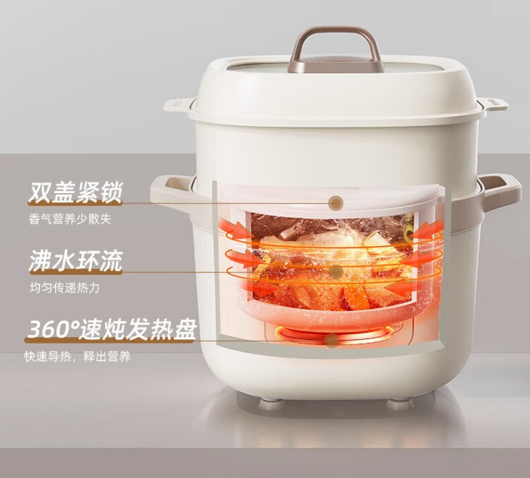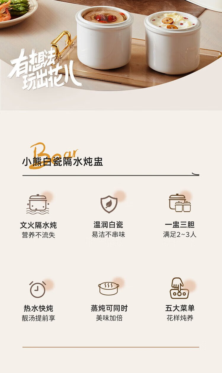 Bear electric stew pot, electric stew pot, water-proof stew pot, soup pot, soup pot, steamer, baby food pot, porridge pot, bird's nest stew pot, water-proof stew pot for 2-3 people DDZ-D16C1 1.6L
