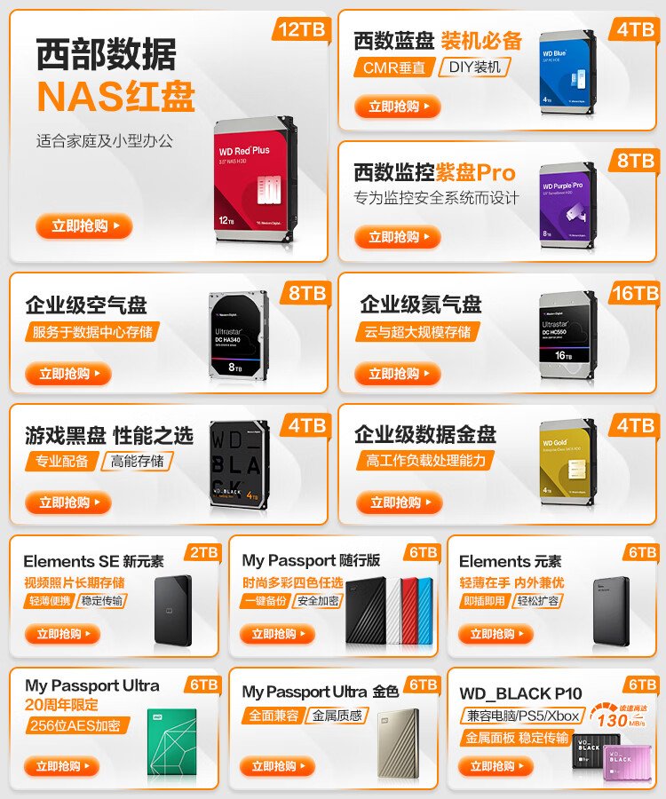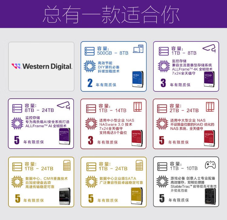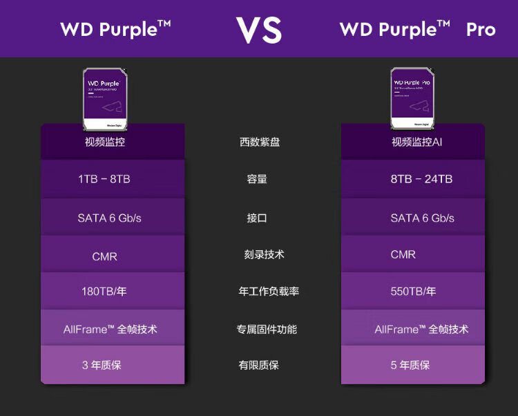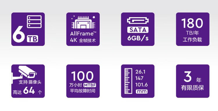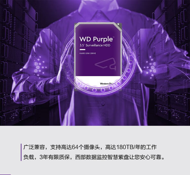 Western Digital (WD) 6TB surveillance-grade mechanical hard drive WD Purple Western Digital Purple SATA 256MB CMR vertical security storage 3.5 inches WD64PURZ