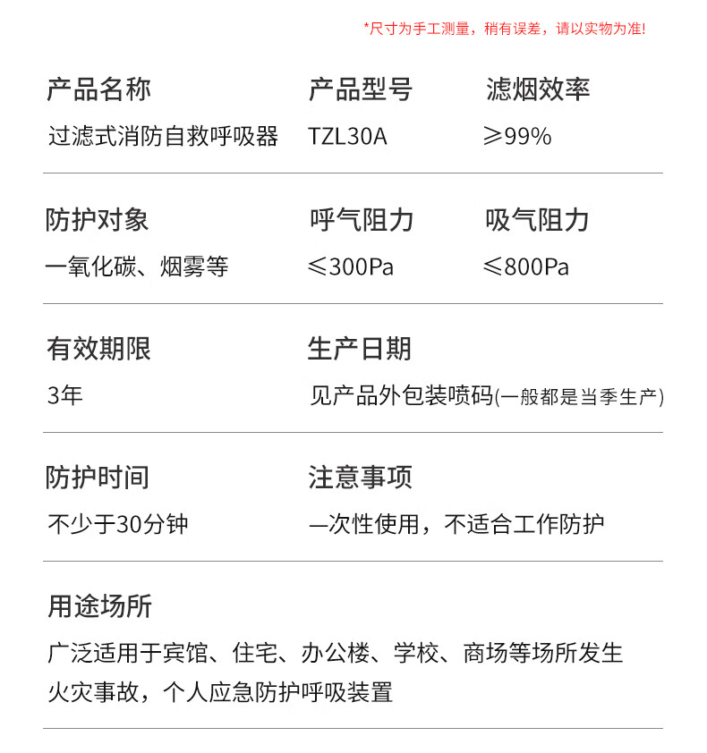 Quxing gas mask fire mask anti-smoke fire mask fire escape filter self-rescue respirator TZL30A