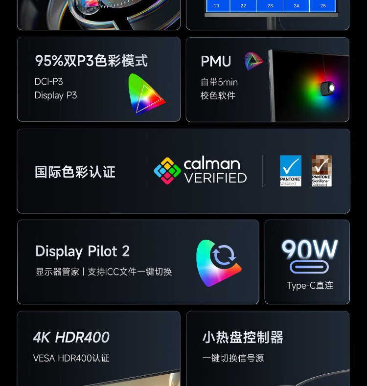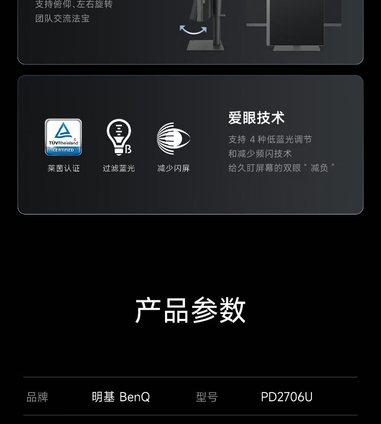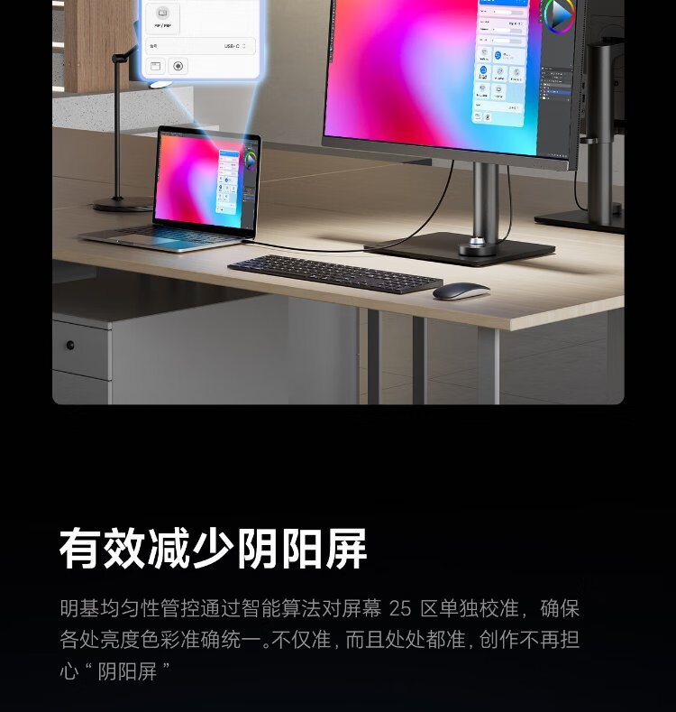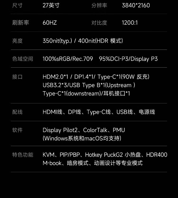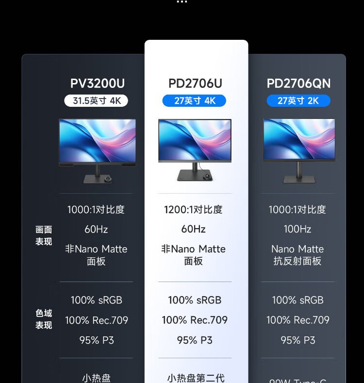 BenQ PD2706U 27-inch 4K HDR400 professional design dual P3 color gamut Type-C90W rechargeable KVM/PBP/PIP high-efficiency split-screen display