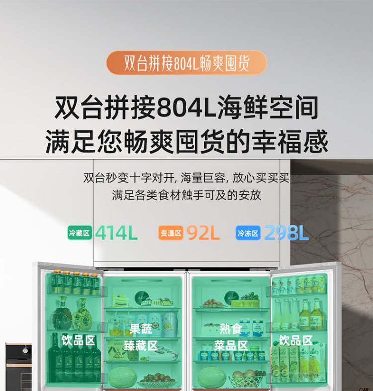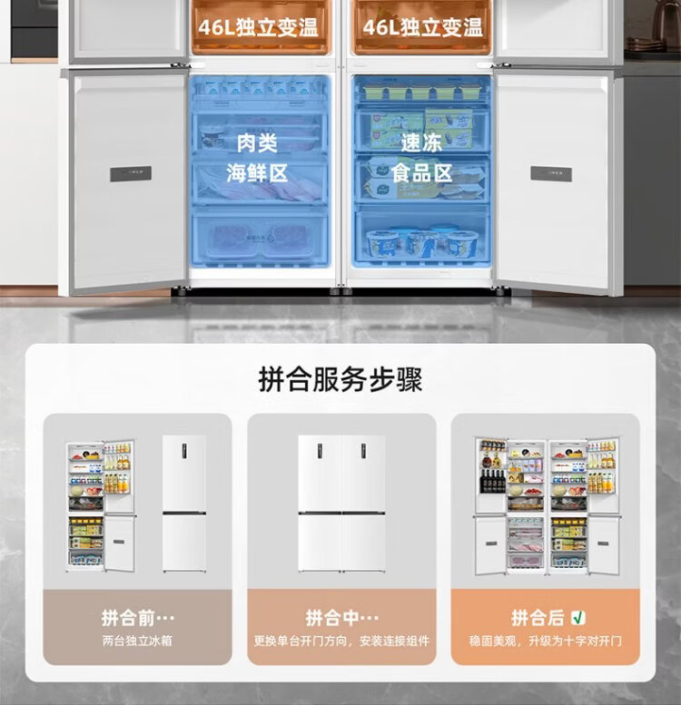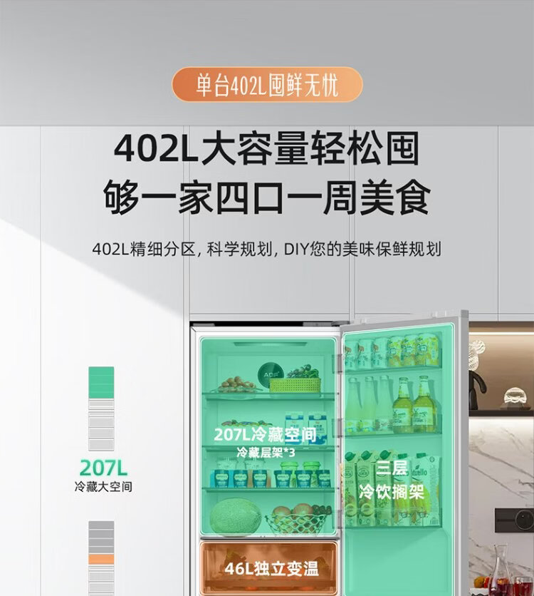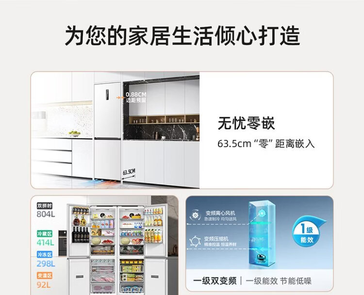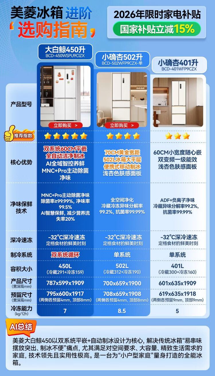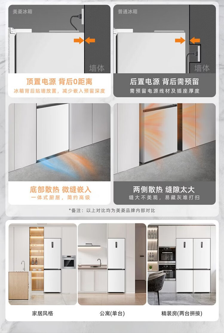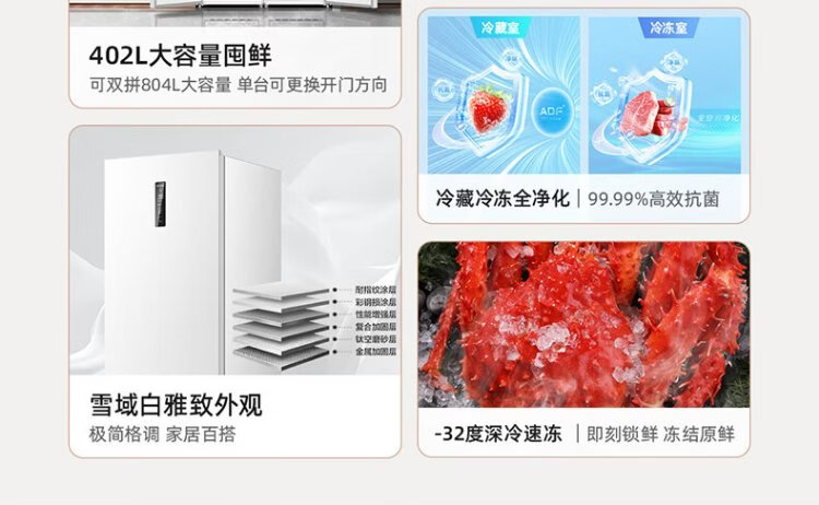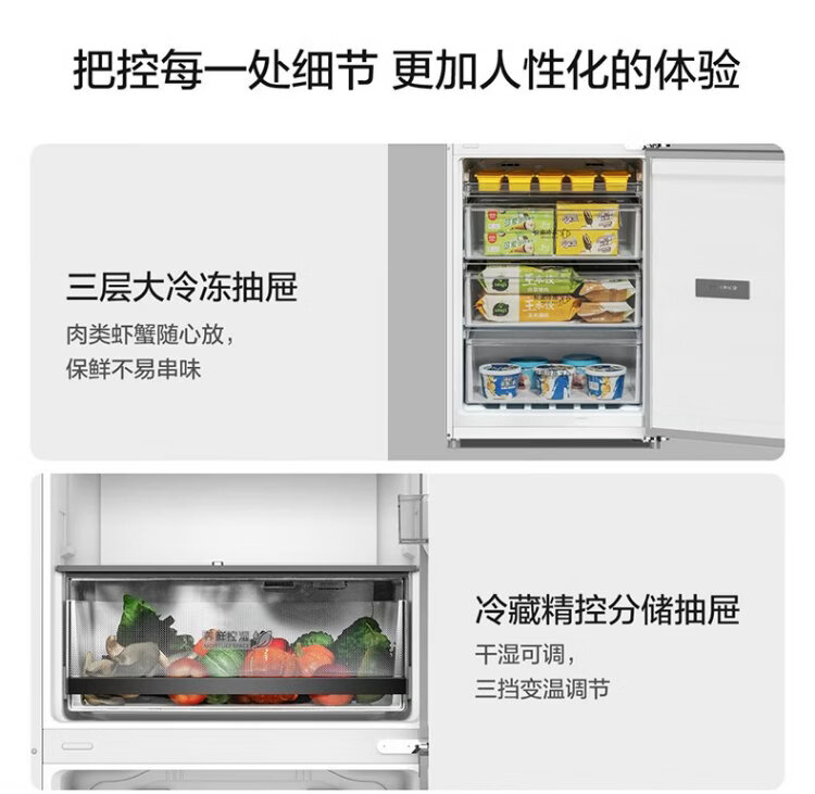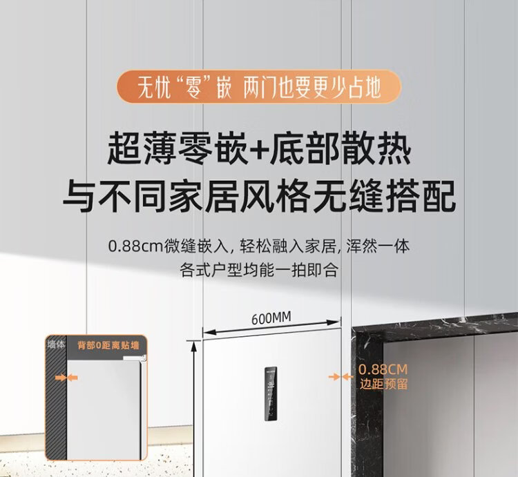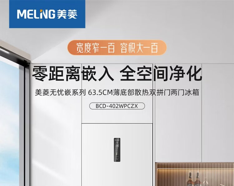 MeiLing worry-free embedded 402L two-door refrigerator ultra-thin zero embedded bottom heat dissipation can be spliced ​​with first-class energy efficiency air-cooled frost-free white BCD-402WPCZX national subsidy