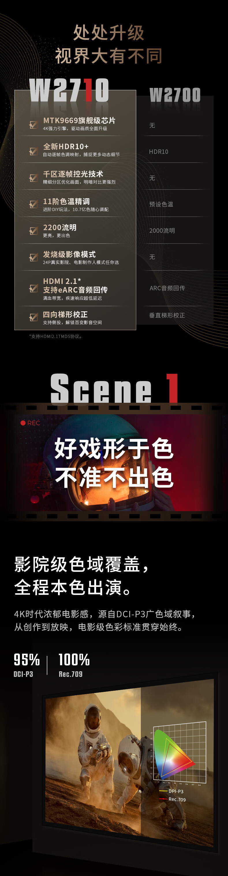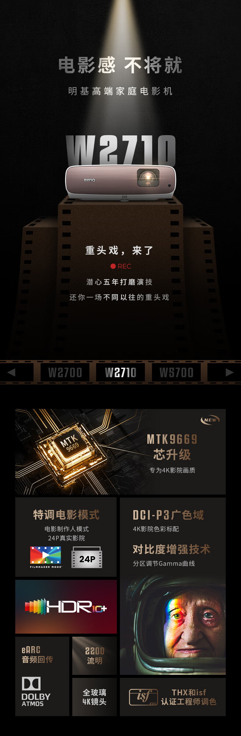BenQ W2710 Projector Home Projector Home Theater (4K Ultra HD 2200 Lumens HDR-PRO DCI-P3)
