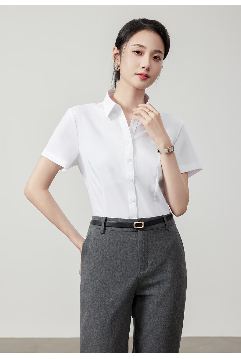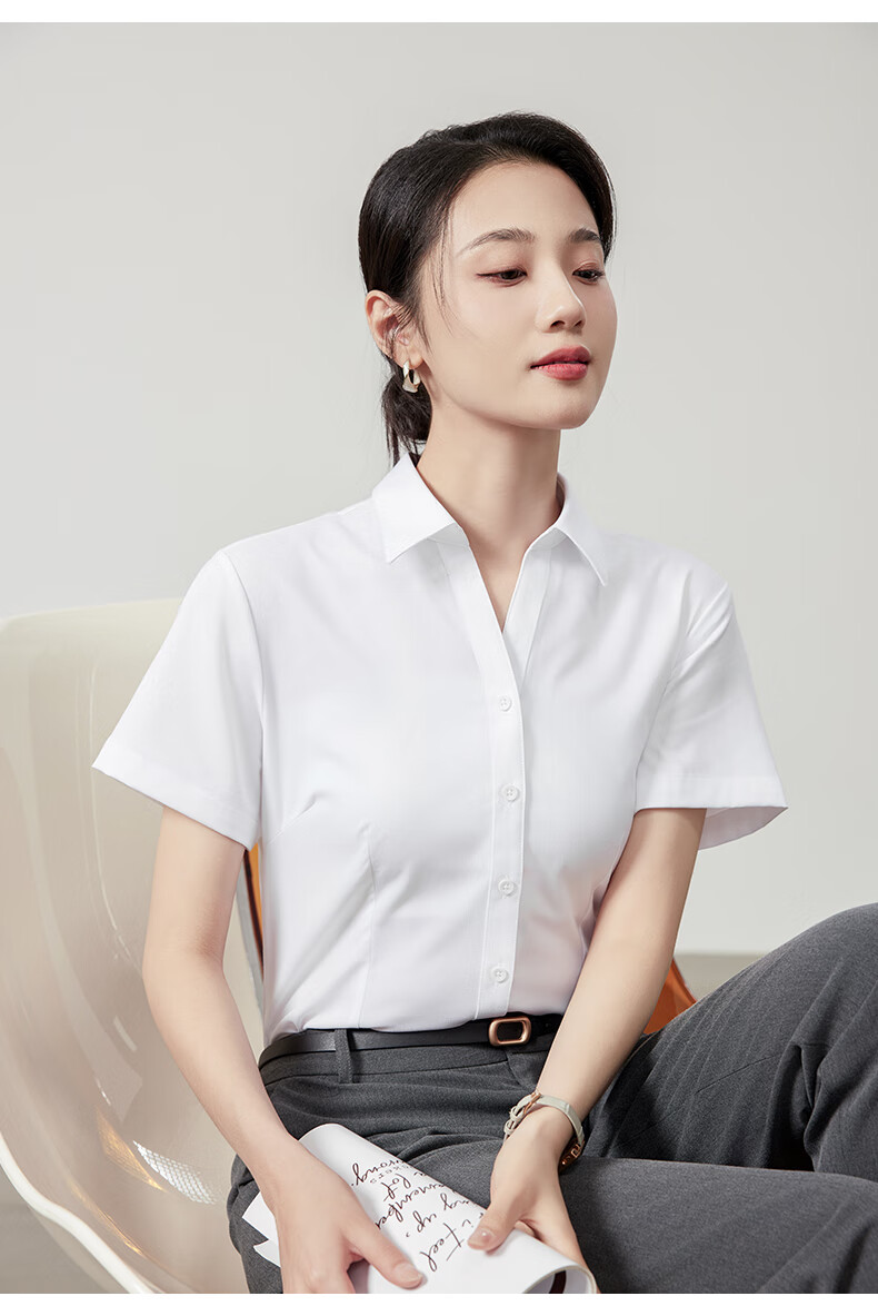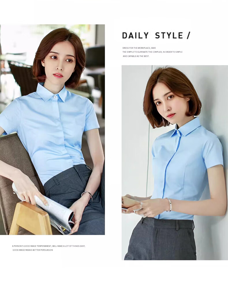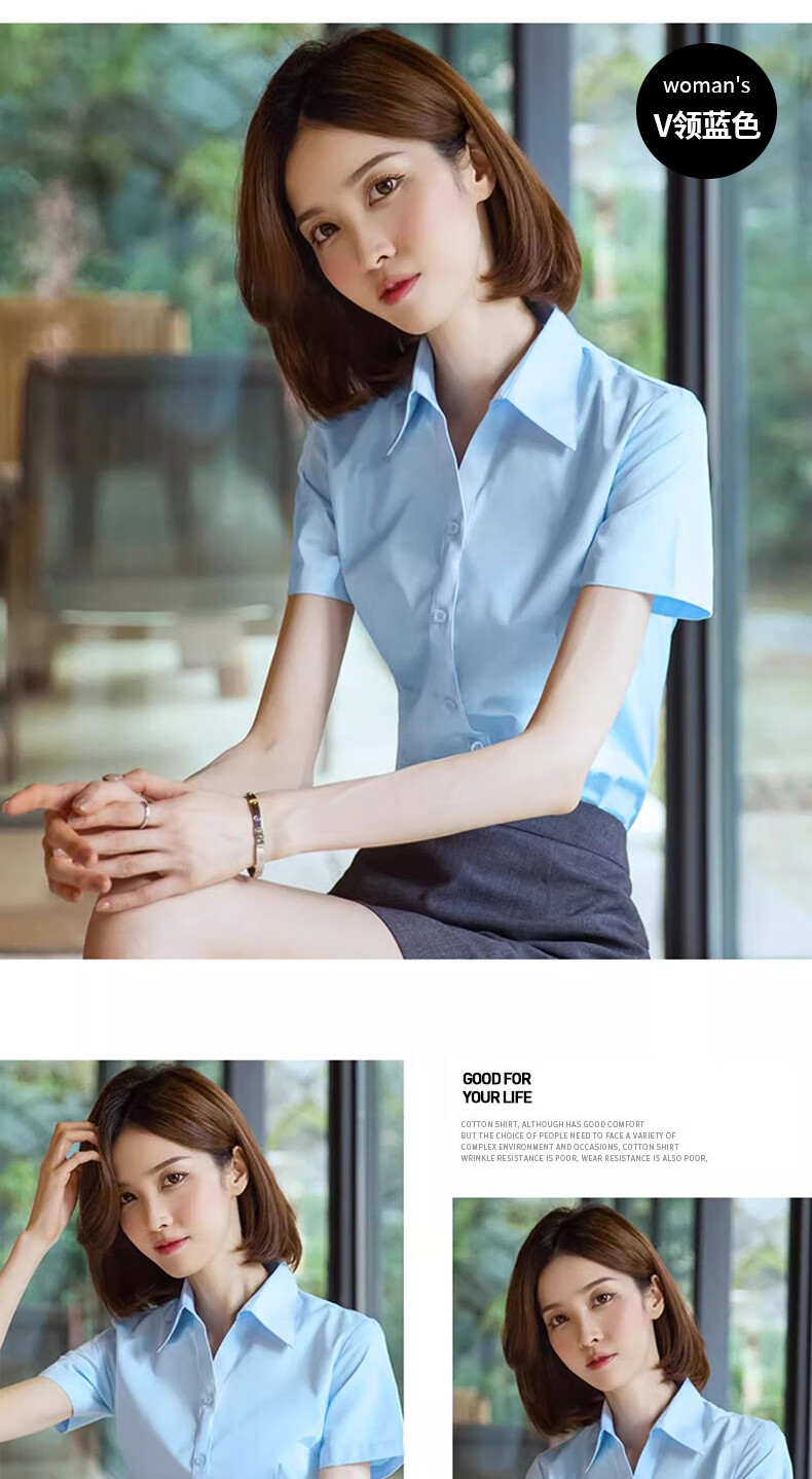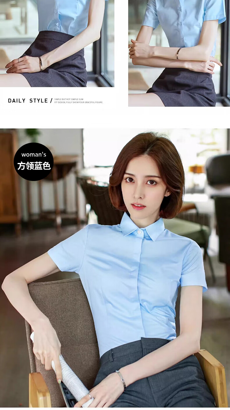 Langsha white shirt short-sleeved women's summer thin loose commuting professional blue shirt women's temperament formal white shirt