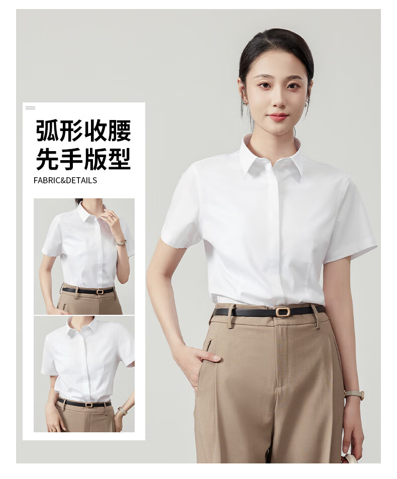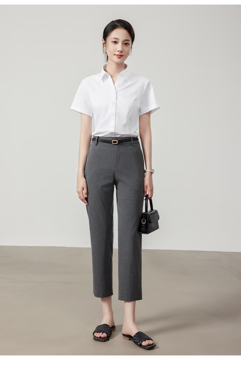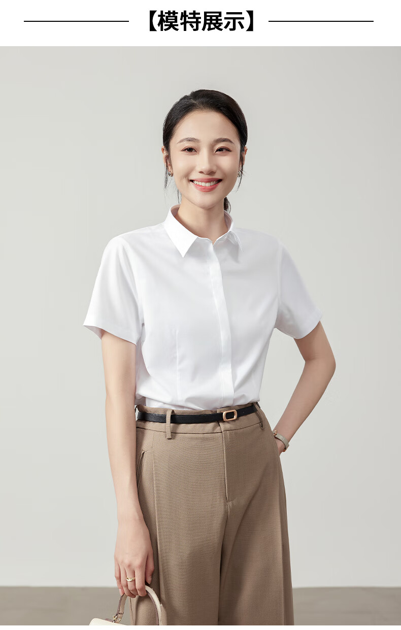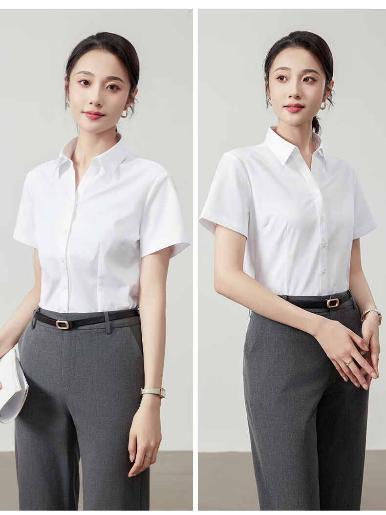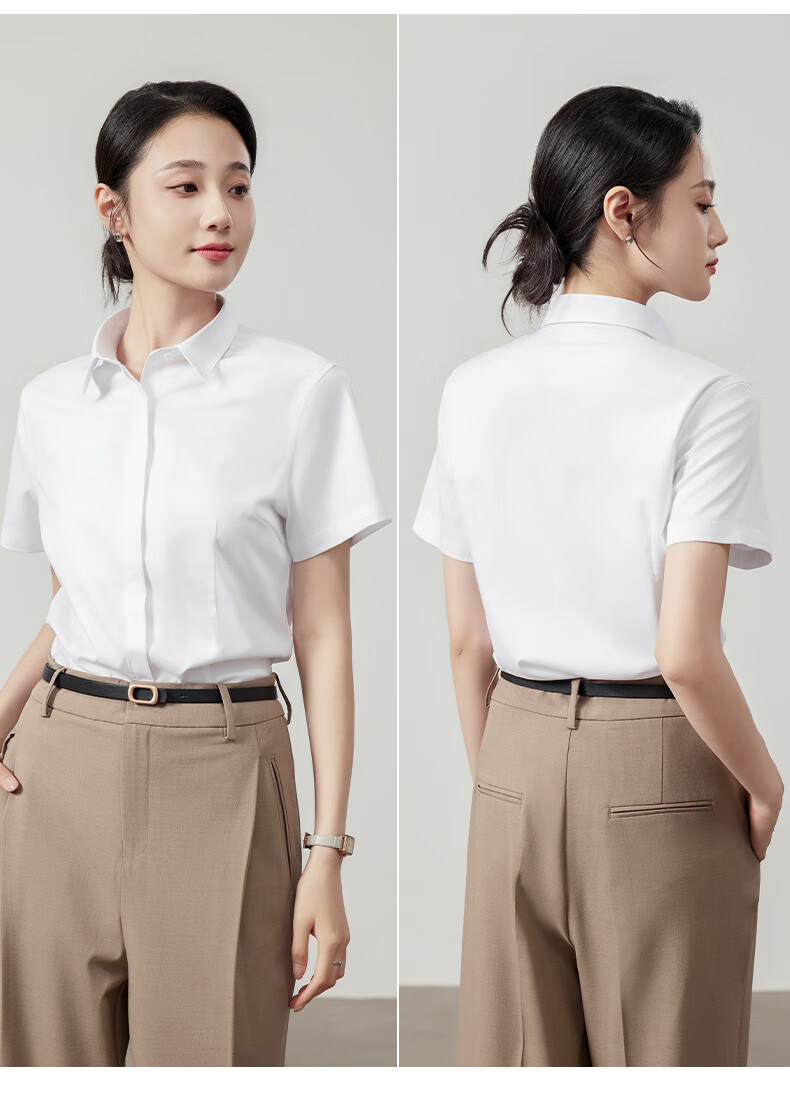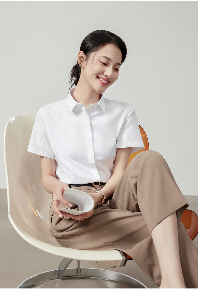Langsha white shirt short-sleeved women's summer thin loose commuting professional blue shirt women's temperament formal white shirt
