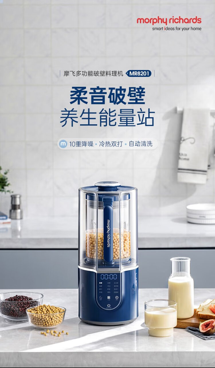 Morphyrichards Wall Breaker Household 1.5L Multifunctional Soft Soybean Milk Maker Heating Fully Automatic Juicer Blender 3-4 People Appointment Insulation Soundproofing Noise Reduction Food Supplementary Machine MR8201 White