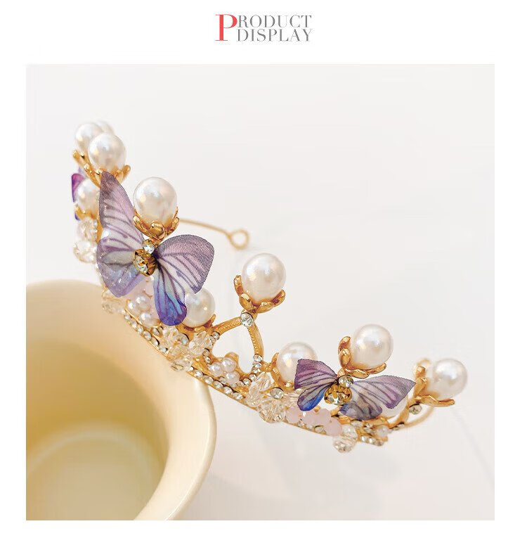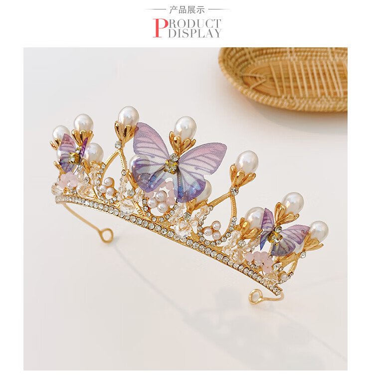 Chimera (CHIMERA) butterfly beaded crown headband children girls princess performance headband headdress birthday gift girl