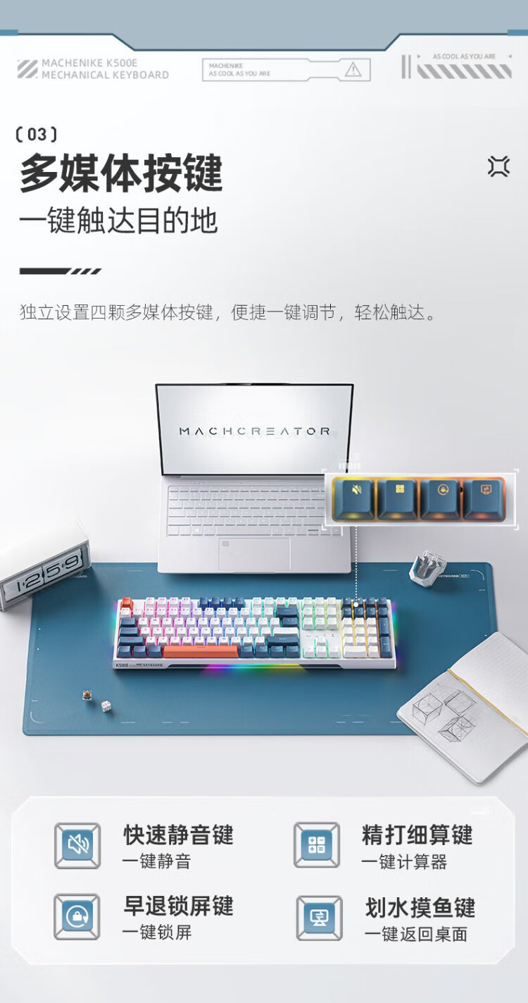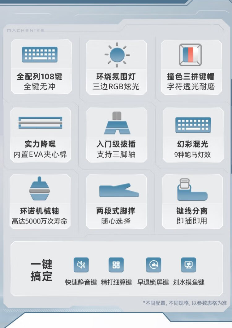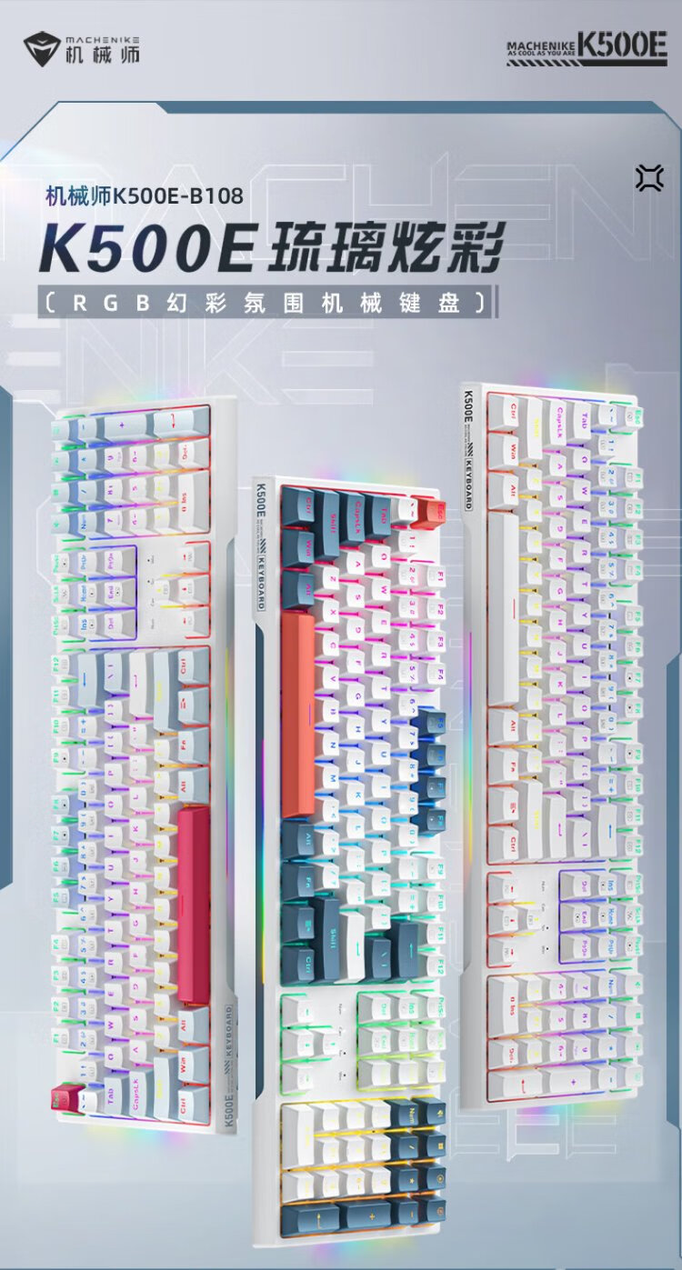 MACHENIKE K500E wired mechanical keyboard gaming keyboard laptop desktop keyboard 108 keycap brown axis RGB-Mountain Blue
