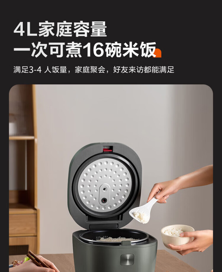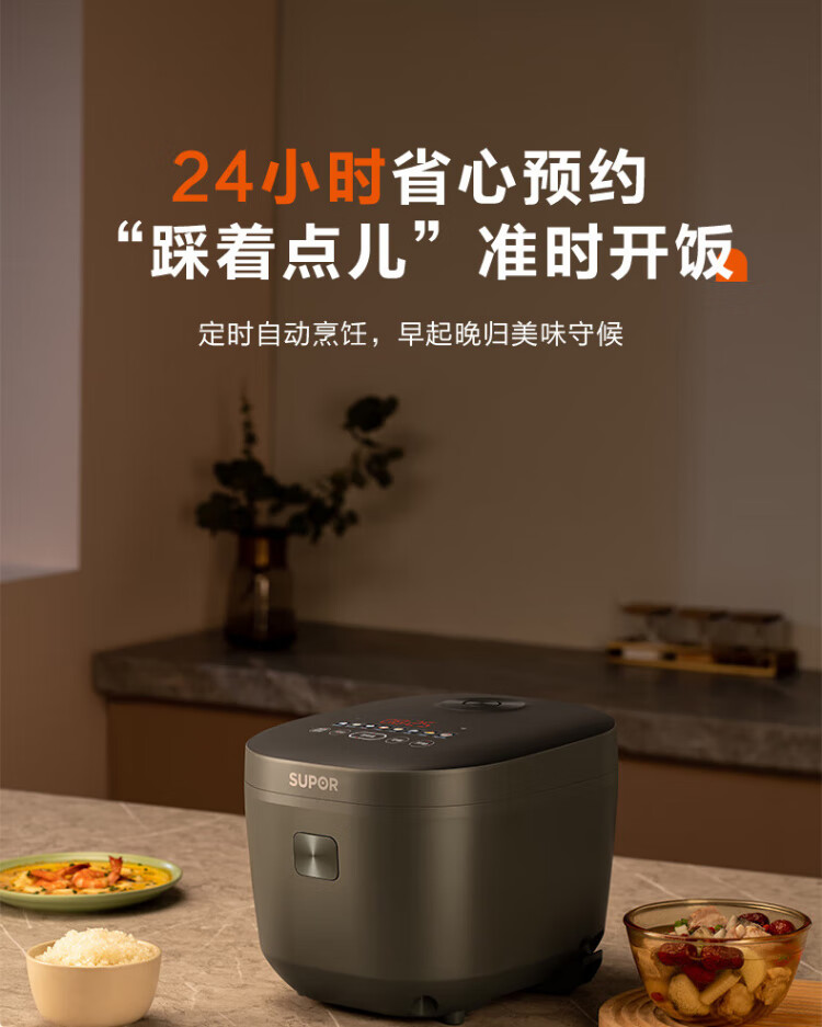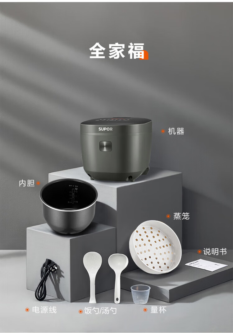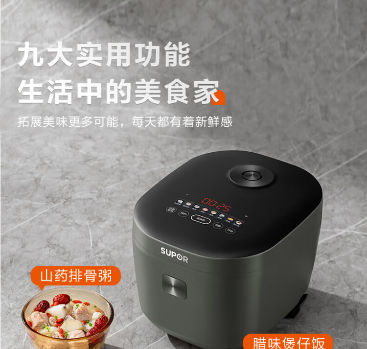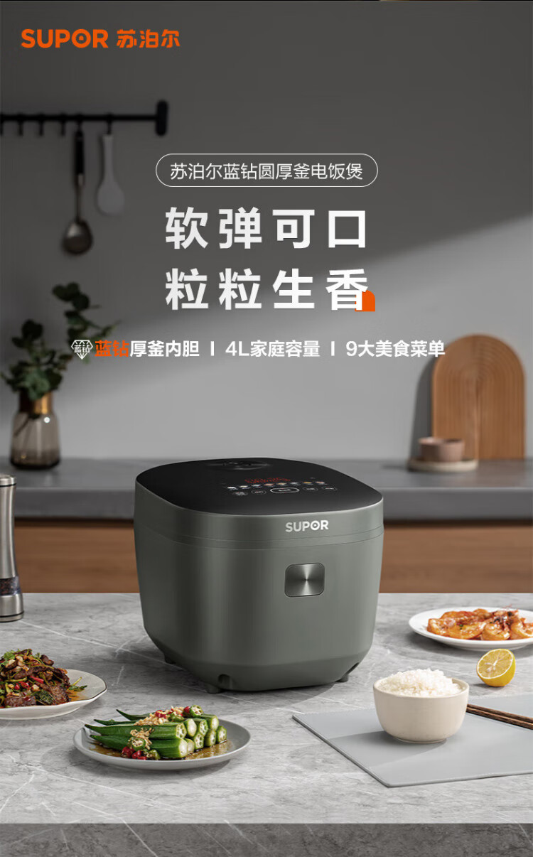 SUPOR rice cooker for 4-5 people, 4 liters, large capacity, blue diamond thick cauldron, household porridge cooker, smart multi-functional micro-pressure non-stick rice cooker, national subsidy SF40FC871