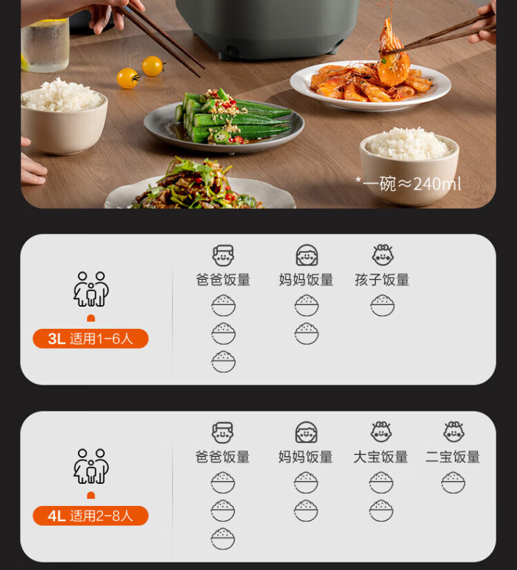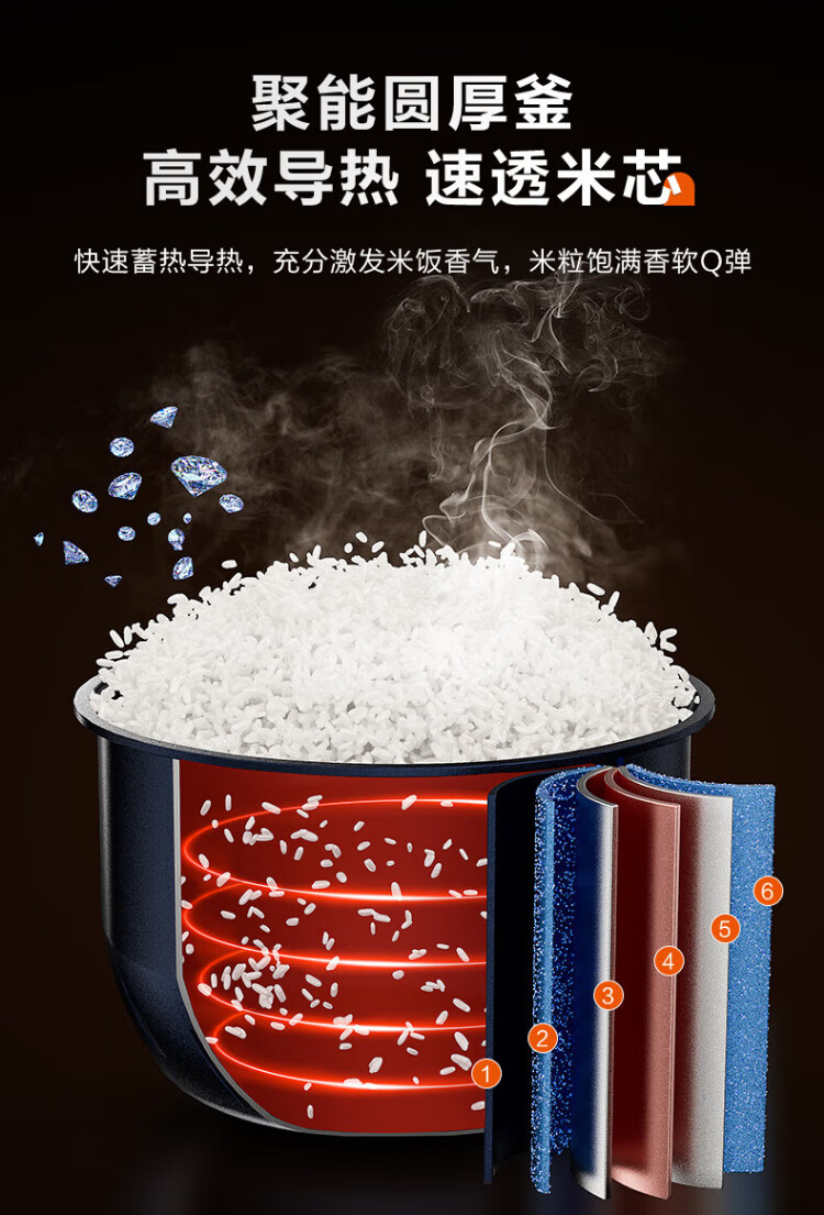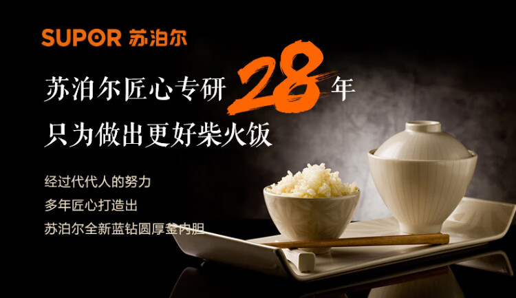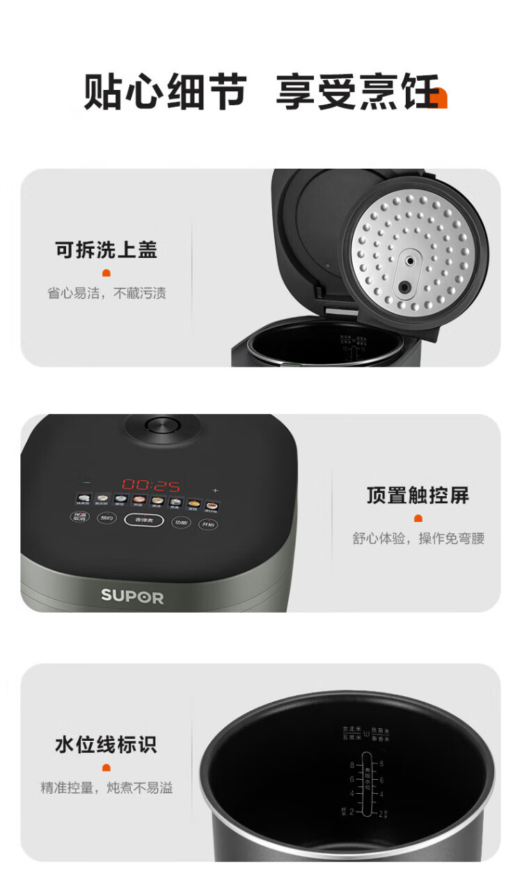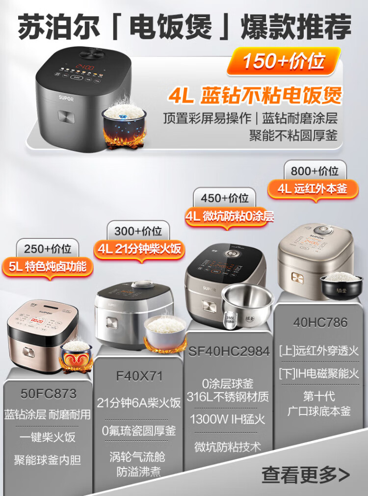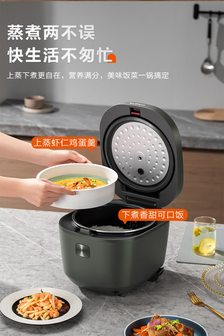 SUPOR rice cooker for 4-5 people, 4 liters, large capacity, blue diamond thick cauldron, household porridge cooker, smart multi-functional micro-pressure non-stick rice cooker, national subsidy SF40FC871