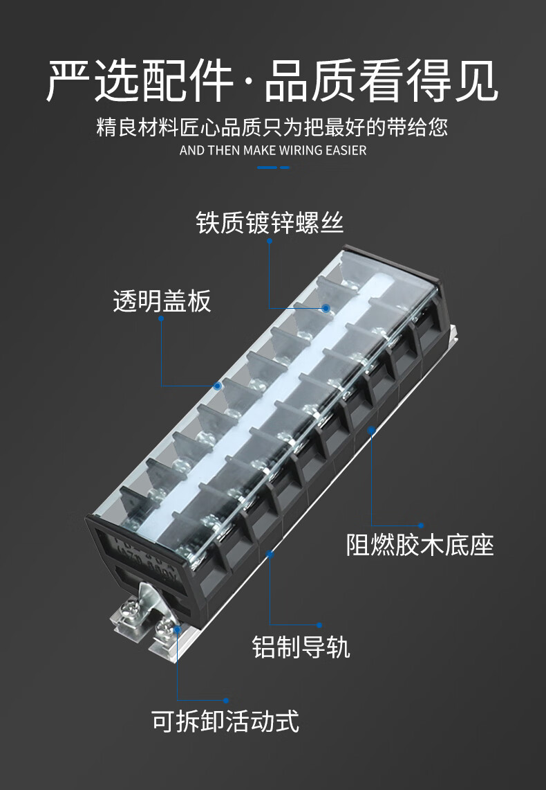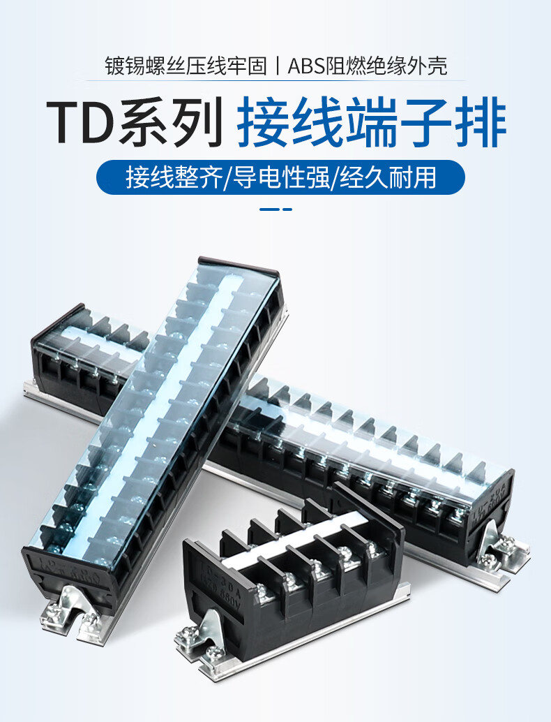 Andatong TD series terminal block guide rail type high current column electrical box parallel device TD6020 (60A/20 positions)