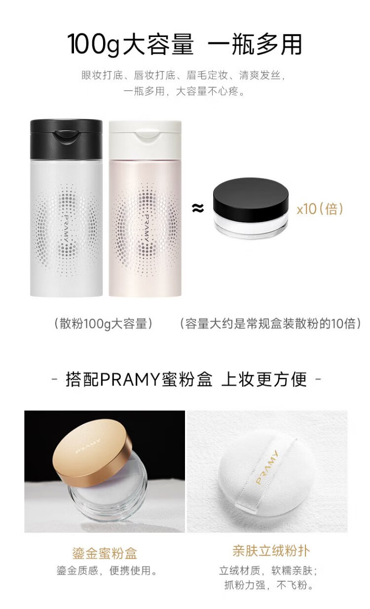 PRAMY silky honey powder black pepper loose powder setting powder long-lasting clear and natural makeup 100g large capacity 01# transparent style