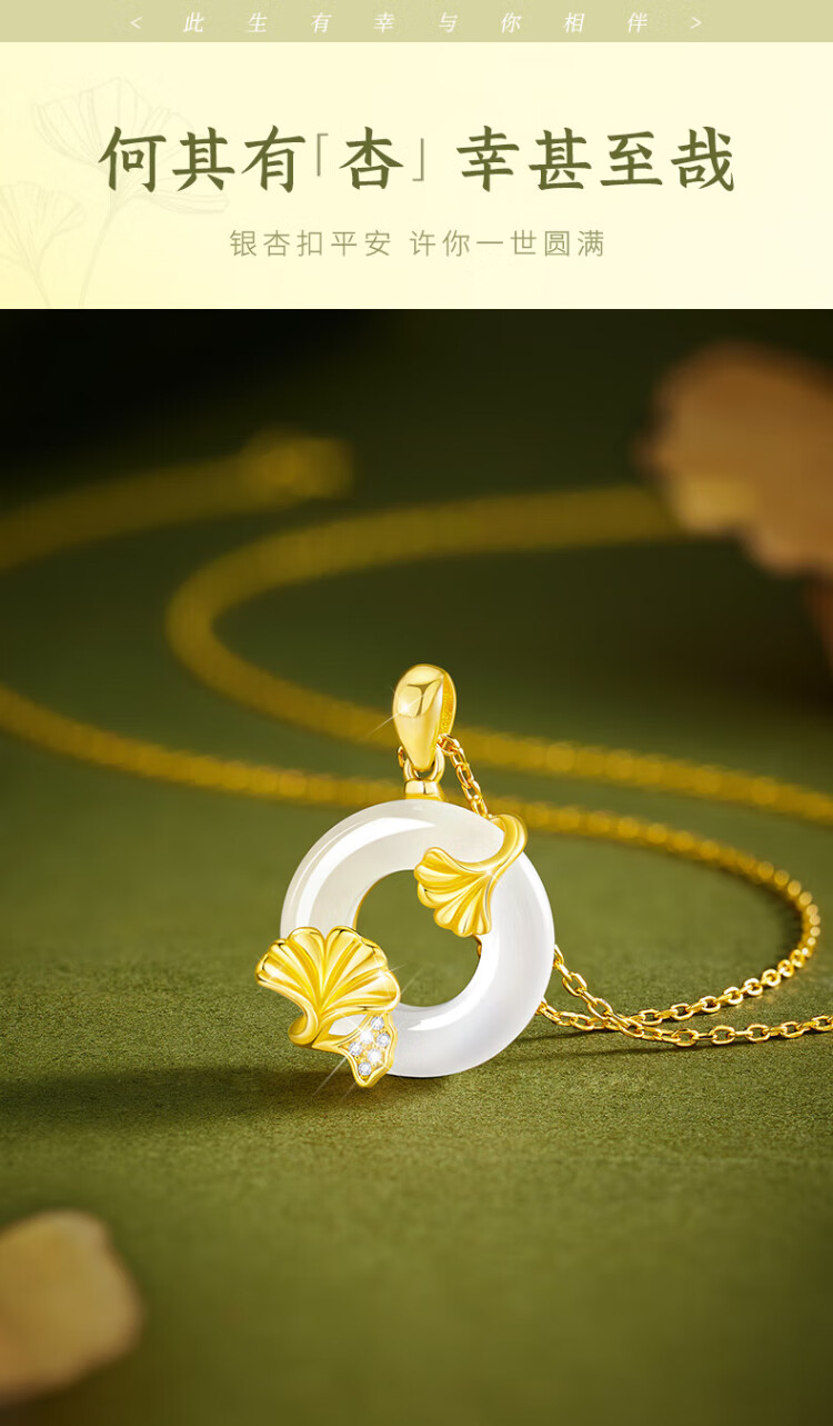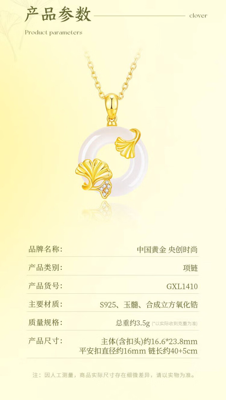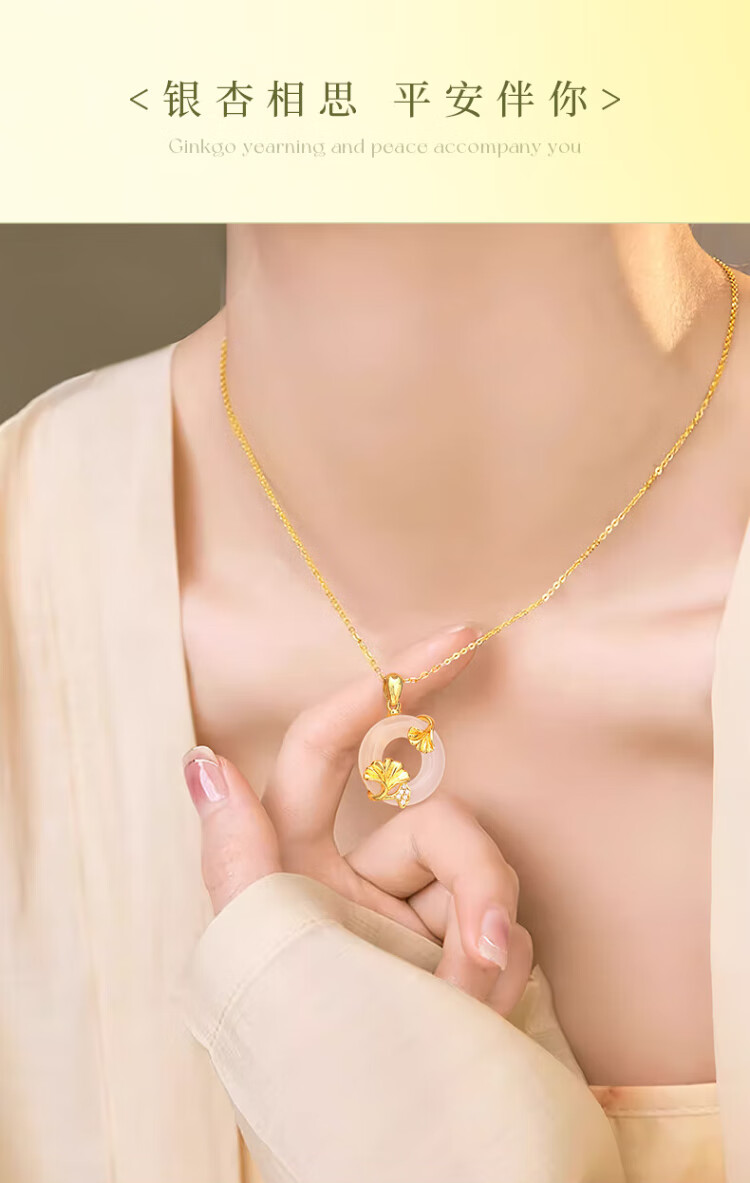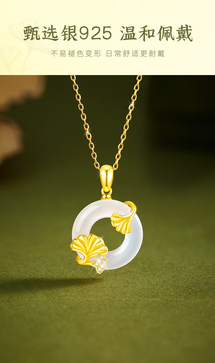Central Chuang Fashion Chinese Gold and Silver Necklace Peace Buckle Jade Pendant Girls Birthday Gift Ladies Girlfriend Girlfriend Wife S925
