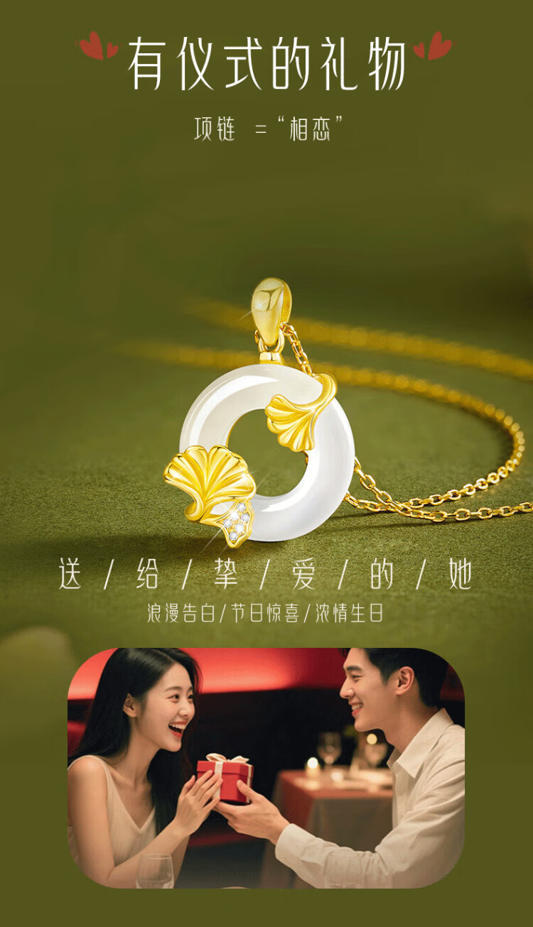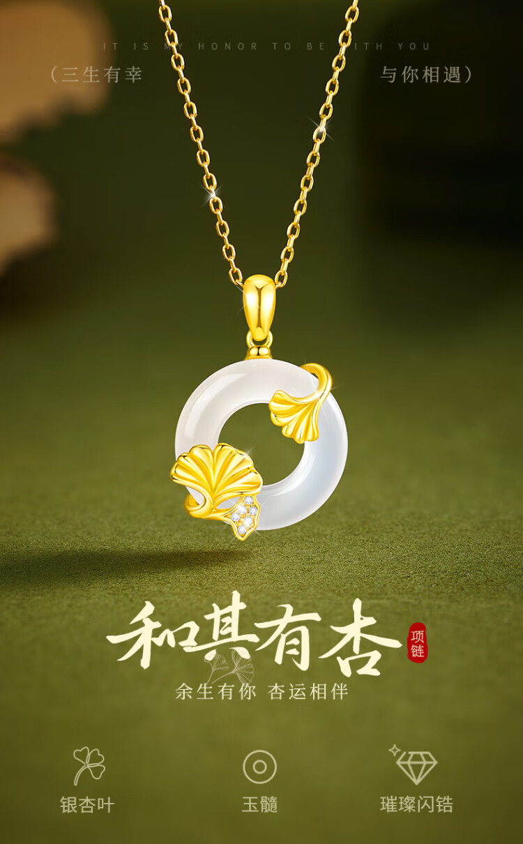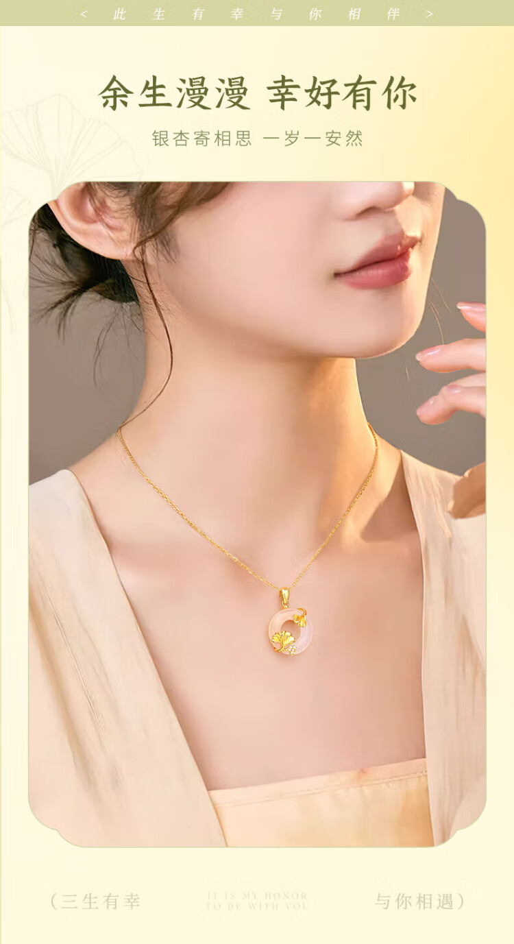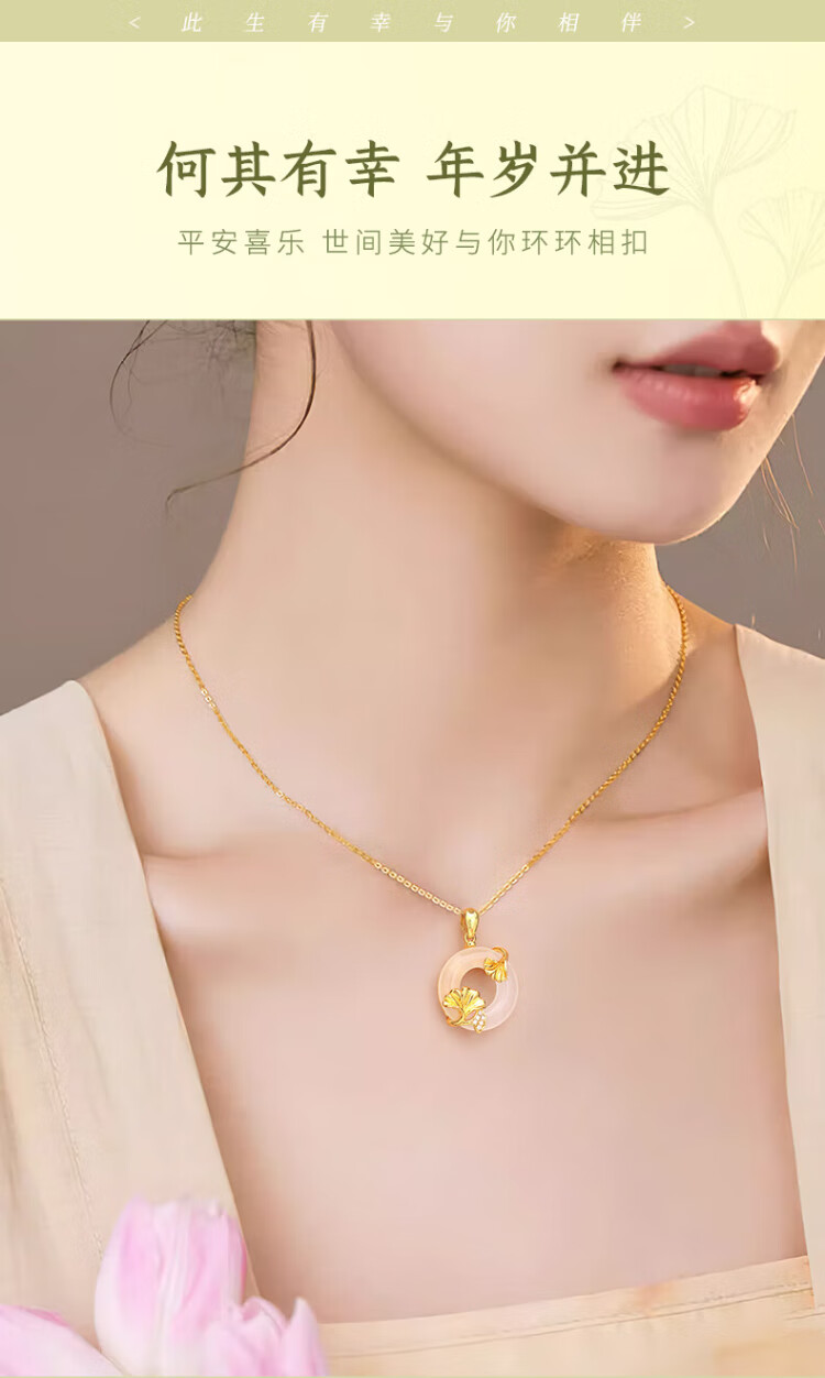 Central Chuang Fashion Chinese Gold and Silver Necklace Peace Buckle Jade Pendant Girls Birthday Gift Ladies Girlfriend Girlfriend Wife S925