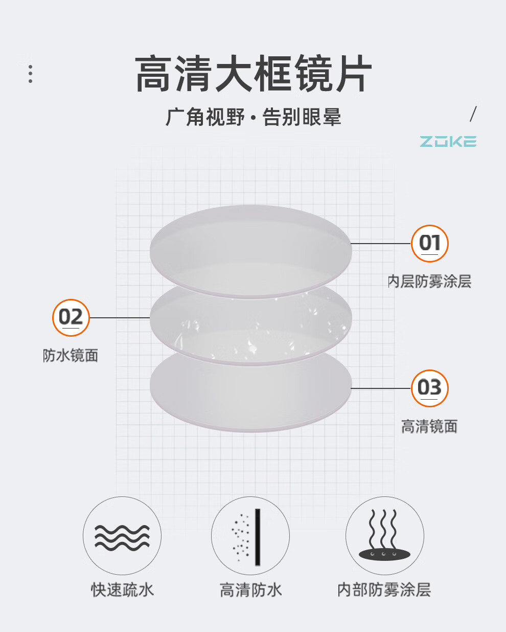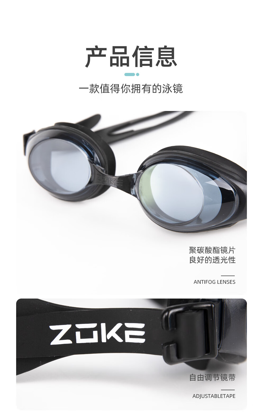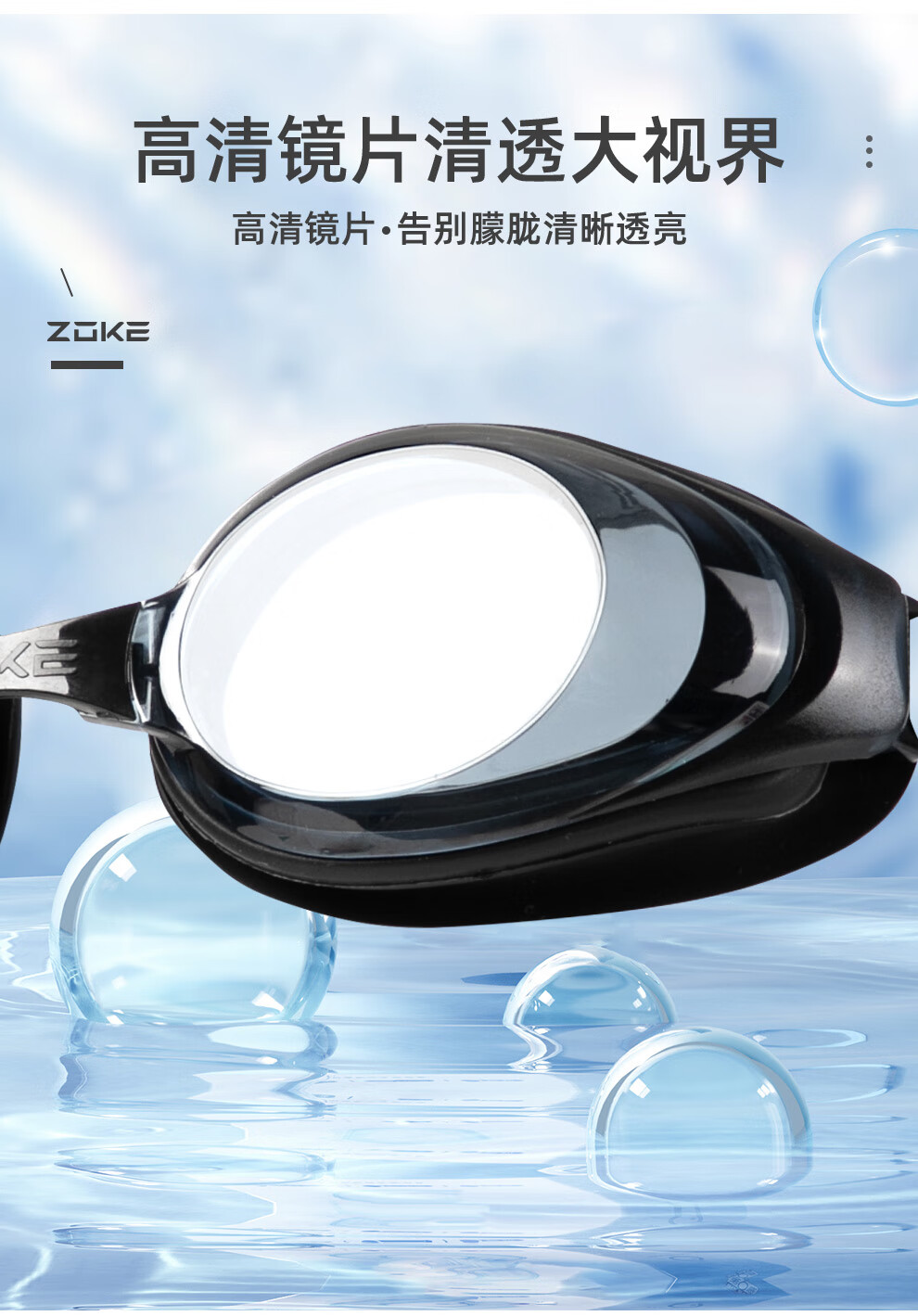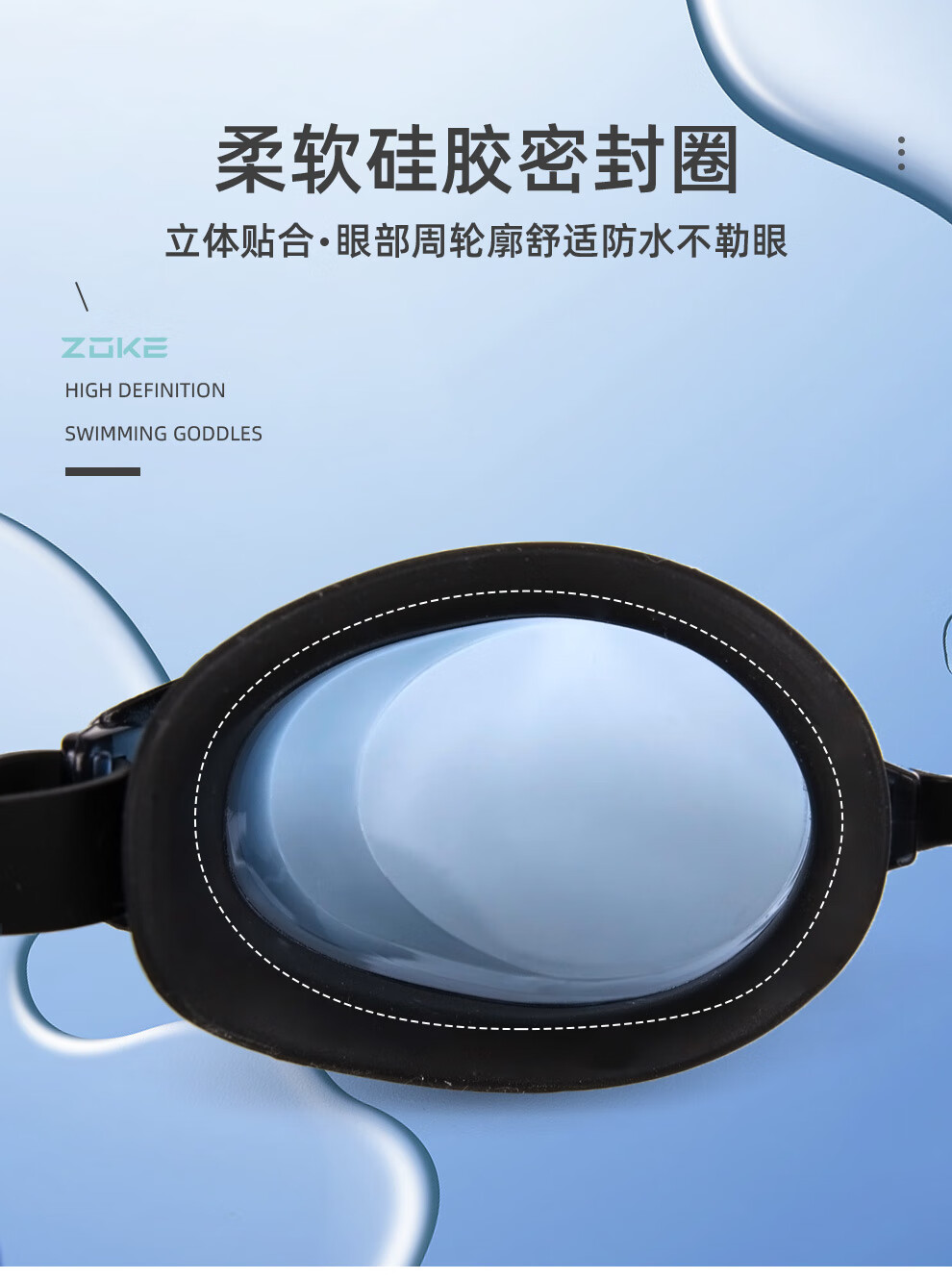 ZOKE swimming goggles for men and women, fashionable, comfortable, waterproof, anti-fog, high-definition flat swimming goggles 616501101-1 black