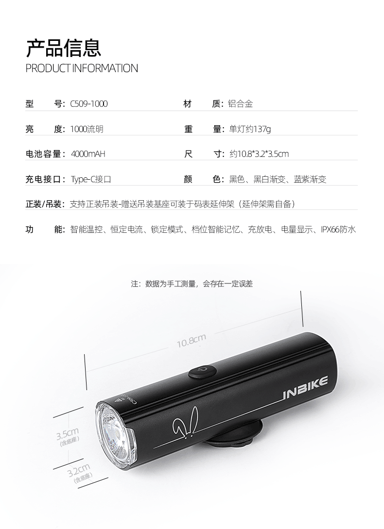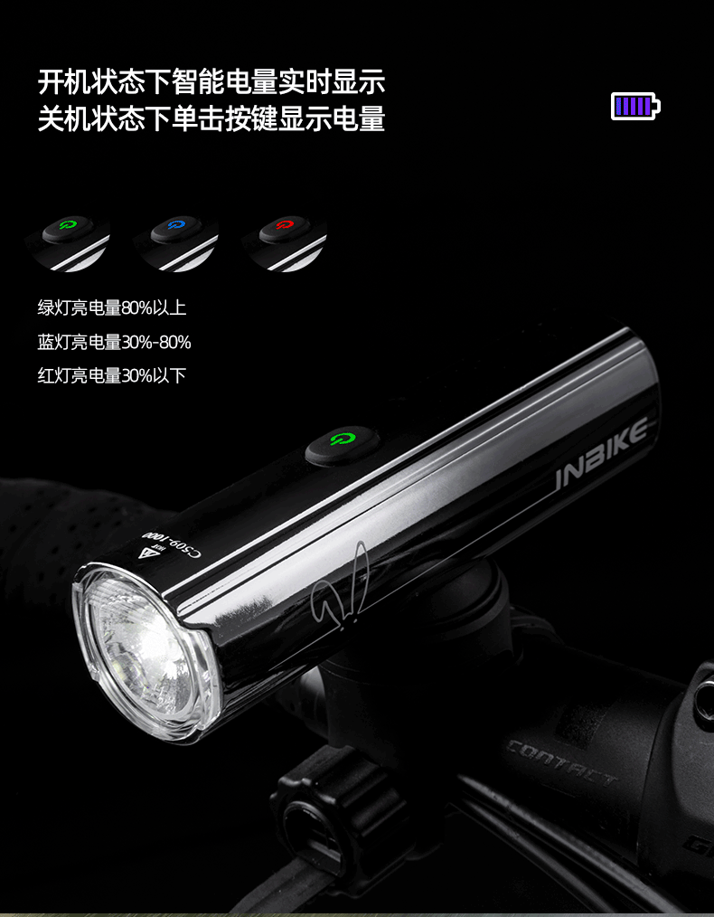 INBIKE super bright bicycle light headlight strong light night riding waterproof flashlight charging mountain bike riding equipment accessories