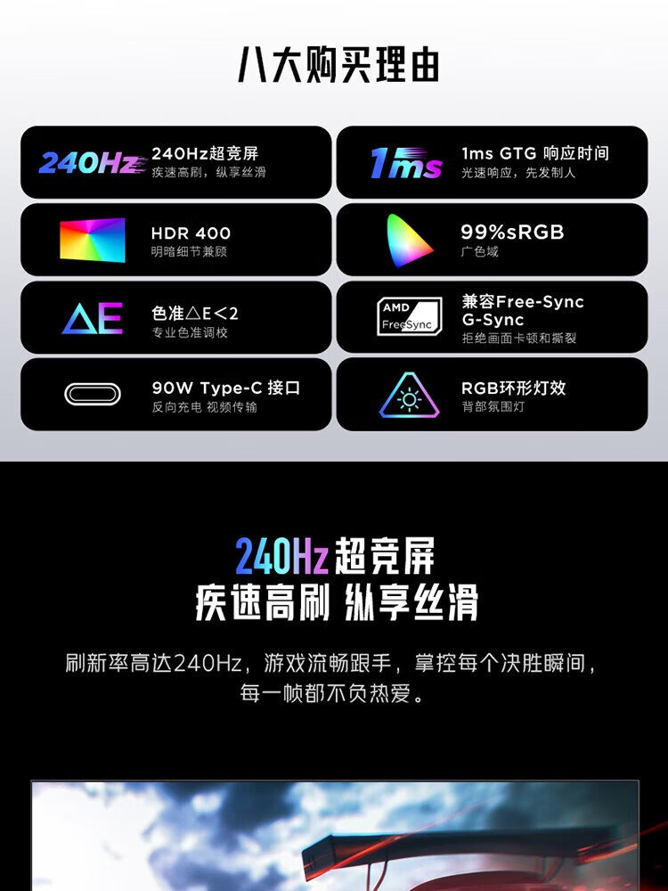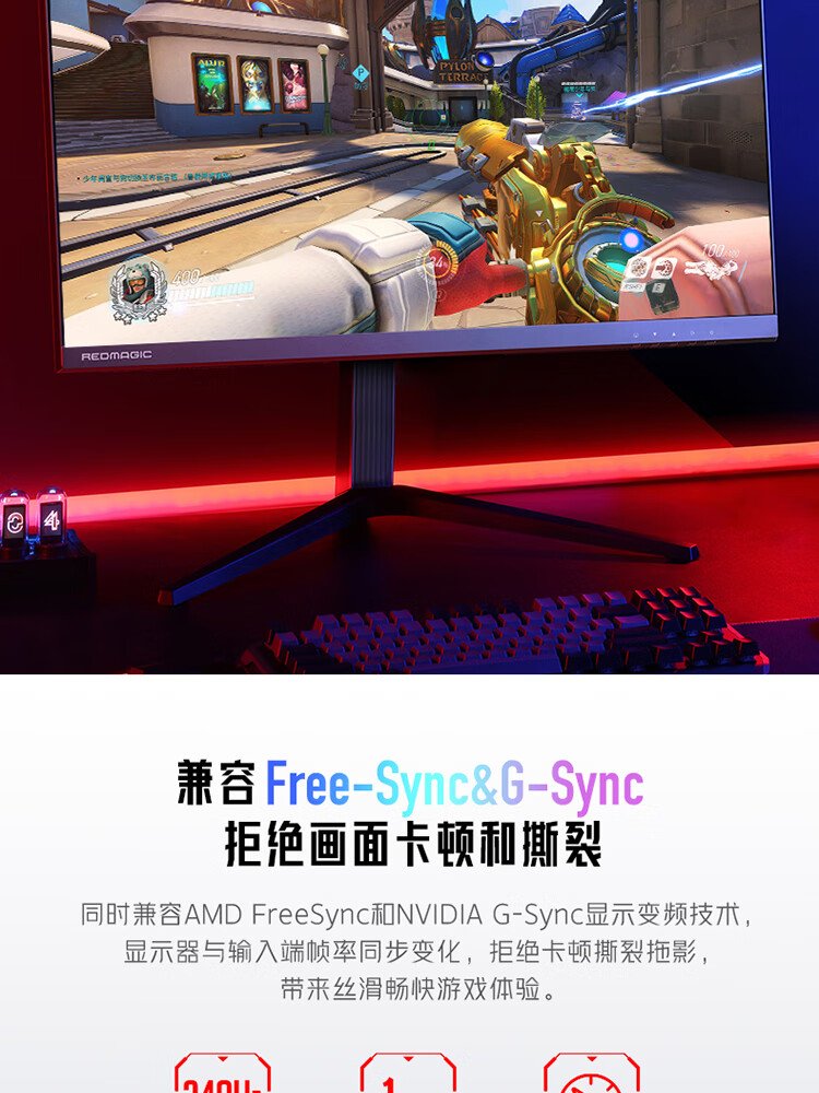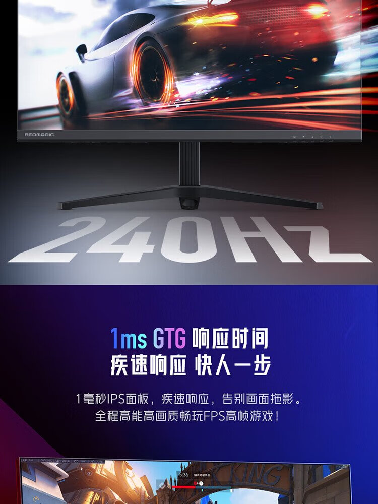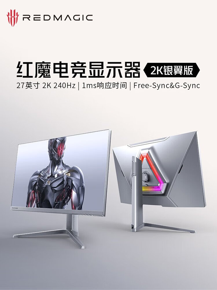 Nubia Red Magic Gaming Monitor 2K Silver Wing Edition HD 27-inch FastIPS 240Hz 1ms GTG response 90W TypeC reverse charging gaming home office