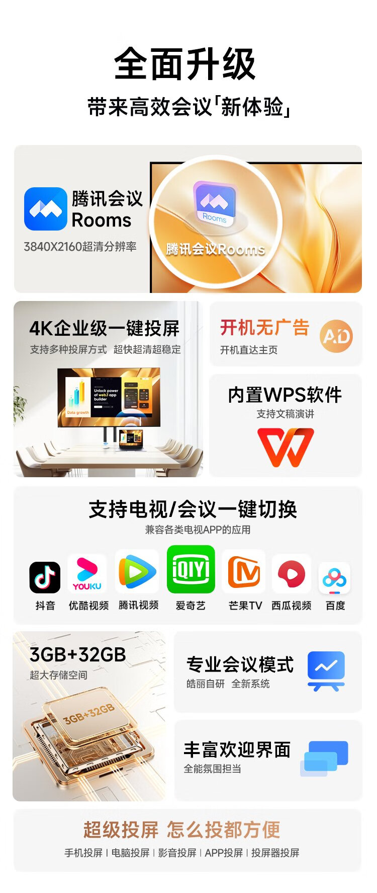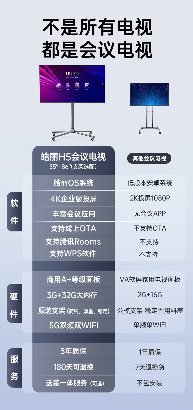 Haoli 86-inch conference TV all-in-one non-touch conference tablet all-in-one conference room display wireless 4K projection commercial TV teaching large screen 86H5+ cart