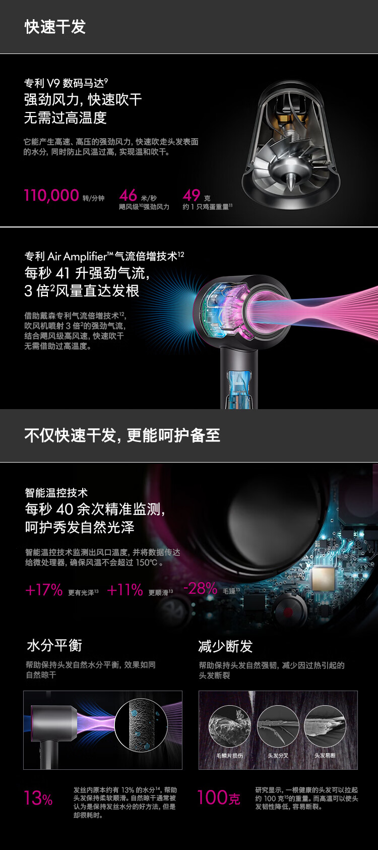 Dyson new generation hair dryer Dyson Supersonic hair dryer negative ion HD08 purple nickel