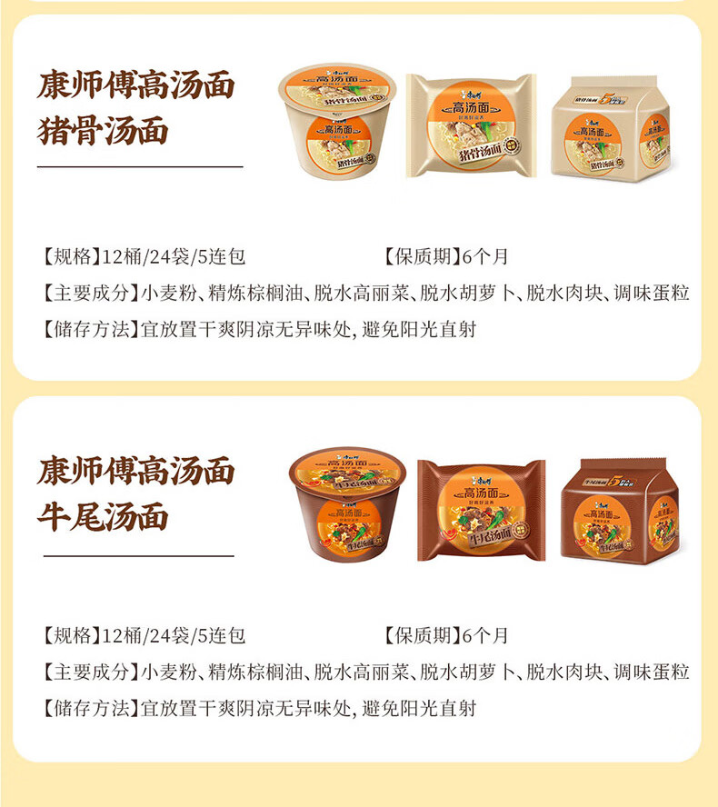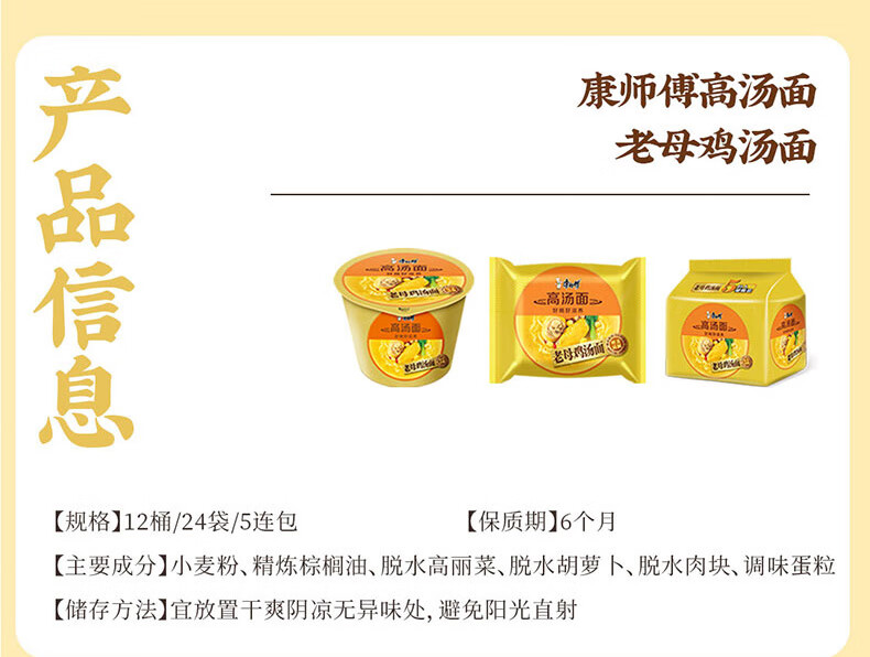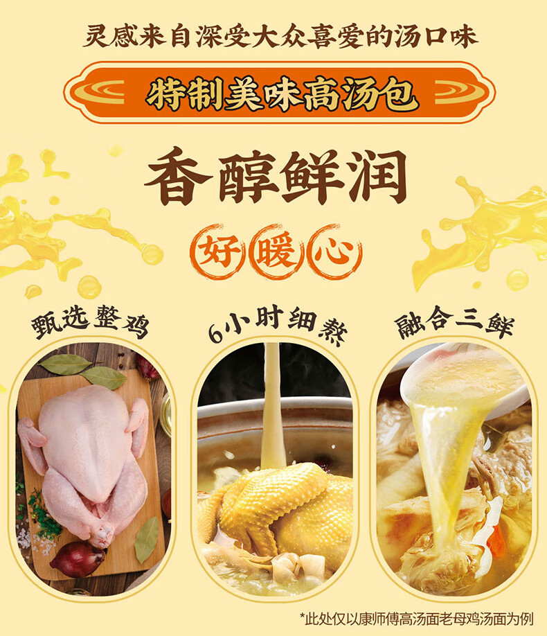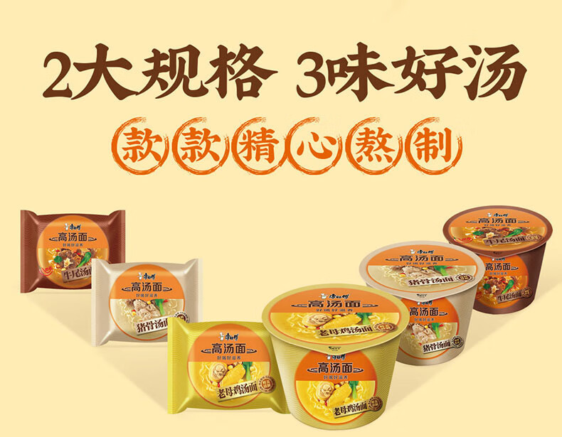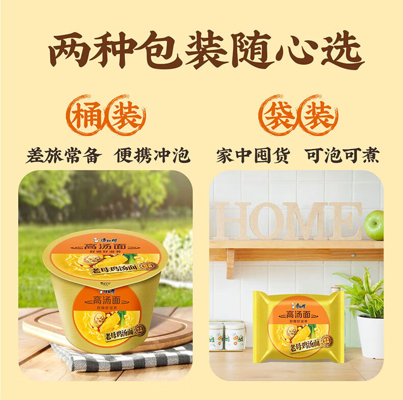 Master Kong instant noodles, stock chicken noodle soup, instant noodles, five packs, 104g*5 packs, delicious and nourishing