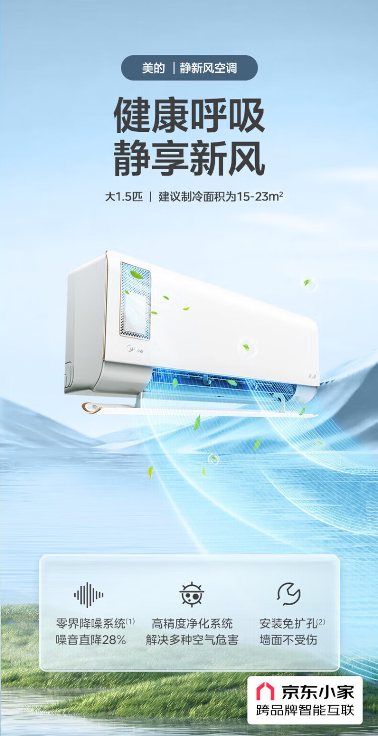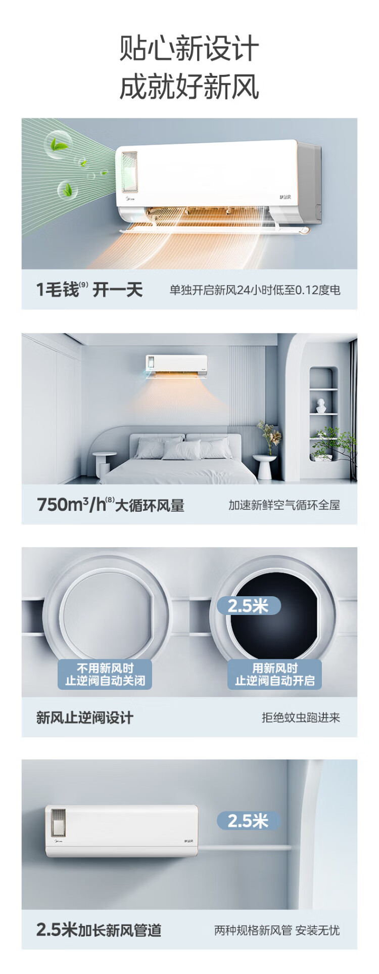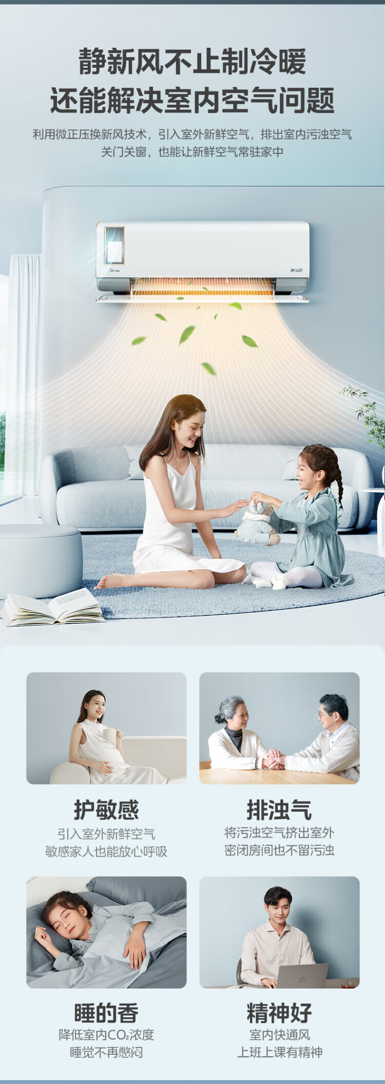 美的(Midea)大1.5匹 静新风 超一级能效 变频 节能节电 空调挂机 健康风新风国家补贴 KFR-35GW/N8XF1-1定制版