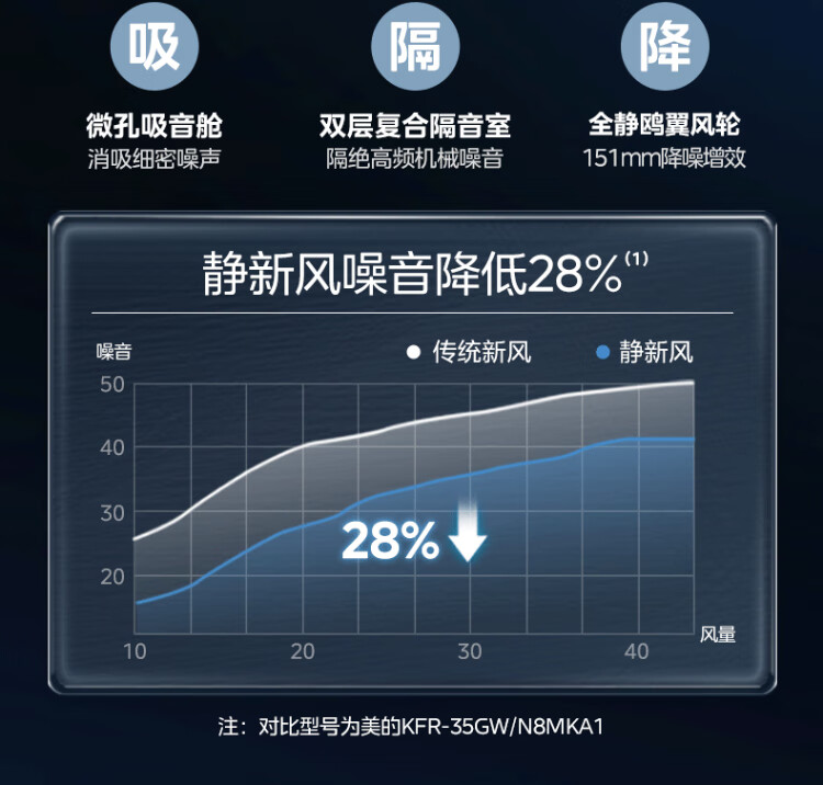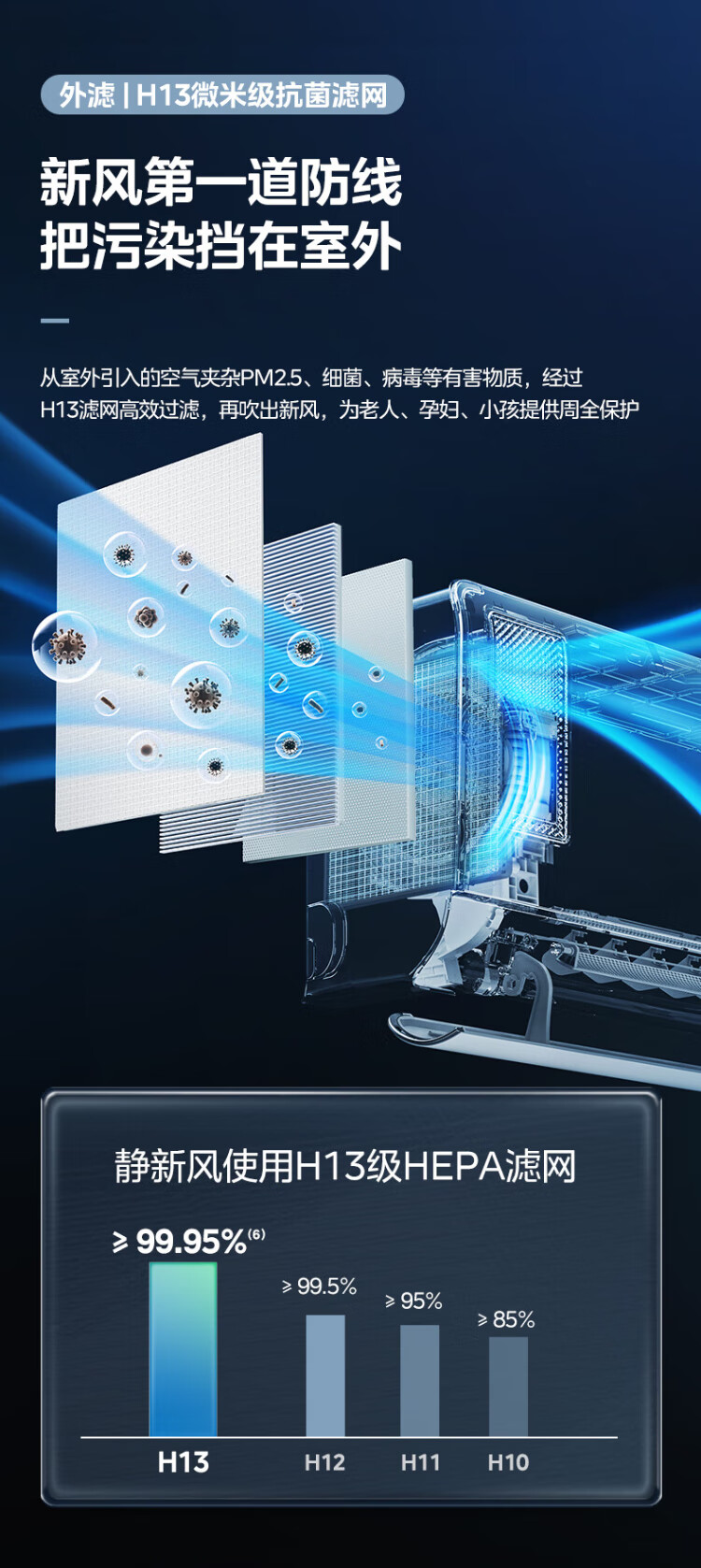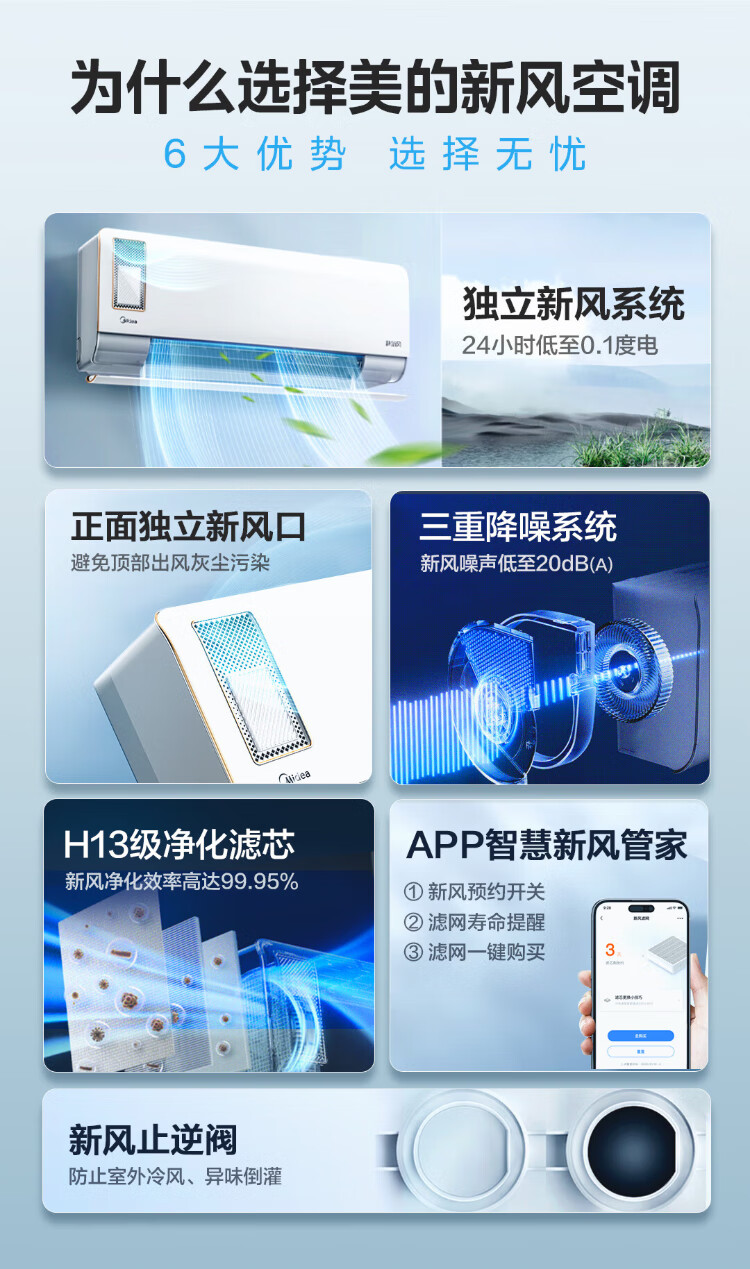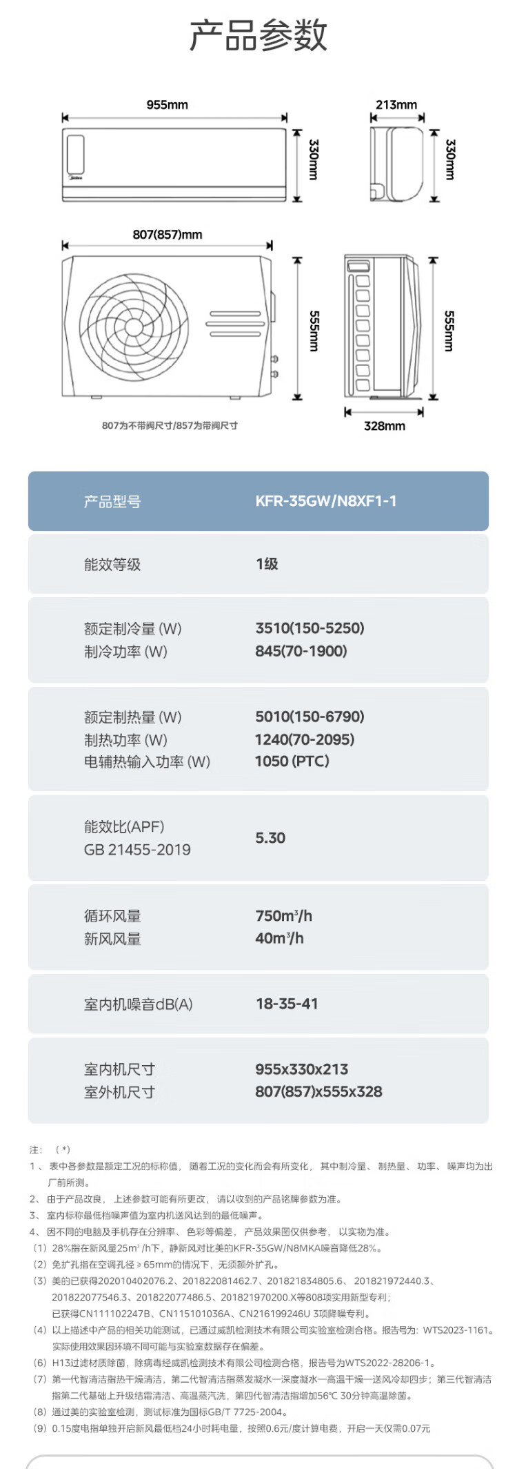 美的(Midea)大1.5匹 静新风 超一级能效 变频 节能节电 空调挂机 健康风新风国家补贴 KFR-35GW/N8XF1-1定制版
