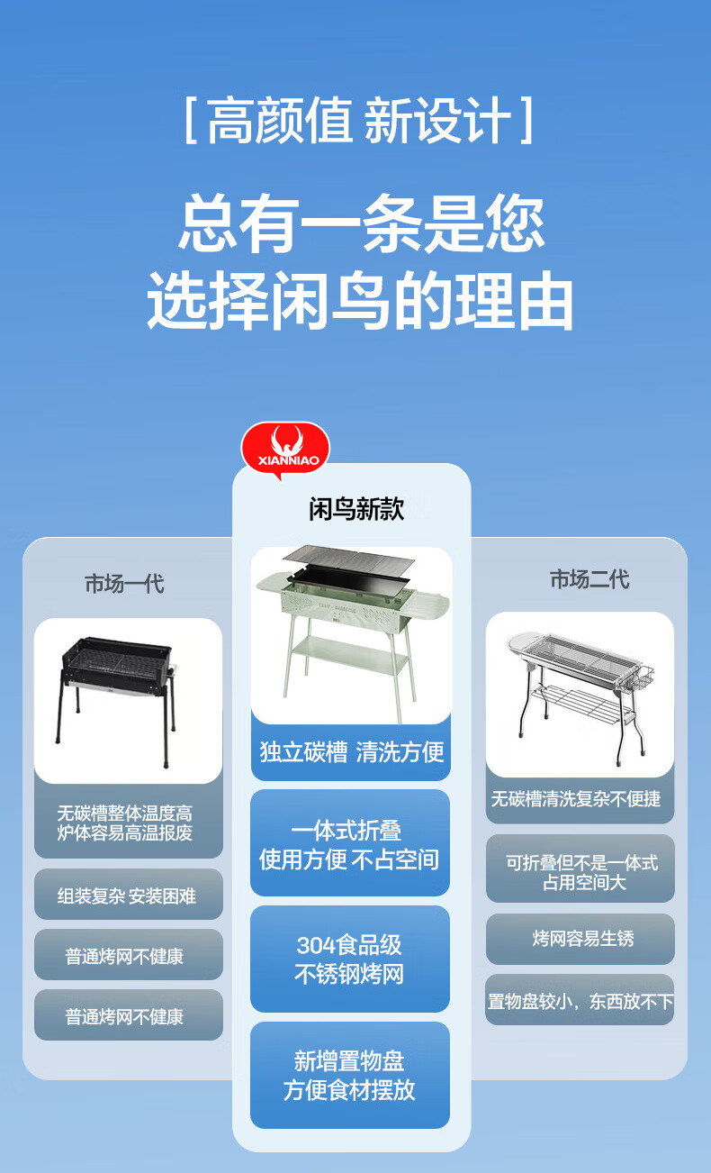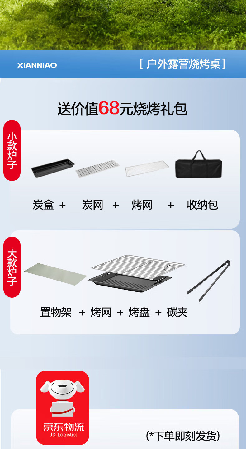 Xianniao BBQ outdoor portable barbecue grill household stainless steel folding baking pan large courtyard camping charcoal tool