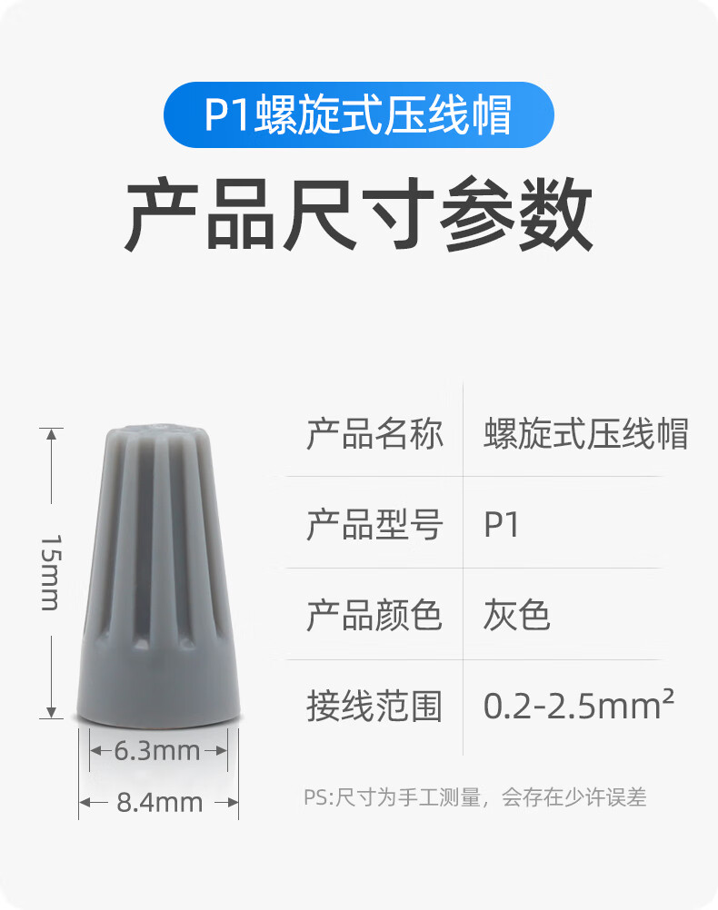 Andatong rotating crimping cap spring-type wiring closed terminal wire short-circuiting spiral wiring cap P2 (blue 100 pieces) (2X1.5 square)
