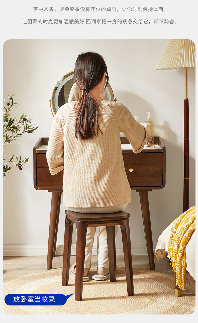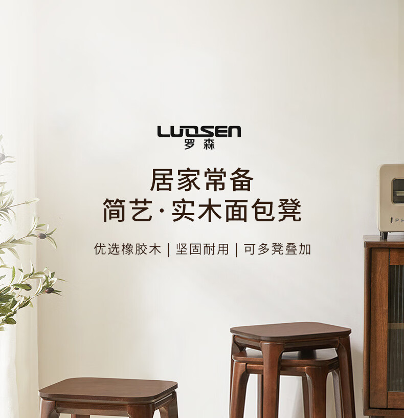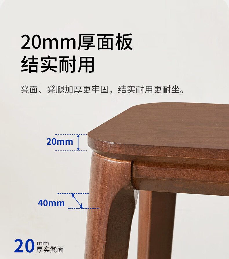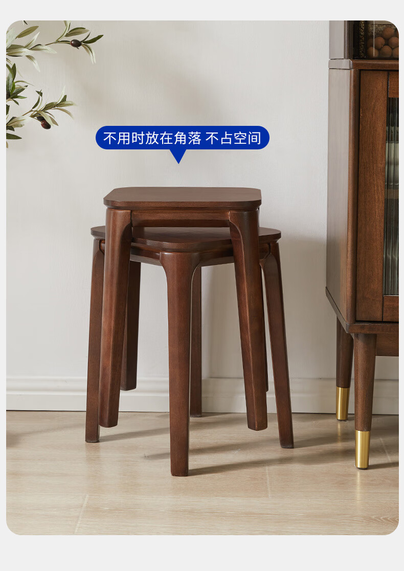 LUOSEN solid wood dining table and stool Chinese simple dressing stool home bench living room bread stool low stool stackable square stool 1