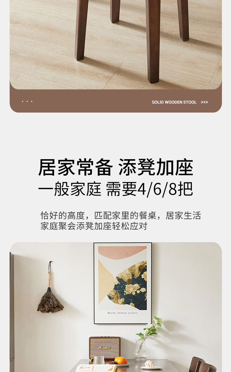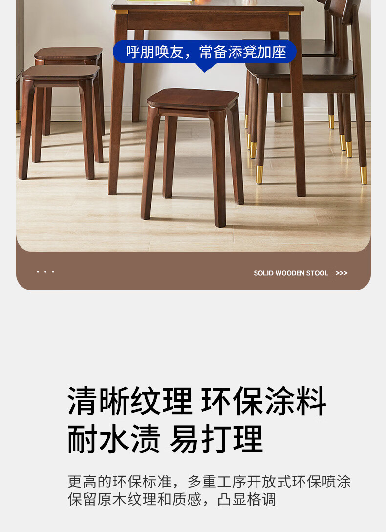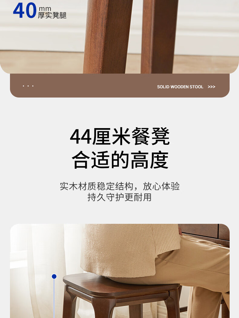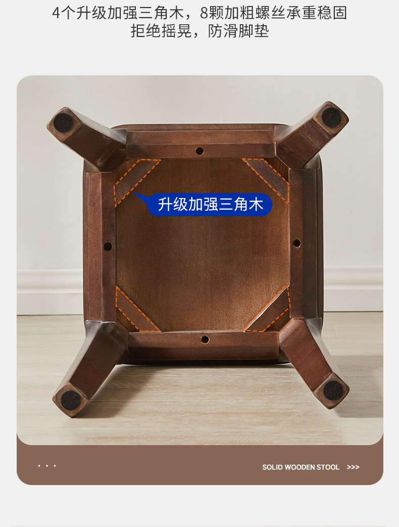 LUOSEN solid wood dining table and stool Chinese simple dressing stool home bench living room bread stool low stool stackable square stool 1