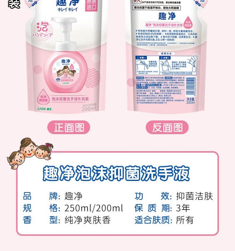 Lion Qujing Foam Antibacterial Hand Sanitizer Natural Lemon Scent 200ml*2 + Toner 200ml*2 Home Moisturizing Supplement